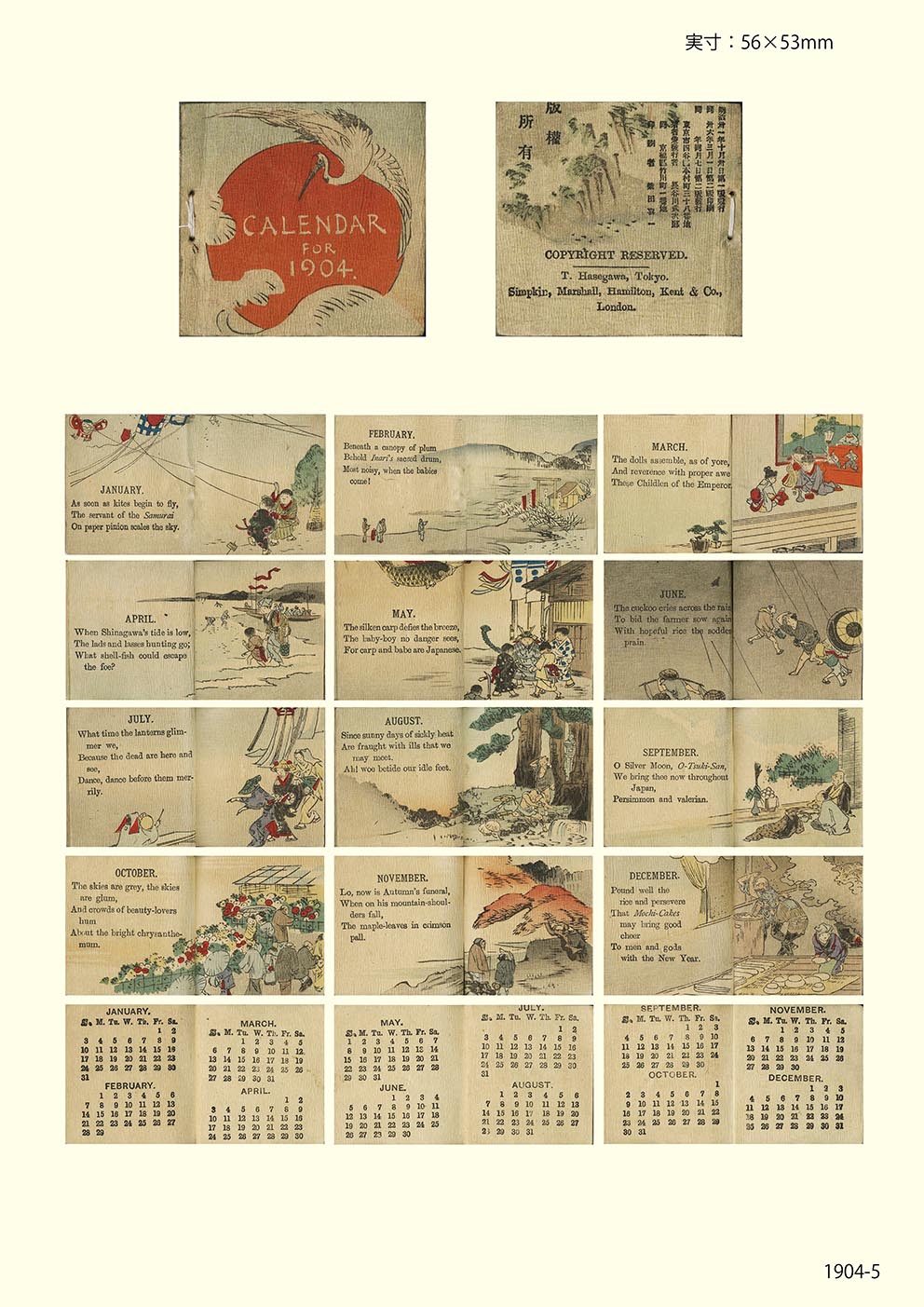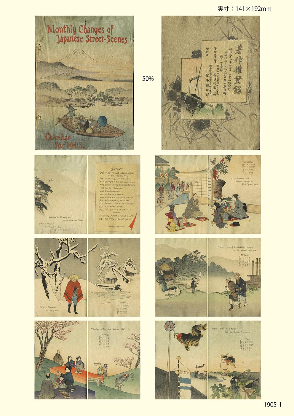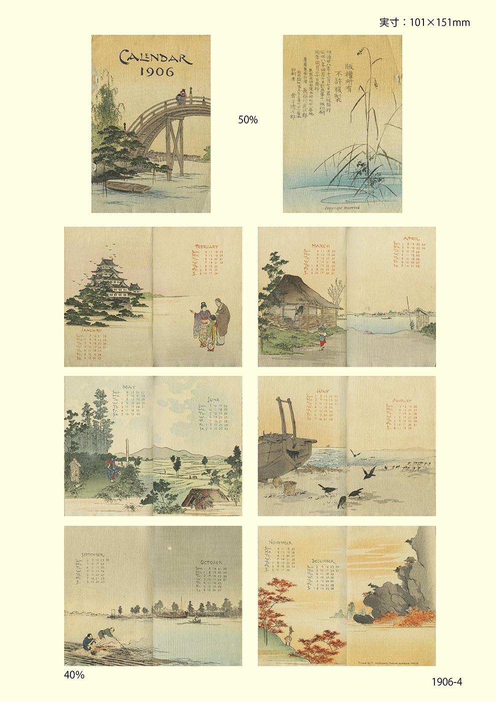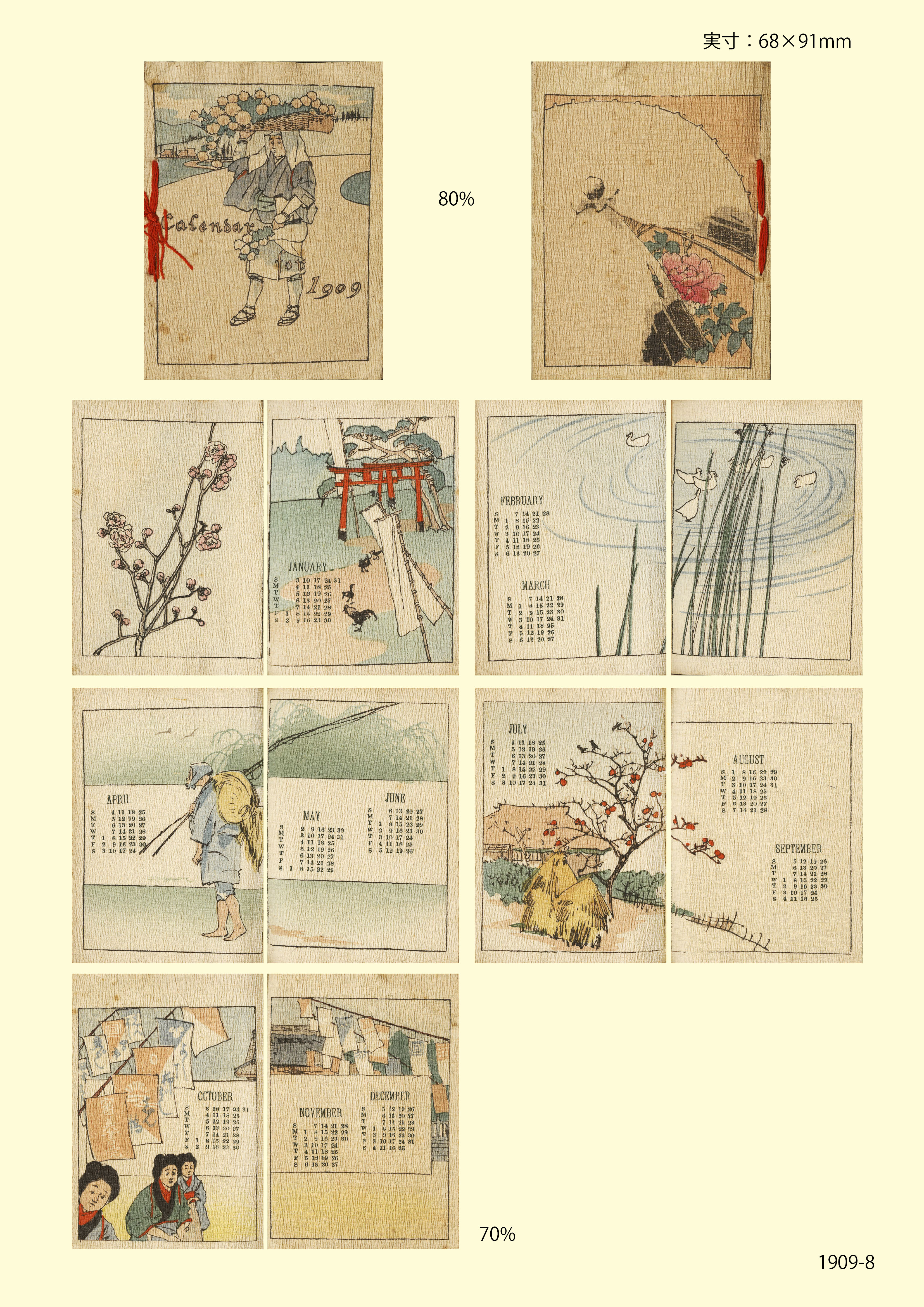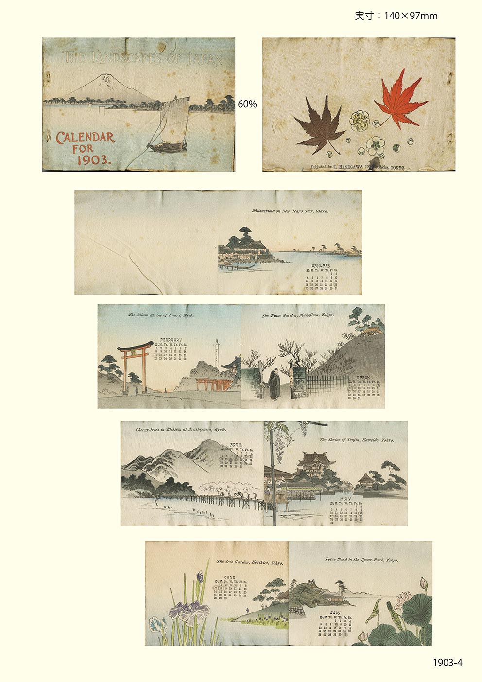 | 67 | 1908-2 | 明治41年 |  |  | Japanese Street Scenes Calendar for 1908 | | *Takejiro Hasegawa | | | | | | | | | | | 製本されておらずちりめん紙だがハードカバー、表紙なし