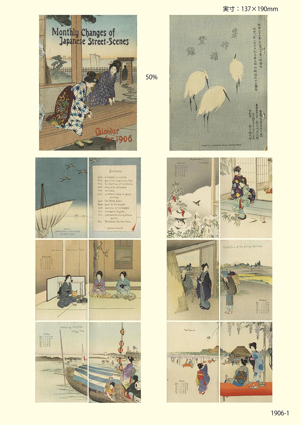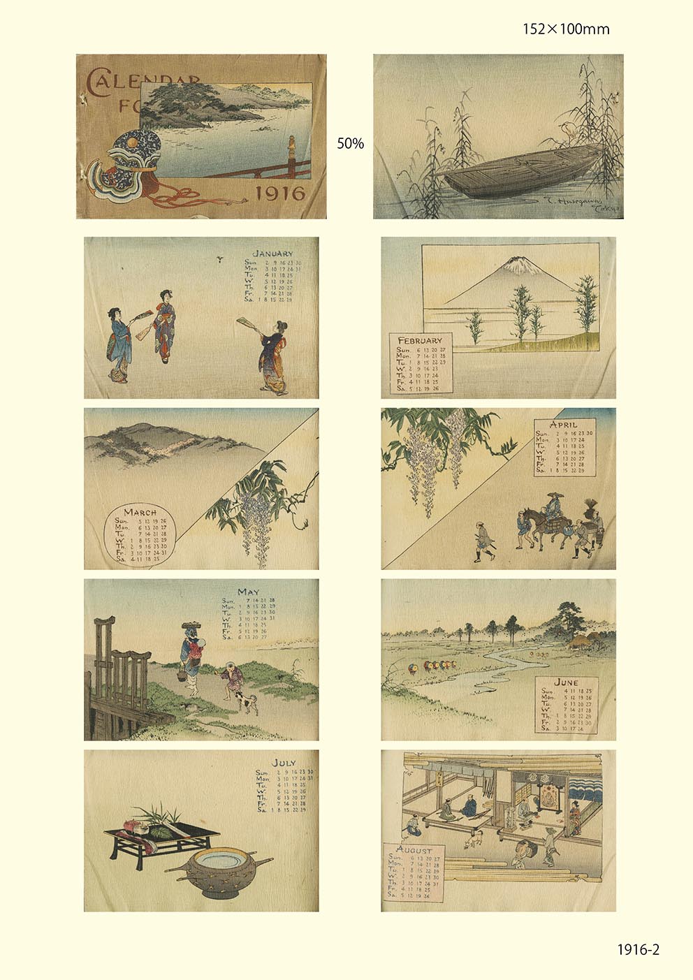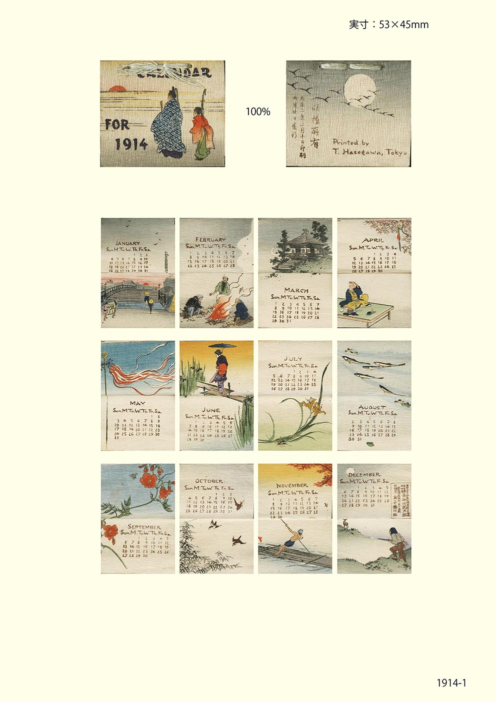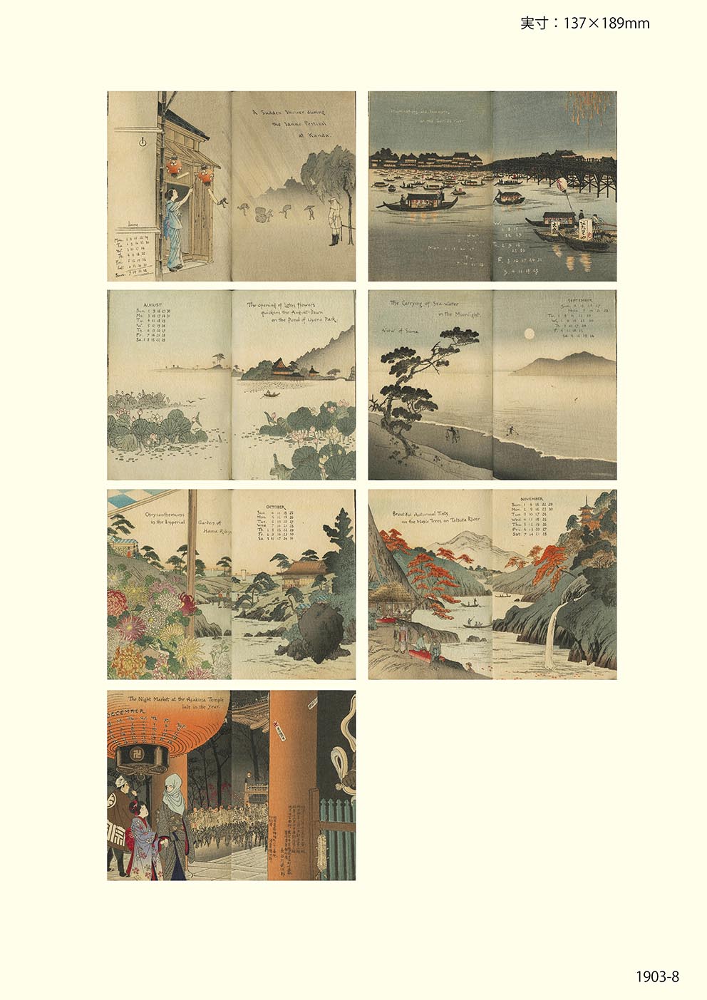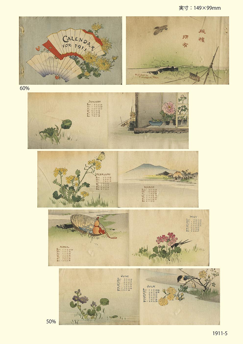 | 67 | 1908-2 | 明治41年 |  |  | Japanese Street Scenes Calendar for 1908 | | *Takejiro Hasegawa | | | | | | | | | | | 製本されておらずちりめん紙だがハードカバー、表紙なし