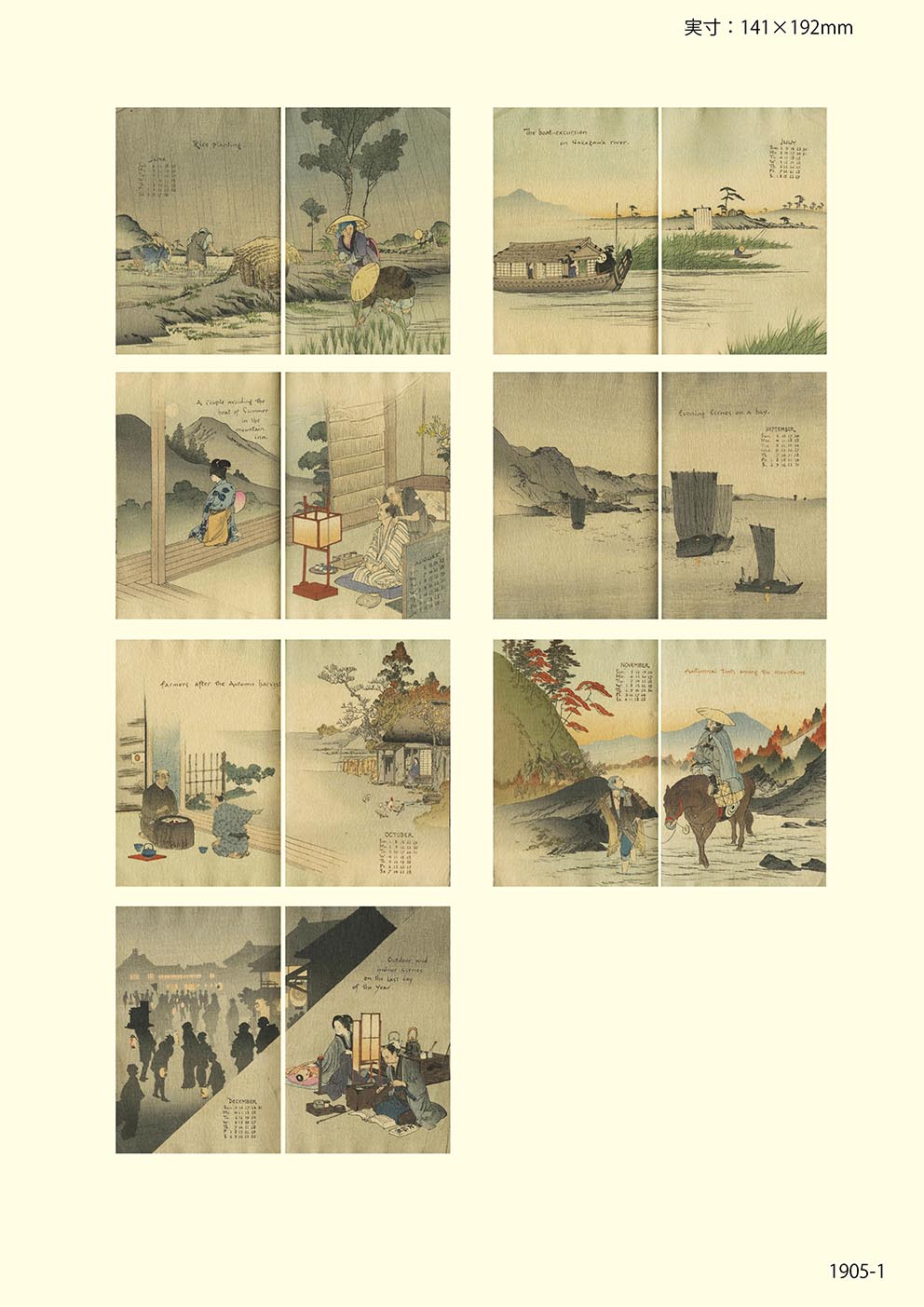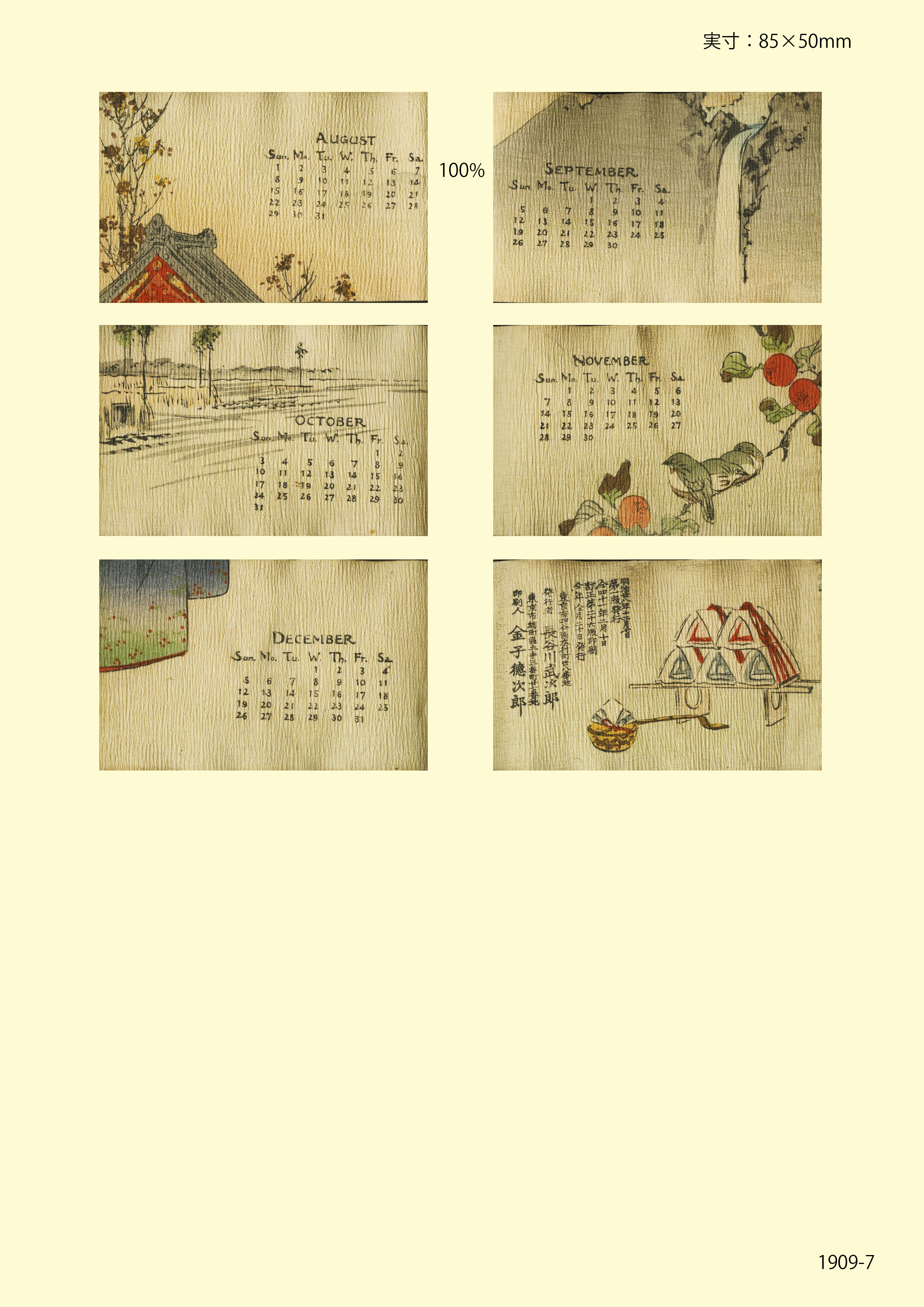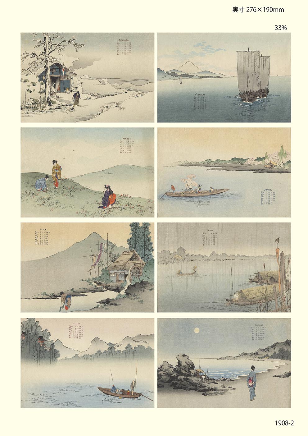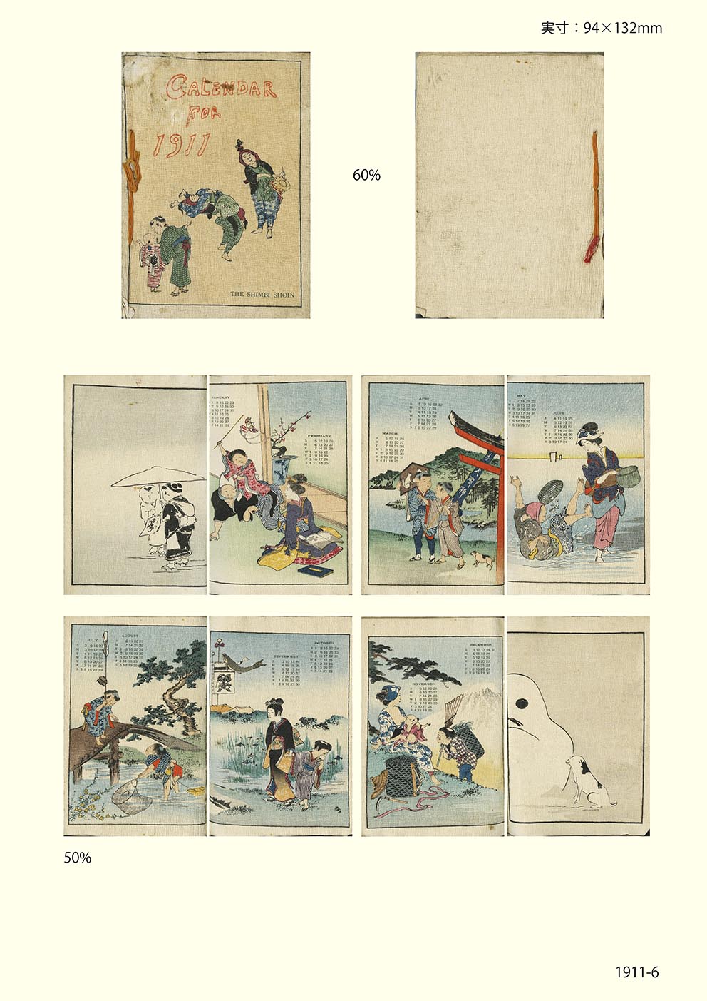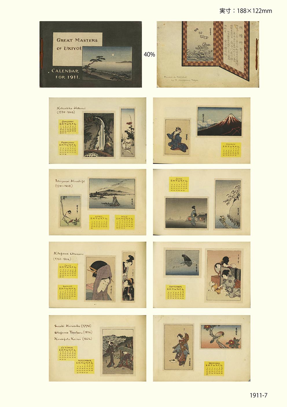 | 67 | 1908-2 | 明治41年 |  |  | Japanese Street Scenes Calendar for 1908 | | *Takejiro Hasegawa | | | | | | | | | | | 製本されておらずちりめん紙だがハードカバー、表紙なし