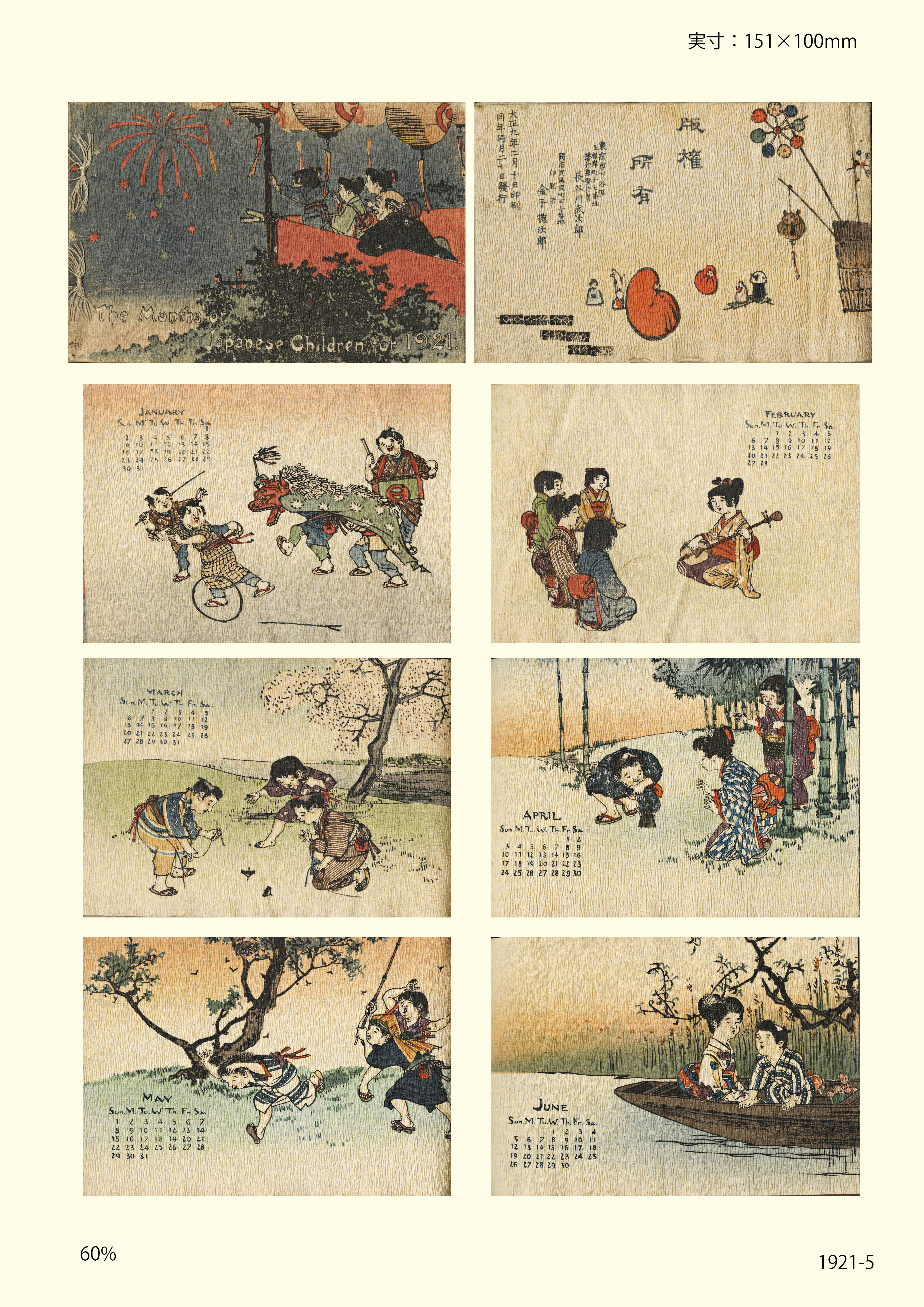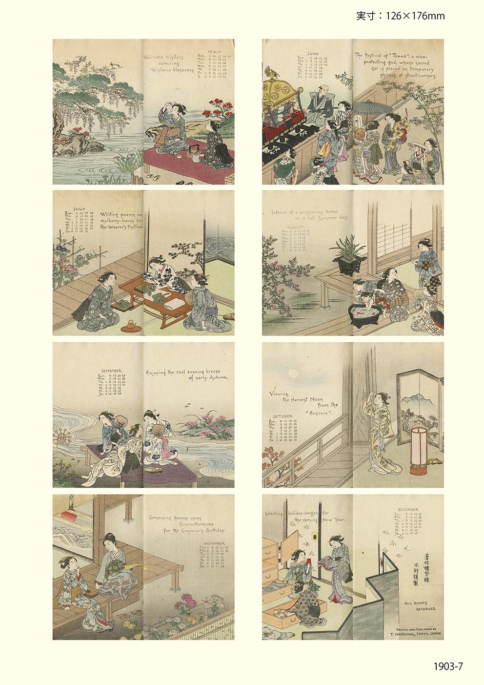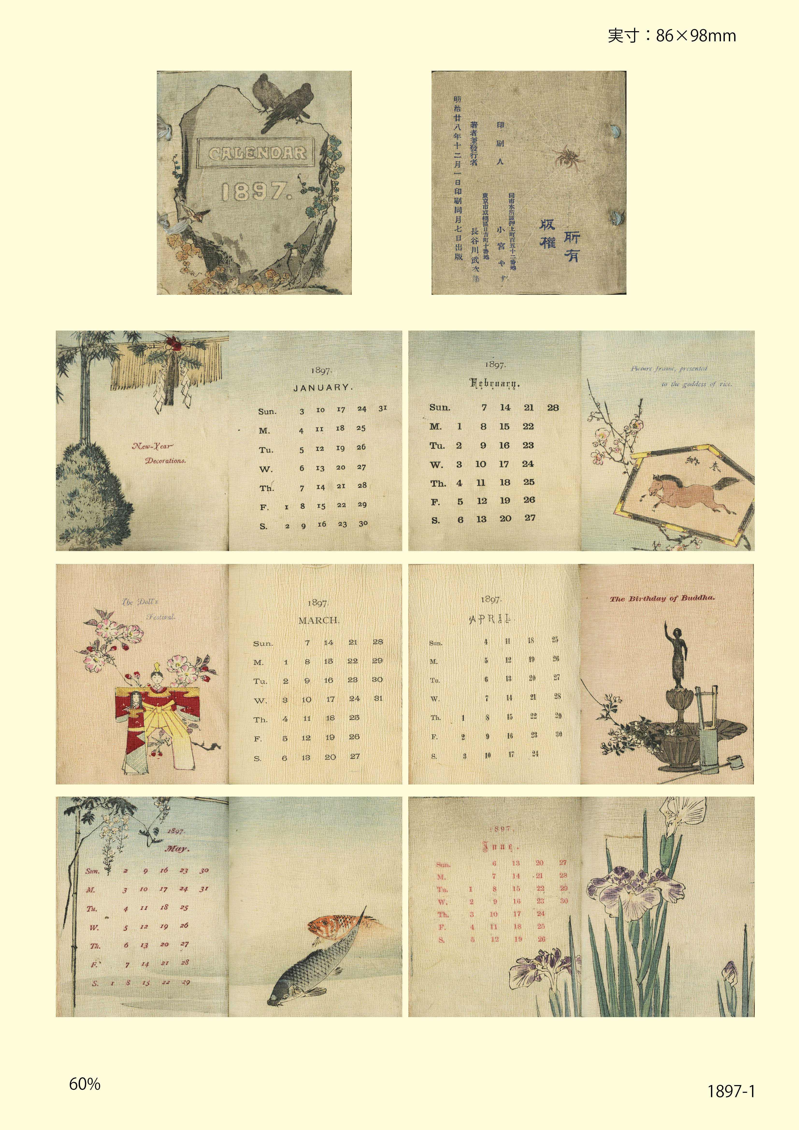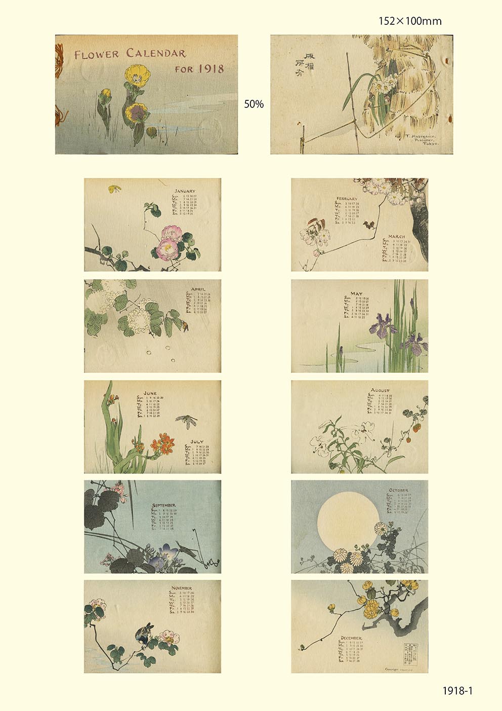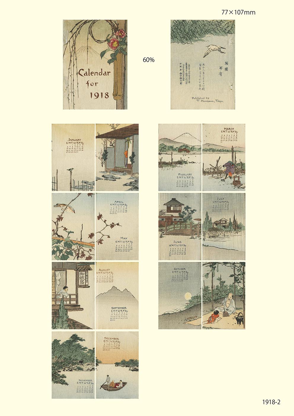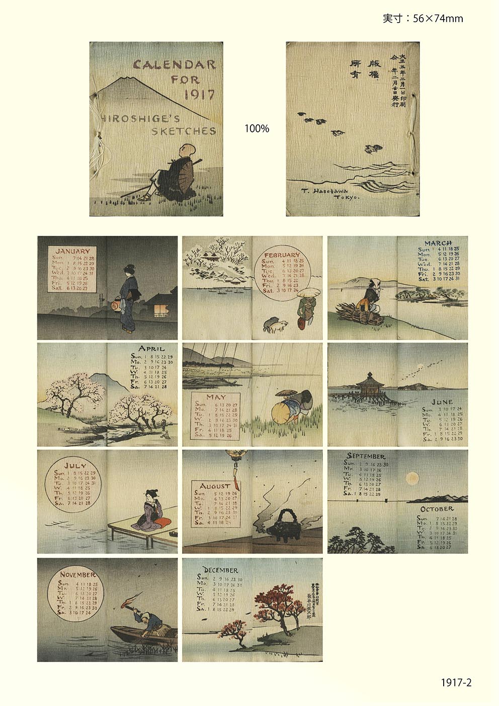 | 67 | 1908-2 | 明治41年 |  |  | Japanese Street Scenes Calendar for 1908 | | *Takejiro Hasegawa | | | | | | | | | | | 製本されておらずちりめん紙だがハードカバー、表紙なし