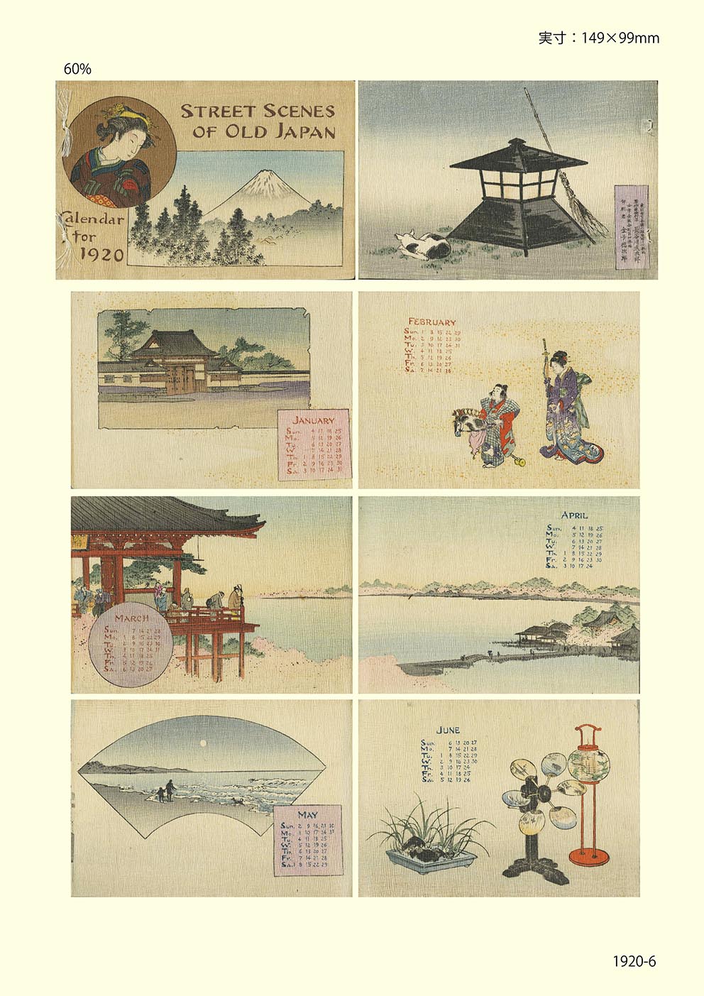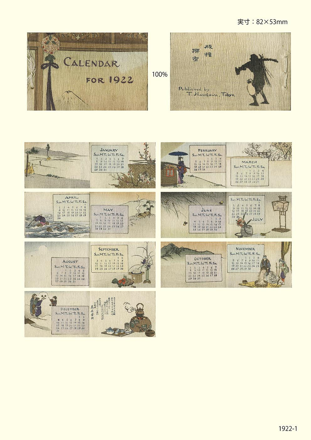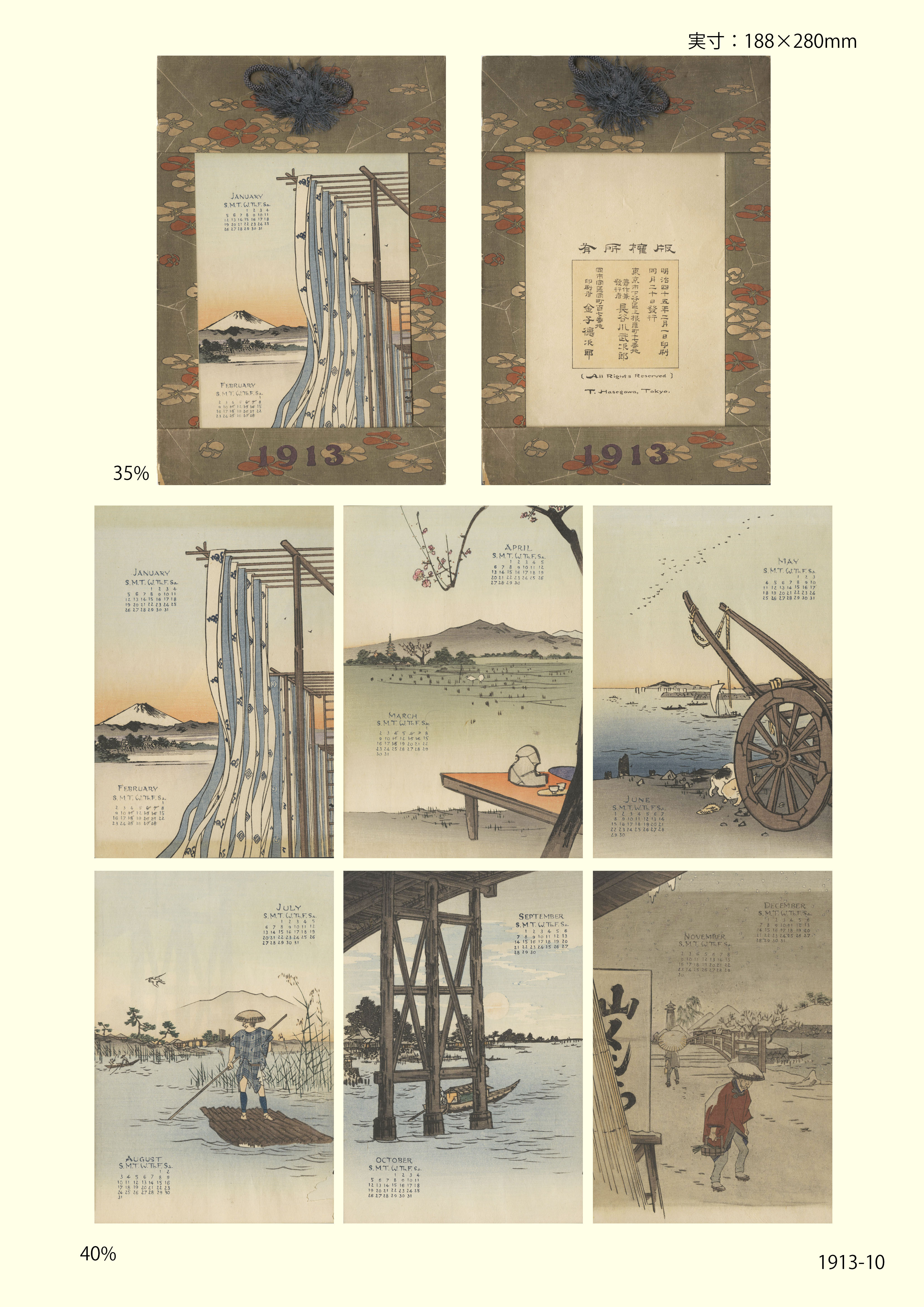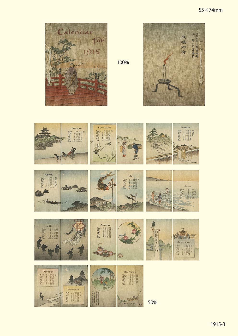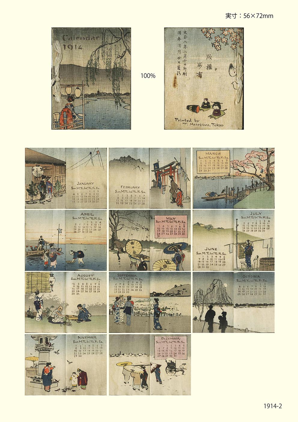 | 67 | 1908-2 | 明治41年 |  |  | Japanese Street Scenes Calendar for 1908 | | *Takejiro Hasegawa | | | | | | | | | | | 製本されておらずちりめん紙だがハードカバー、表紙なし