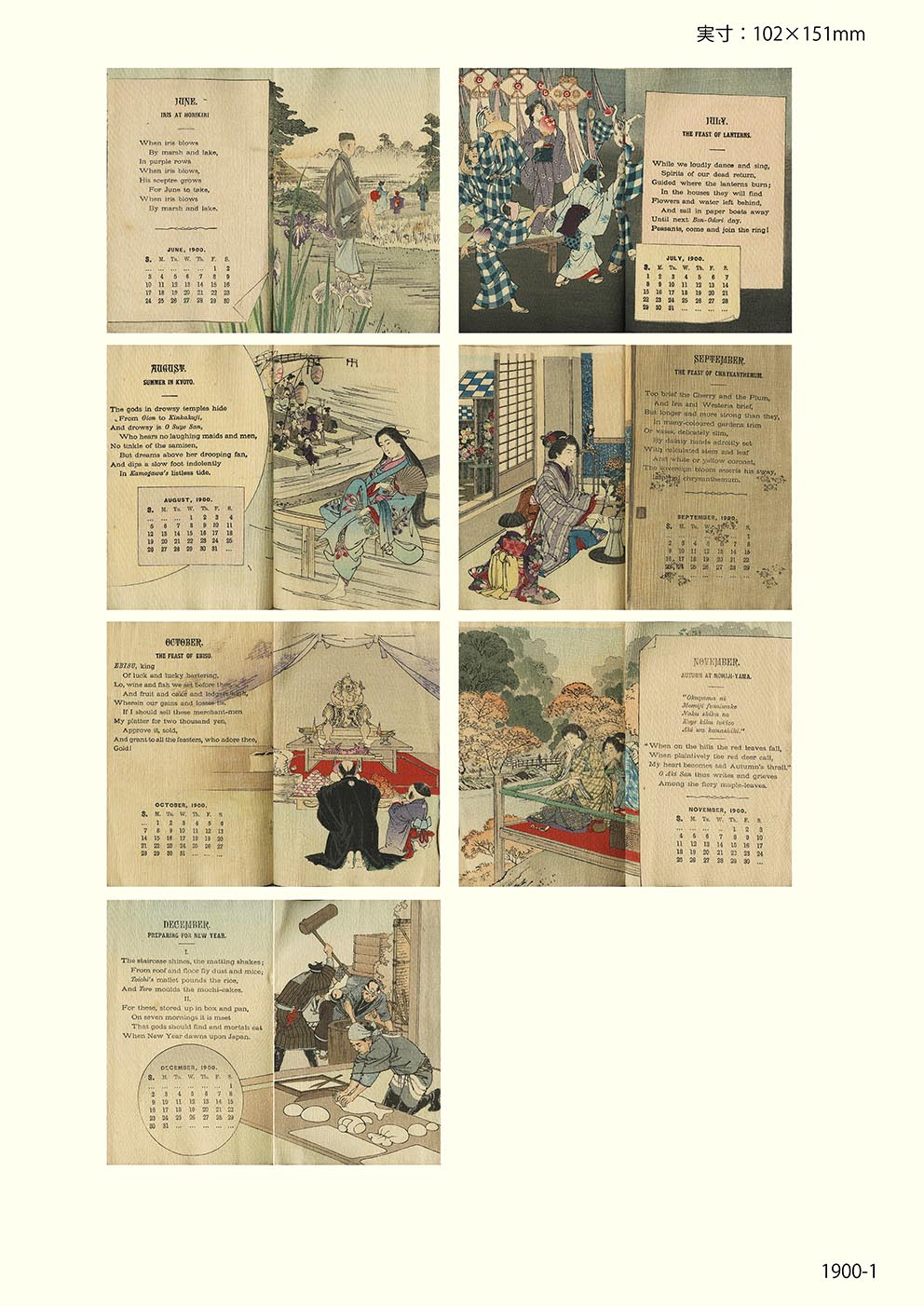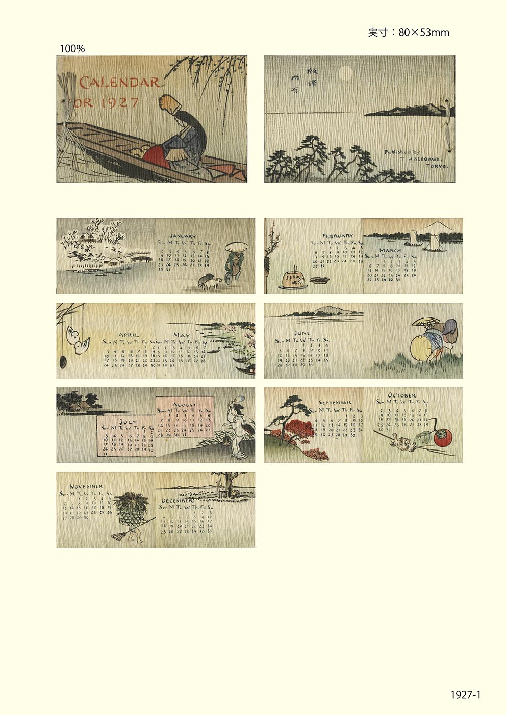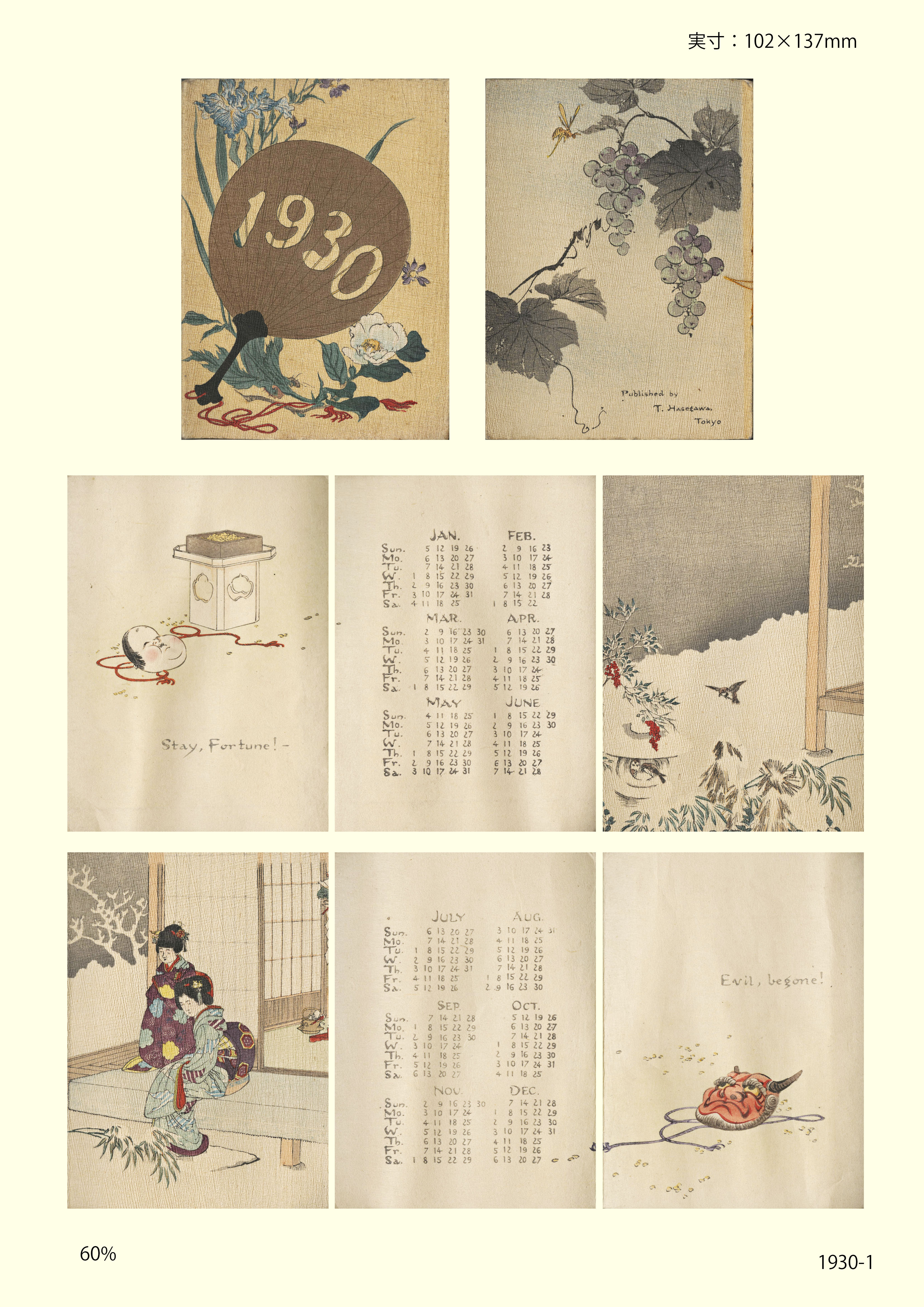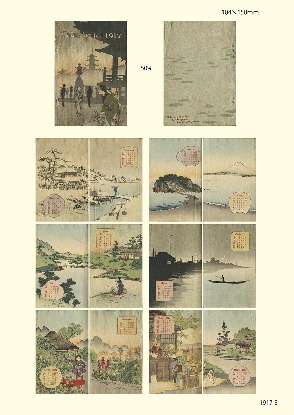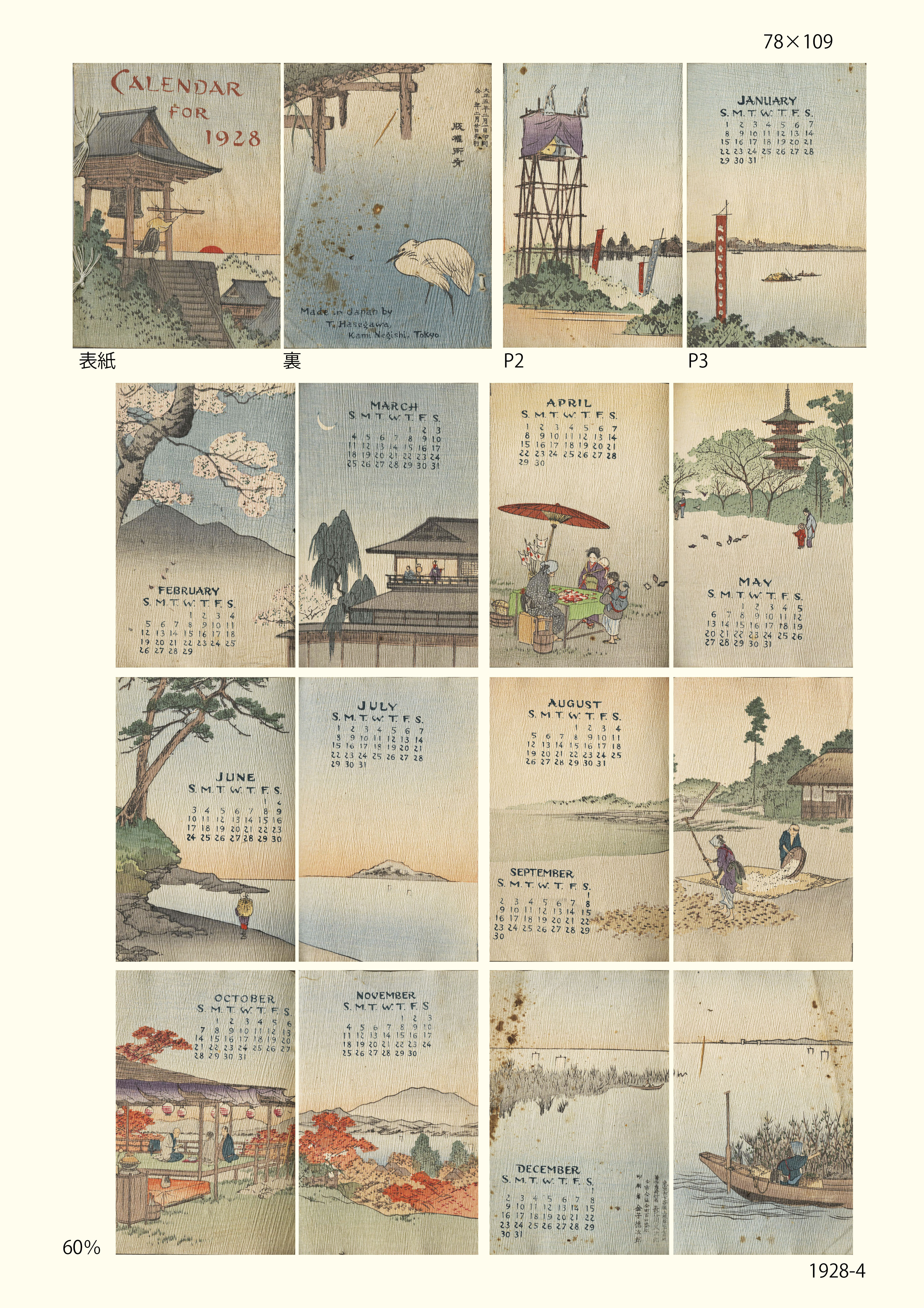 | 67 | 1908-2 | 明治41年 |  |  | Japanese Street Scenes Calendar for 1908 | | *Takejiro Hasegawa | | | | | | | | | | | 製本されておらずちりめん紙だがハードカバー、表紙なし