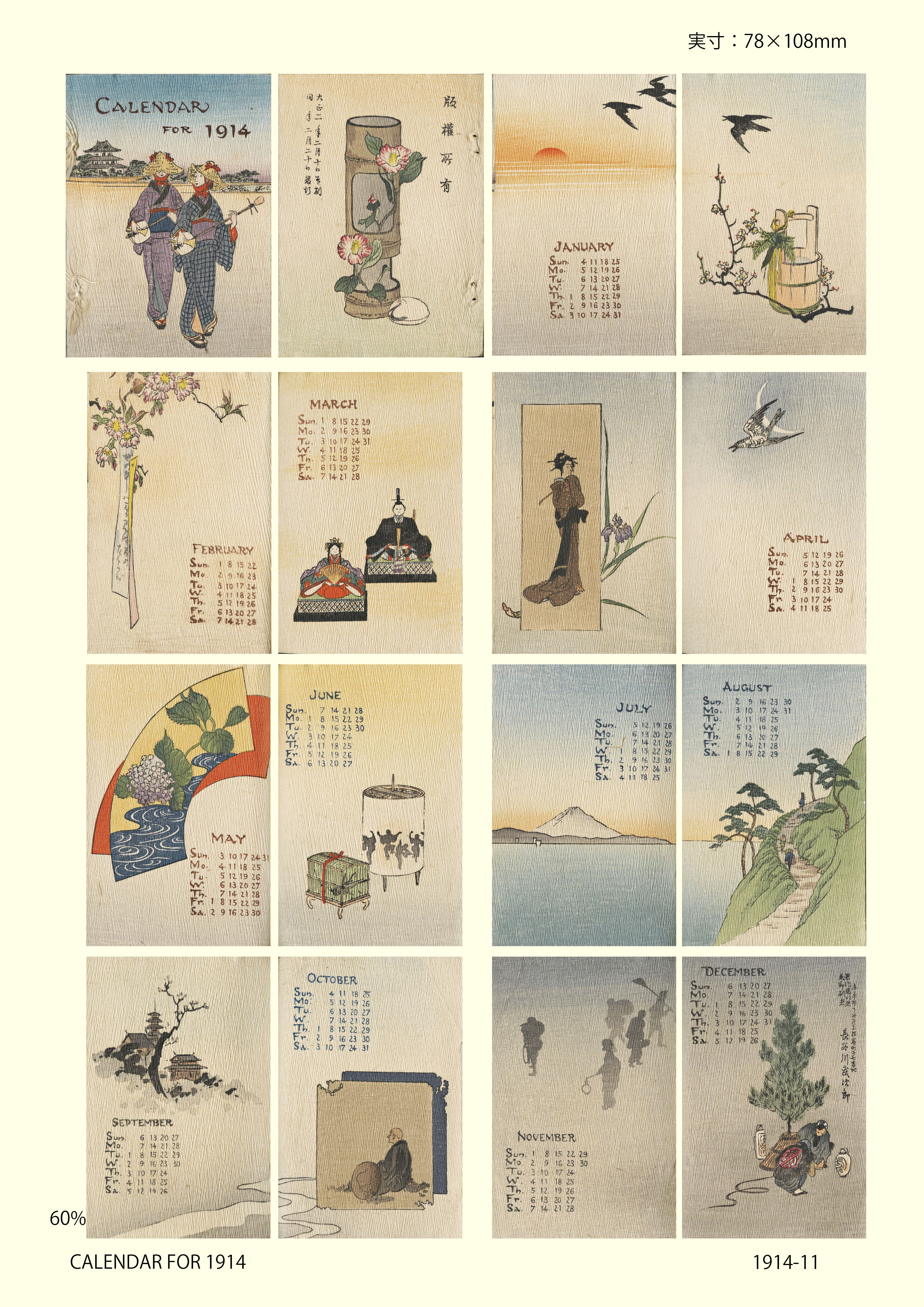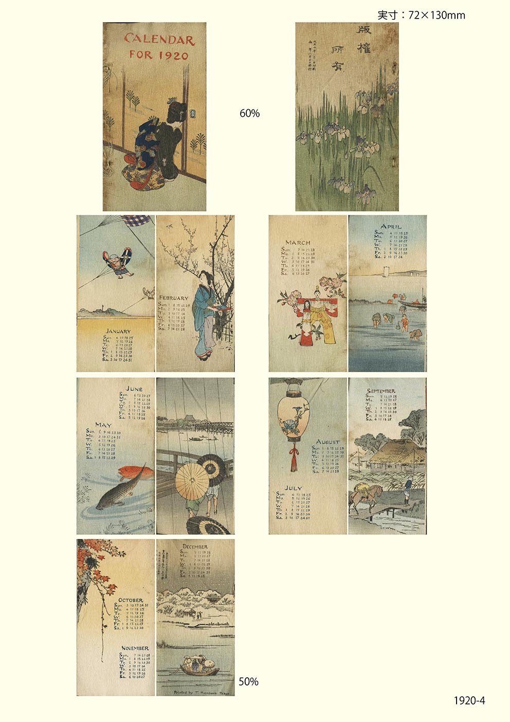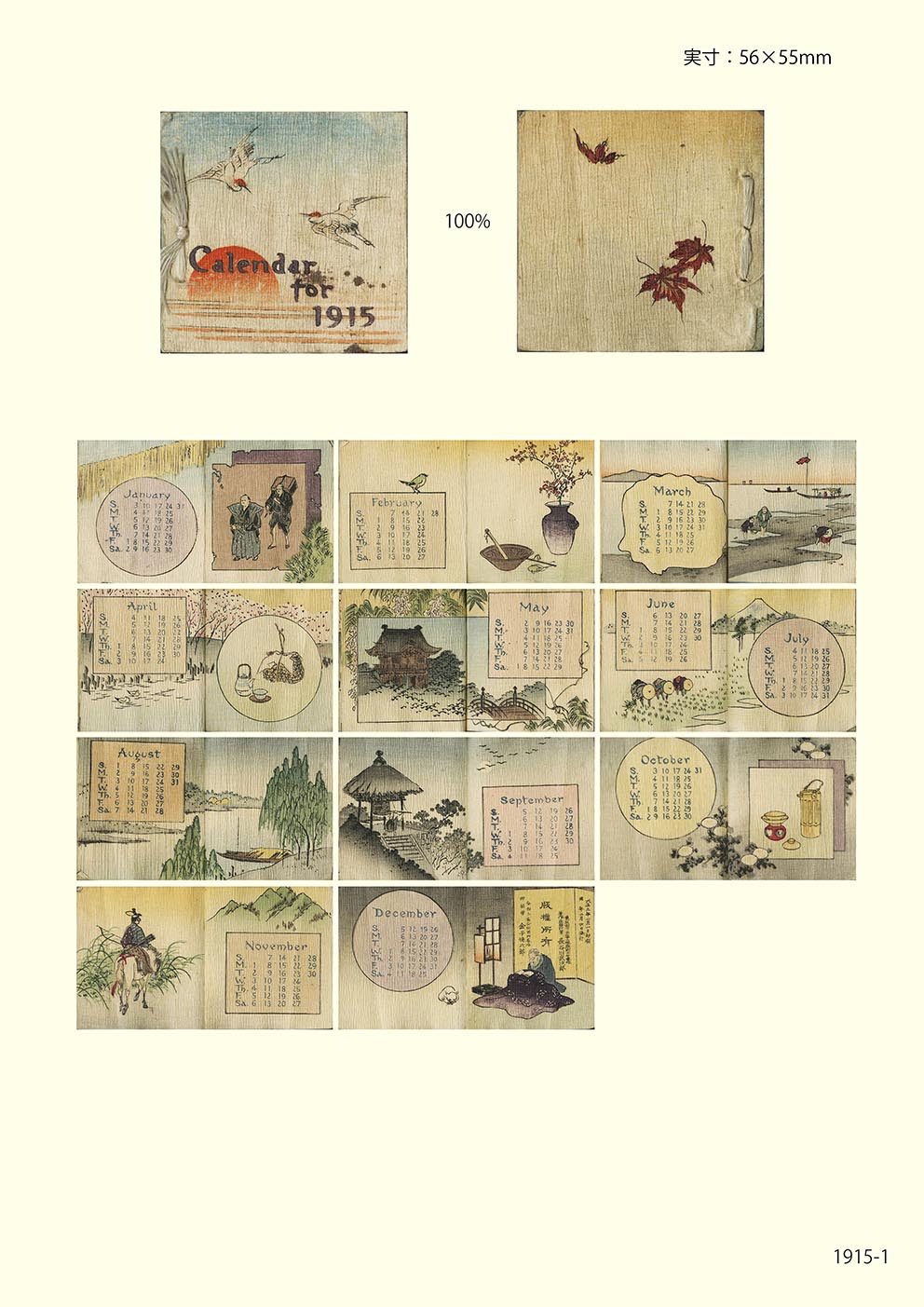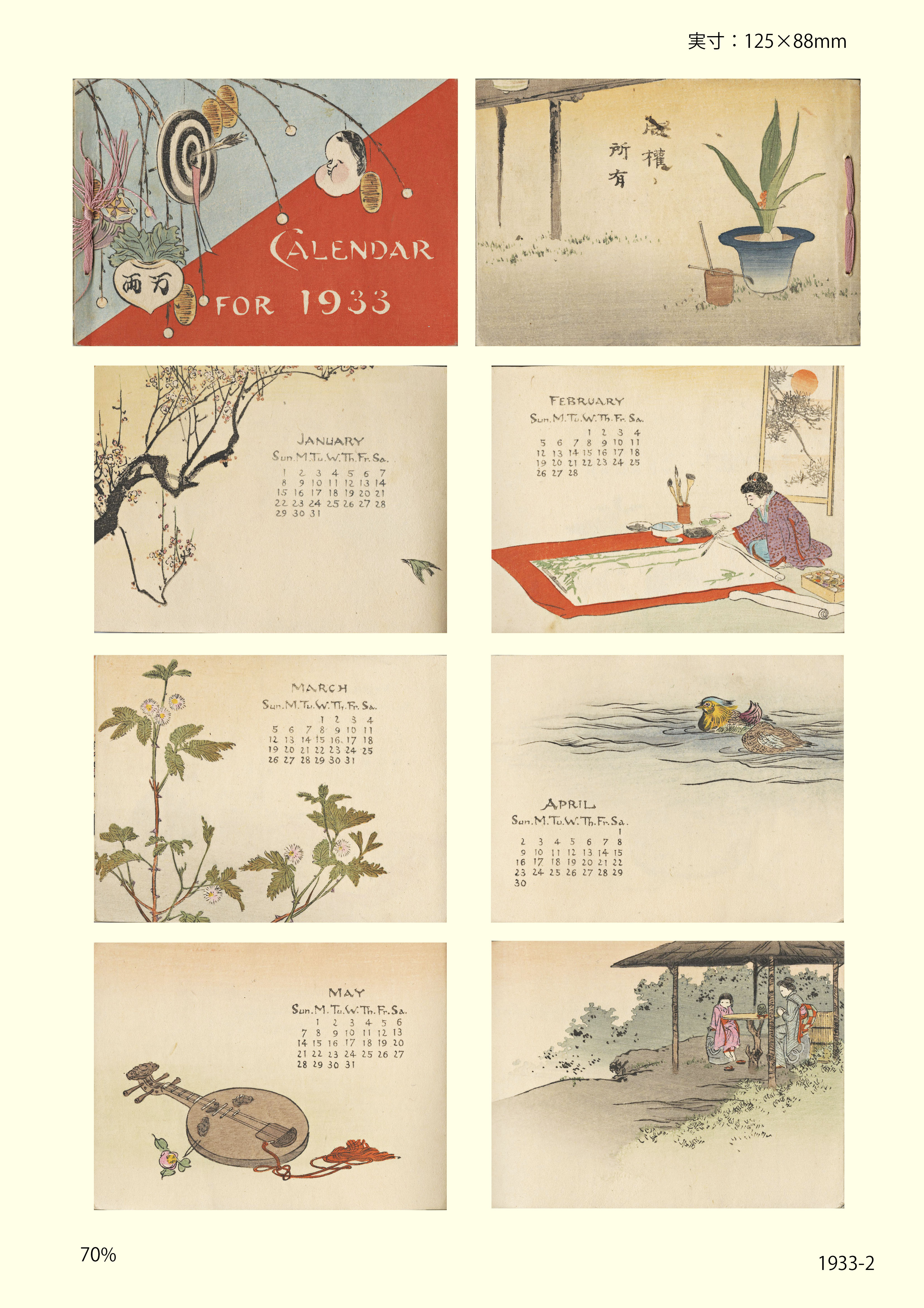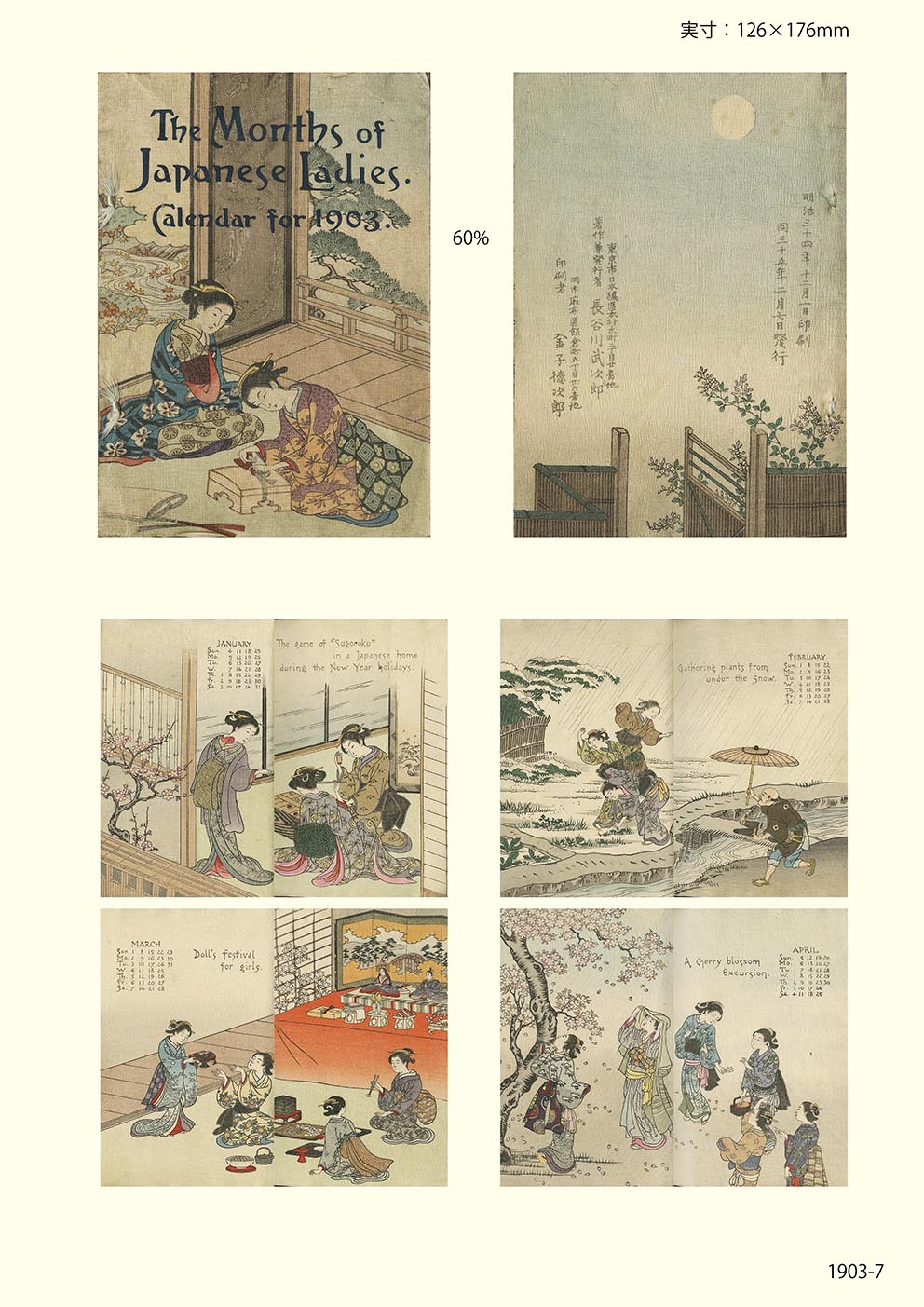 | 67 | 1908-2 | 明治41年 |  |  | Japanese Street Scenes Calendar for 1908 | | *Takejiro Hasegawa | | | | | | | | | | | 製本されておらずちりめん紙だがハードカバー、表紙なし