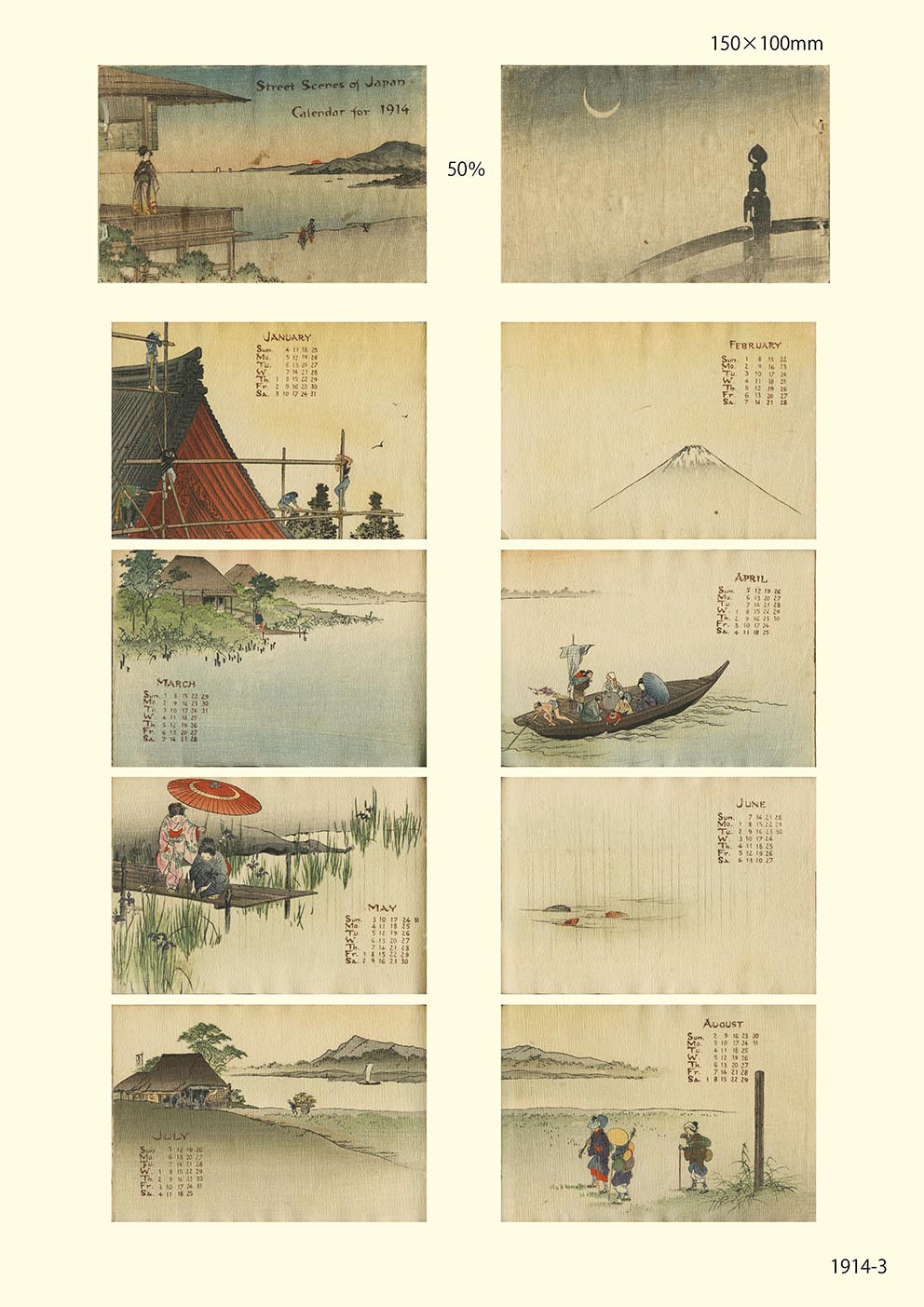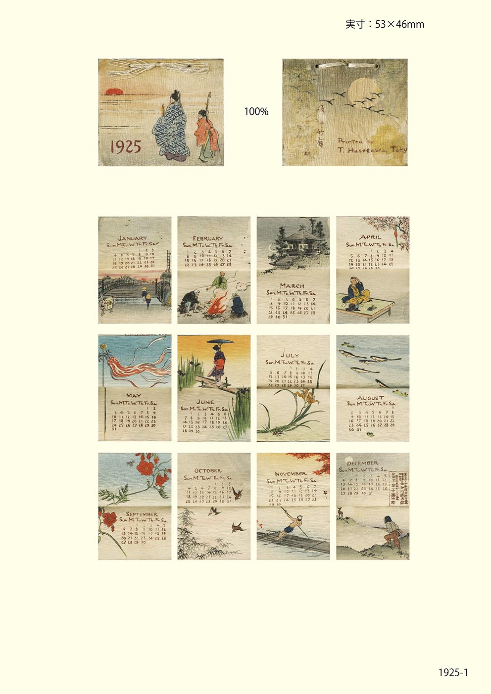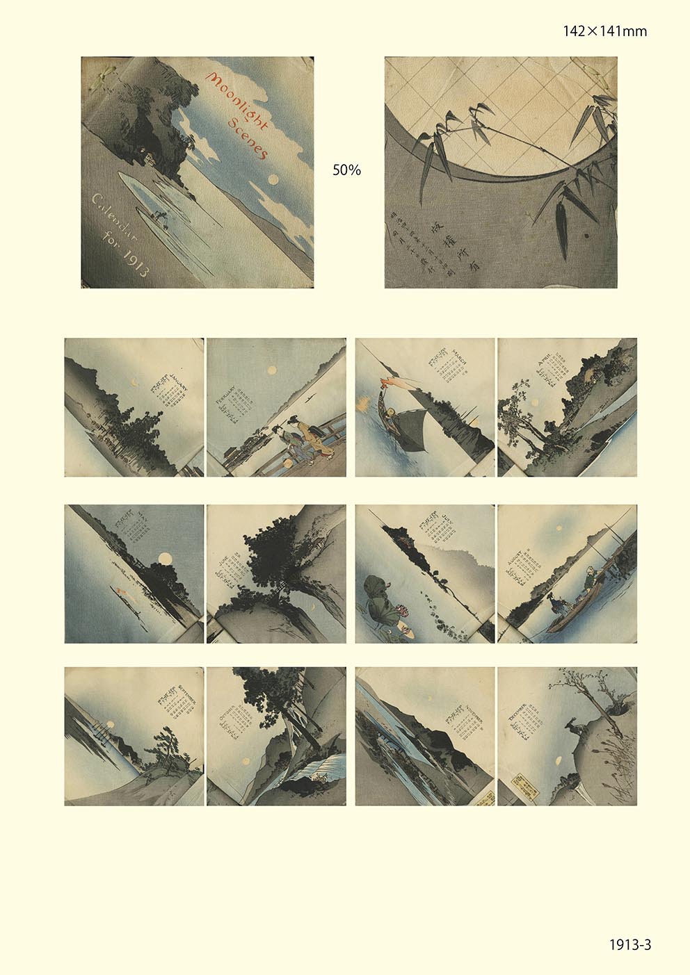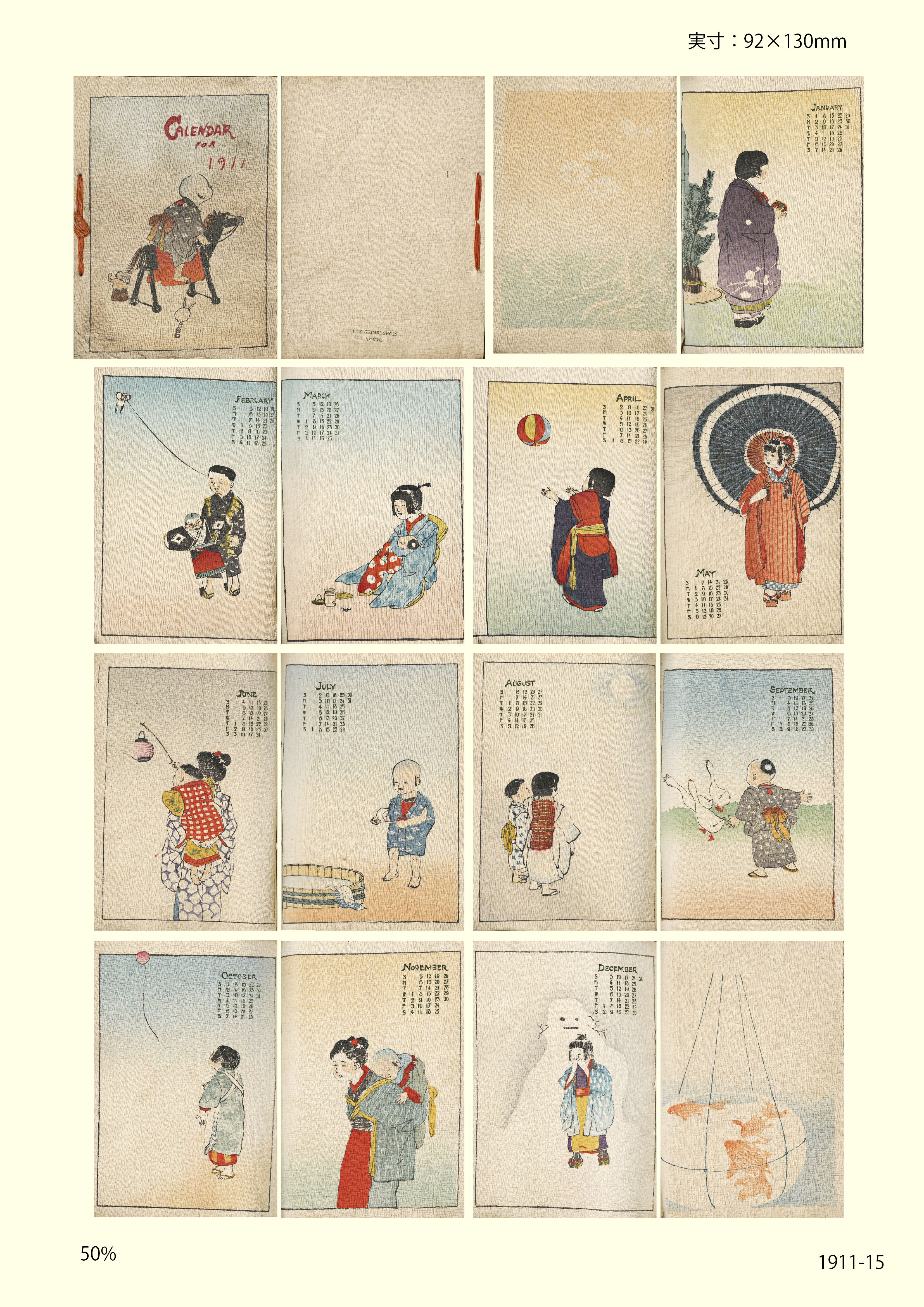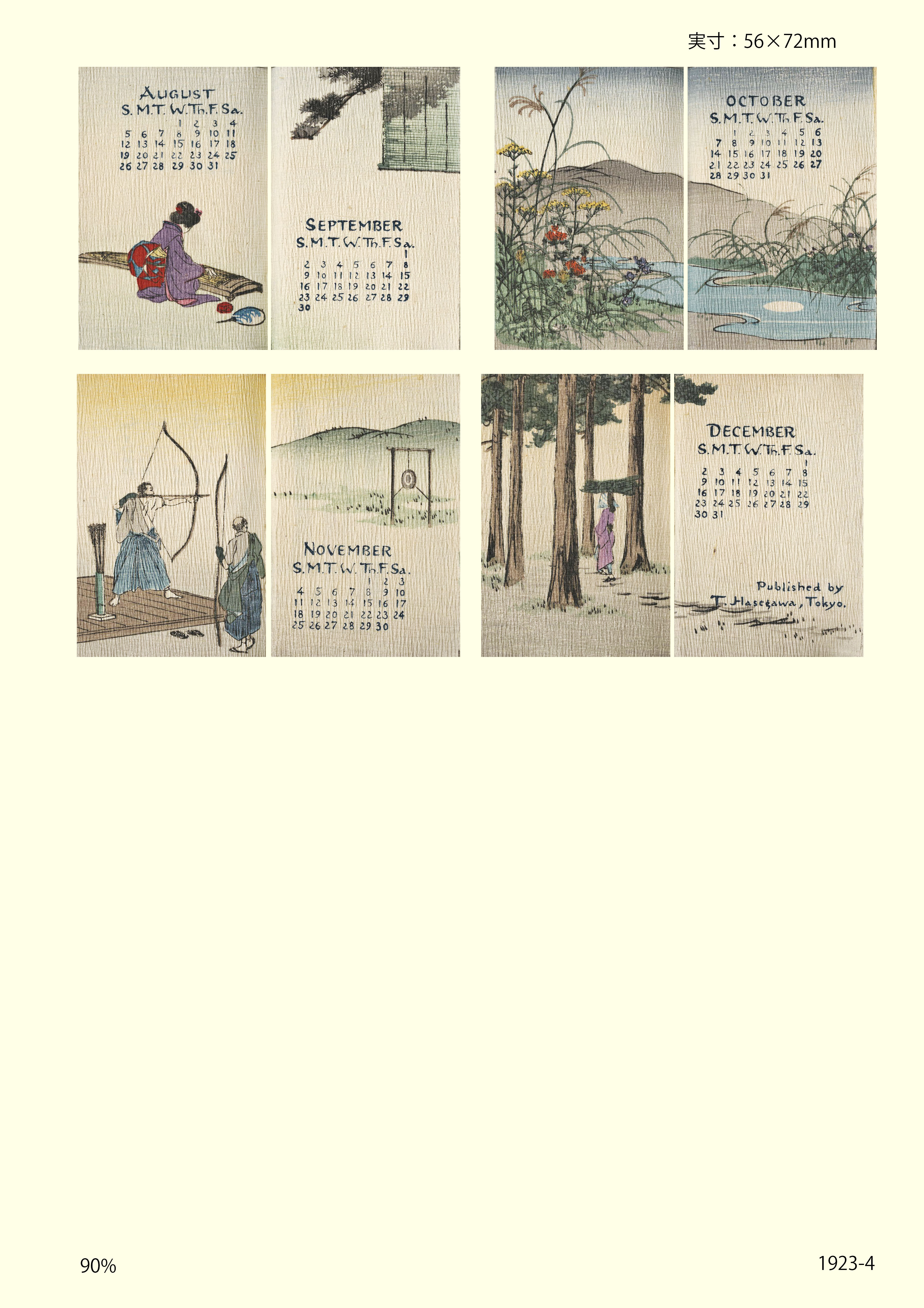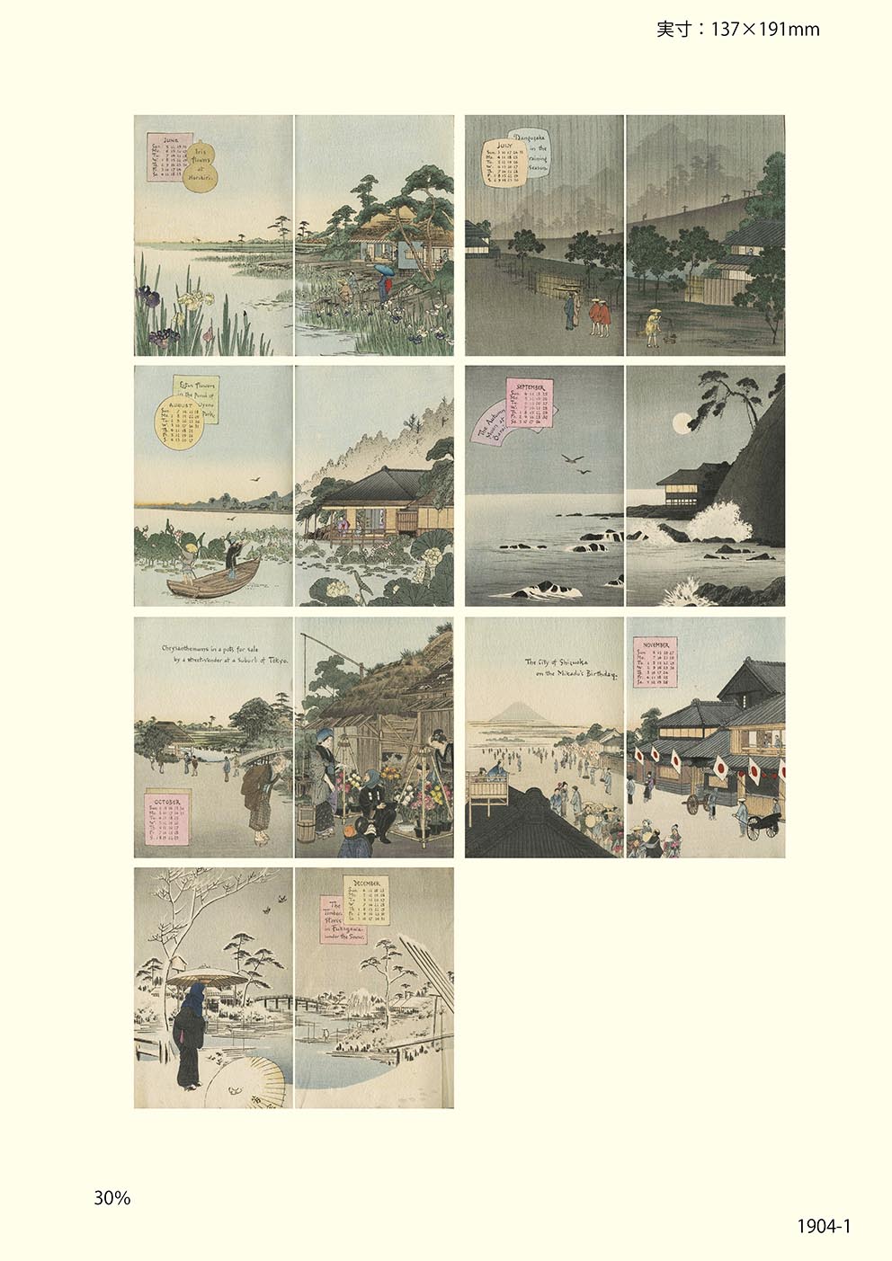 | 67 | 1908-2 | 明治41年 |  |  | Japanese Street Scenes Calendar for 1908 | | *Takejiro Hasegawa | | | | | | | | | | | 製本されておらずちりめん紙だがハードカバー、表紙なし