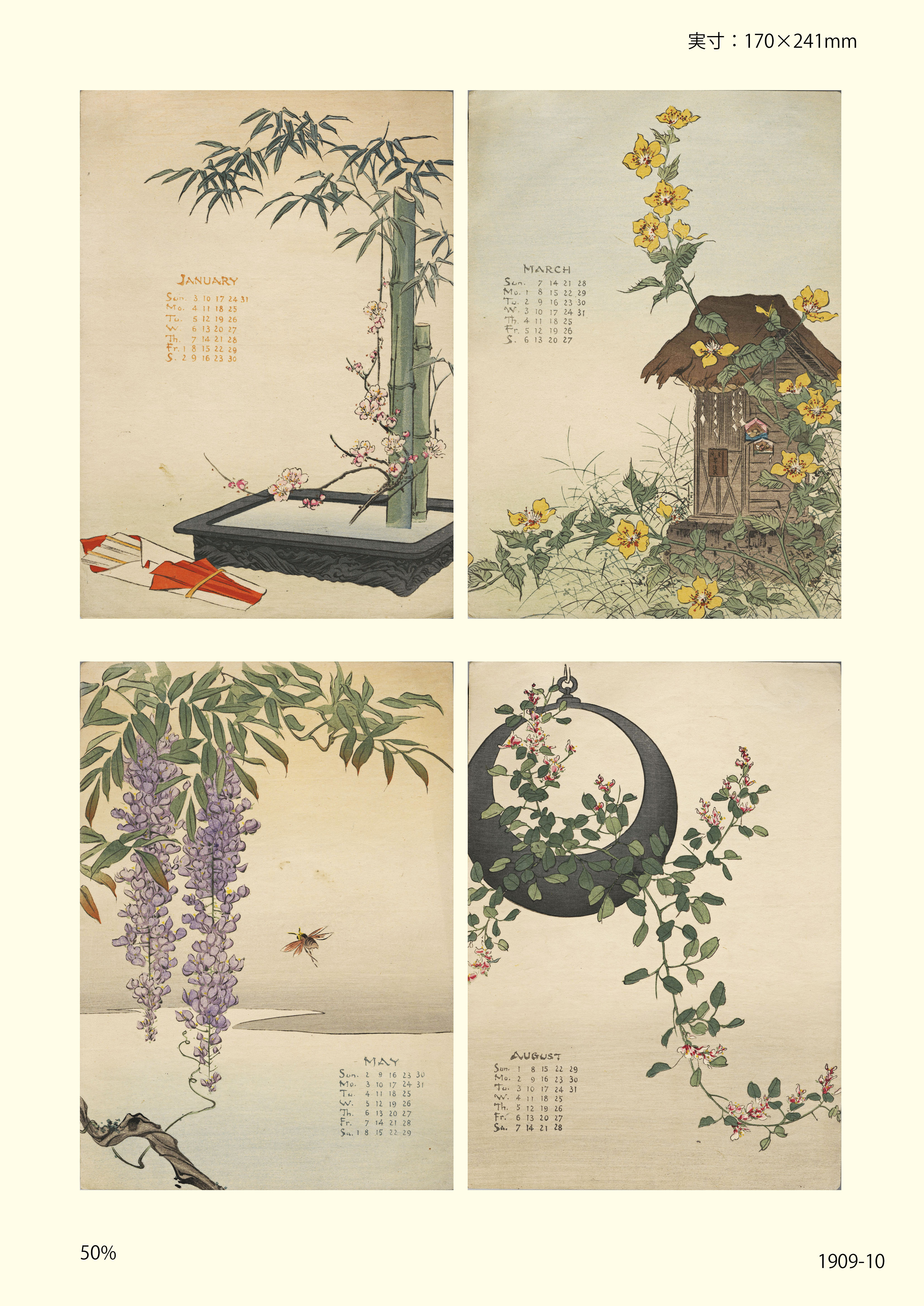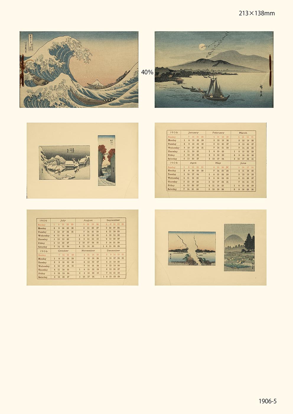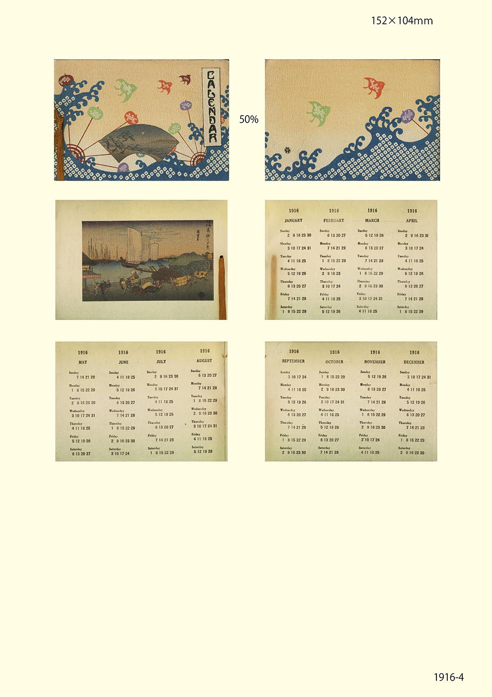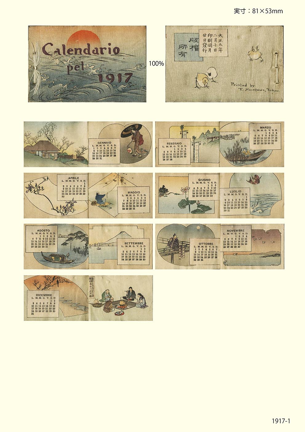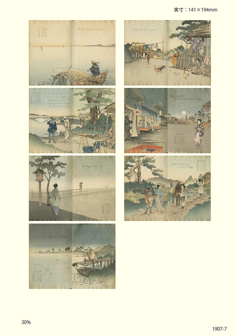 | 67 | 1908-2 | 明治41年 |  |  | Japanese Street Scenes Calendar for 1908 | | *Takejiro Hasegawa | | | | | | | | | | | 製本されておらずちりめん紙だがハードカバー、表紙なし