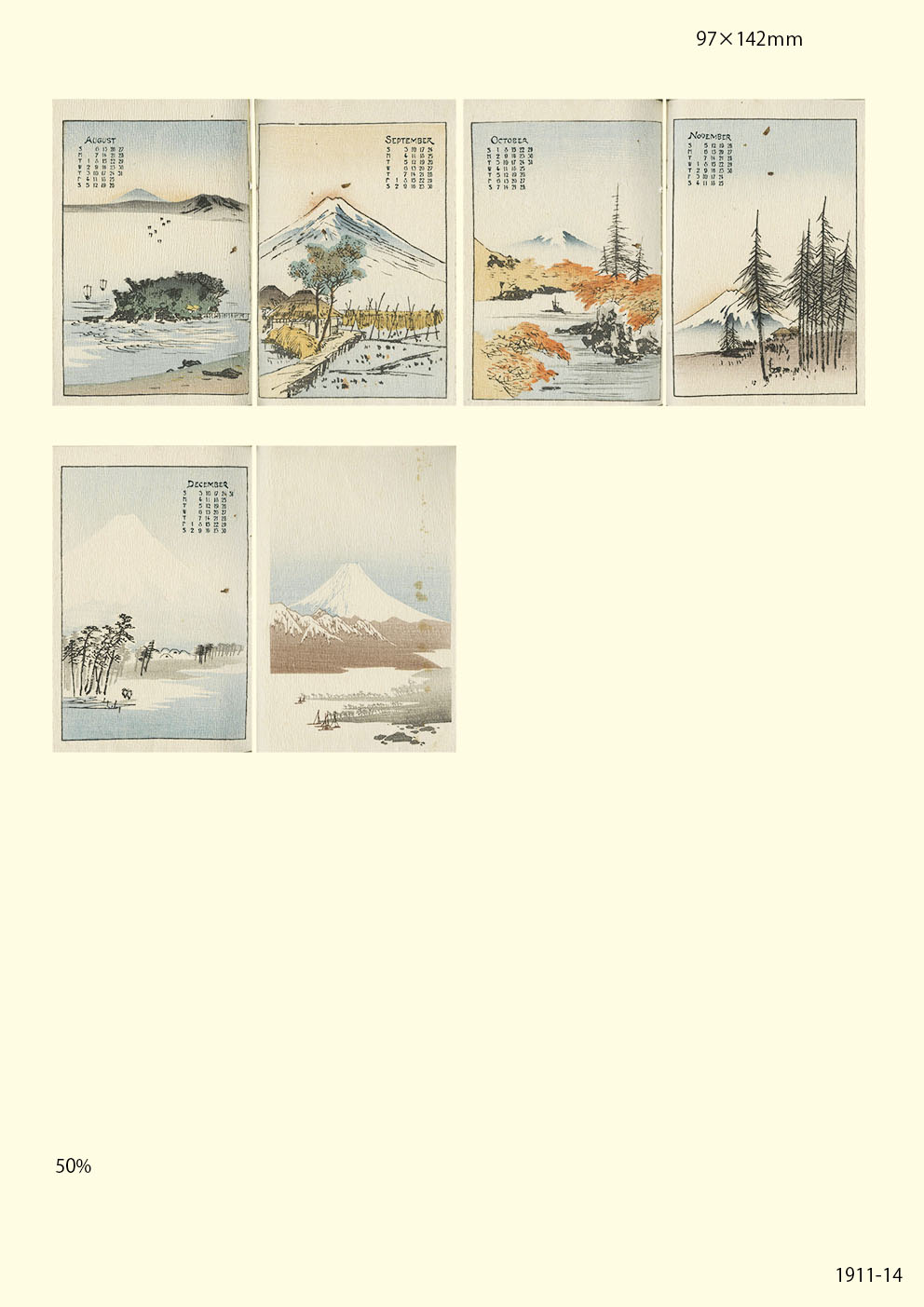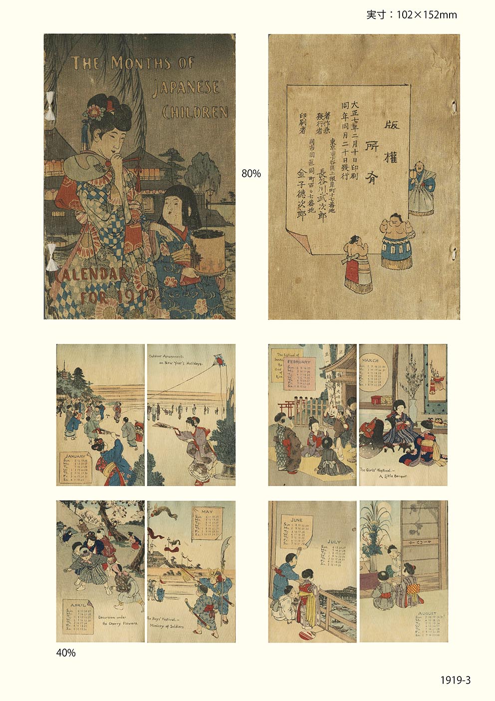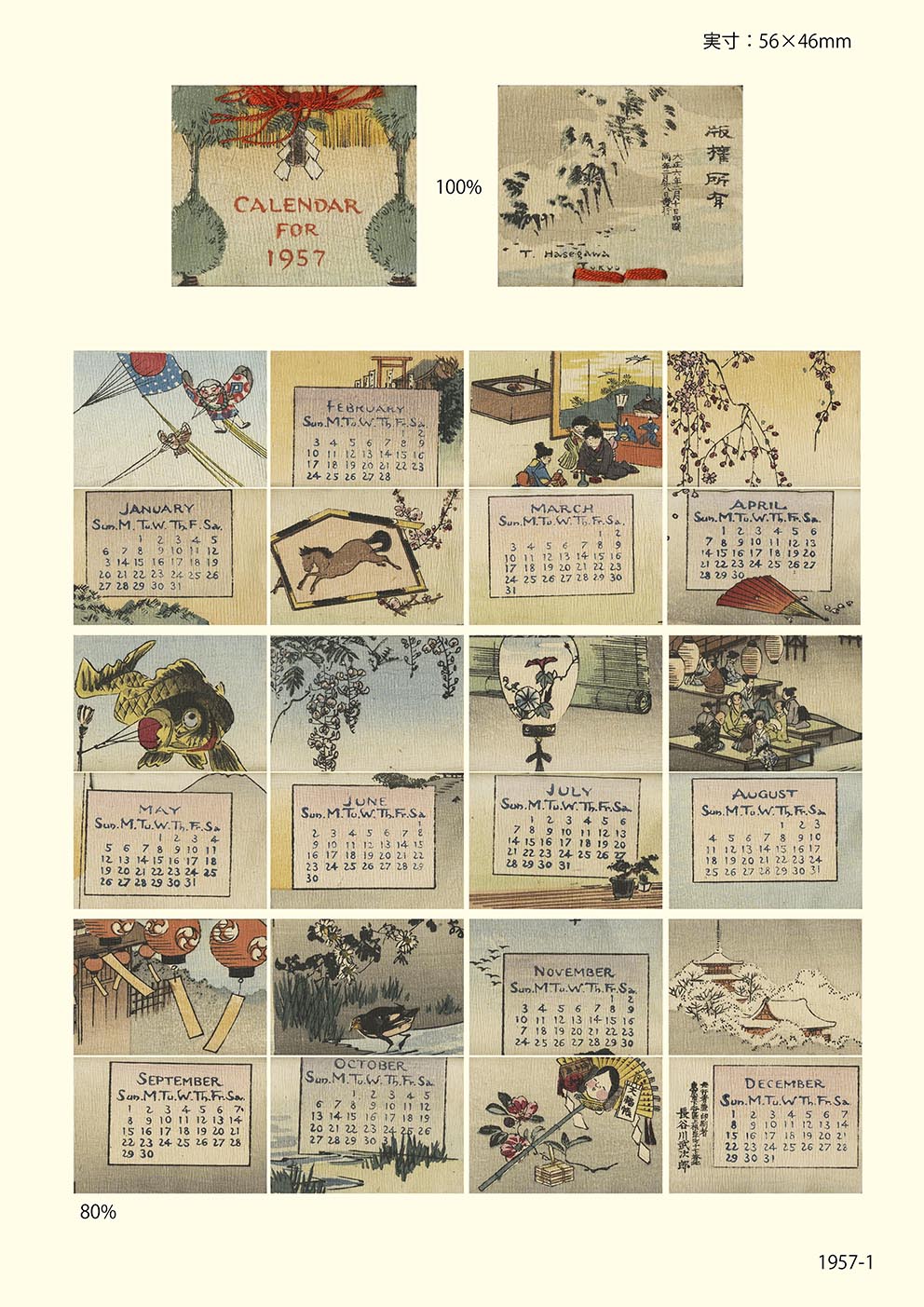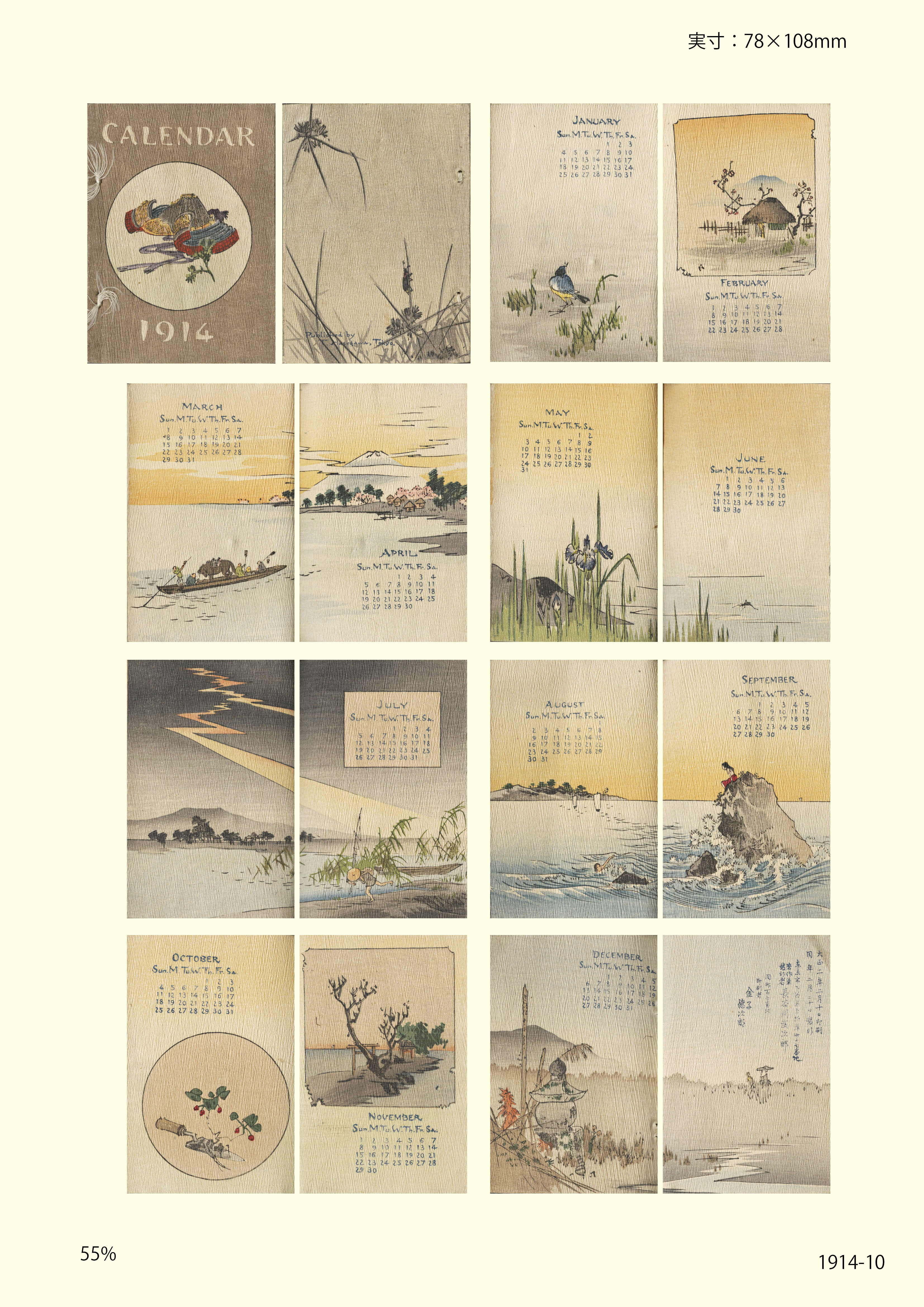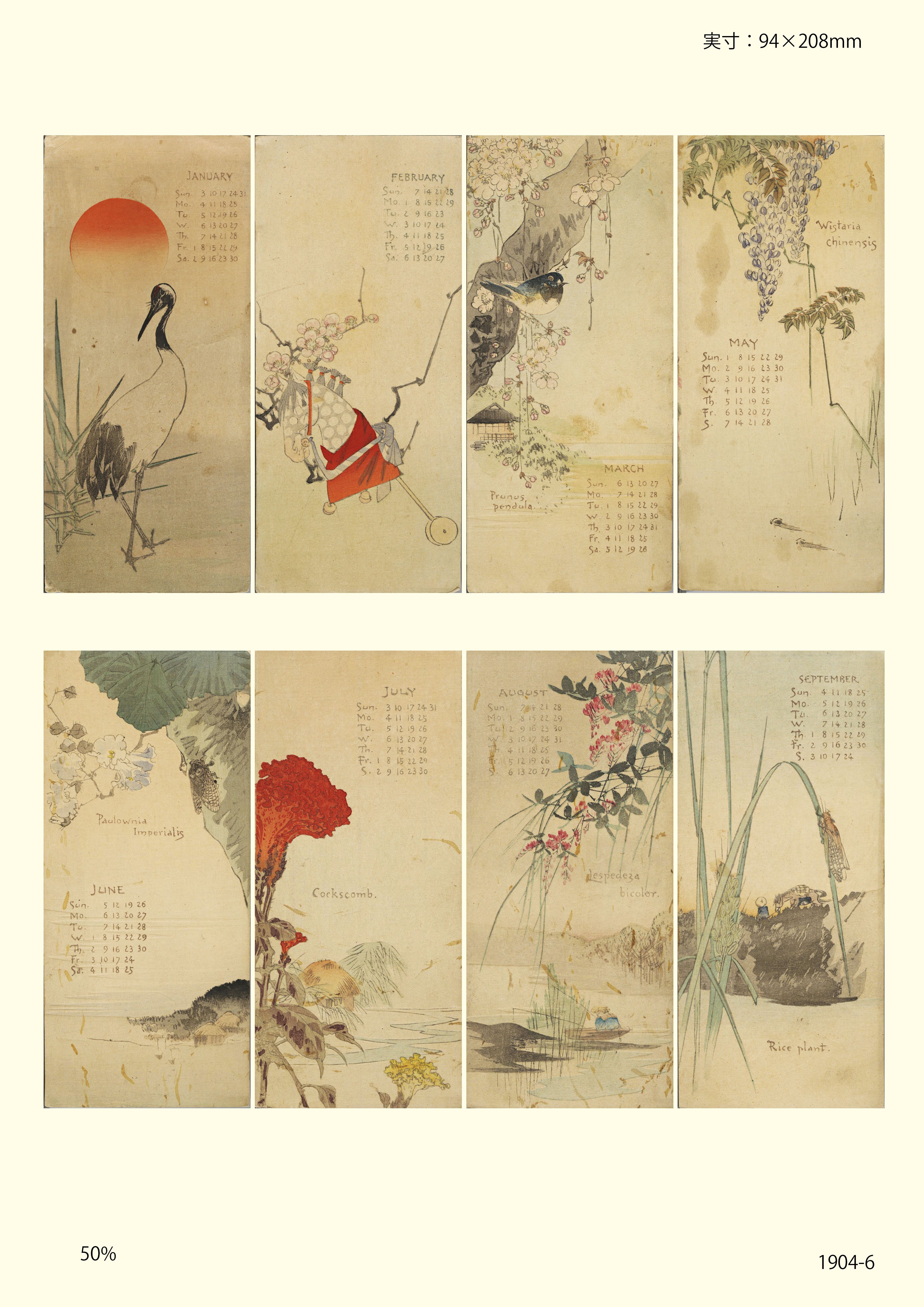 | 67 | 1908-2 | 明治41年 |  |  | Japanese Street Scenes Calendar for 1908 | | *Takejiro Hasegawa | | | | | | | | | | | 製本されておらずちりめん紙だがハードカバー、表紙なし