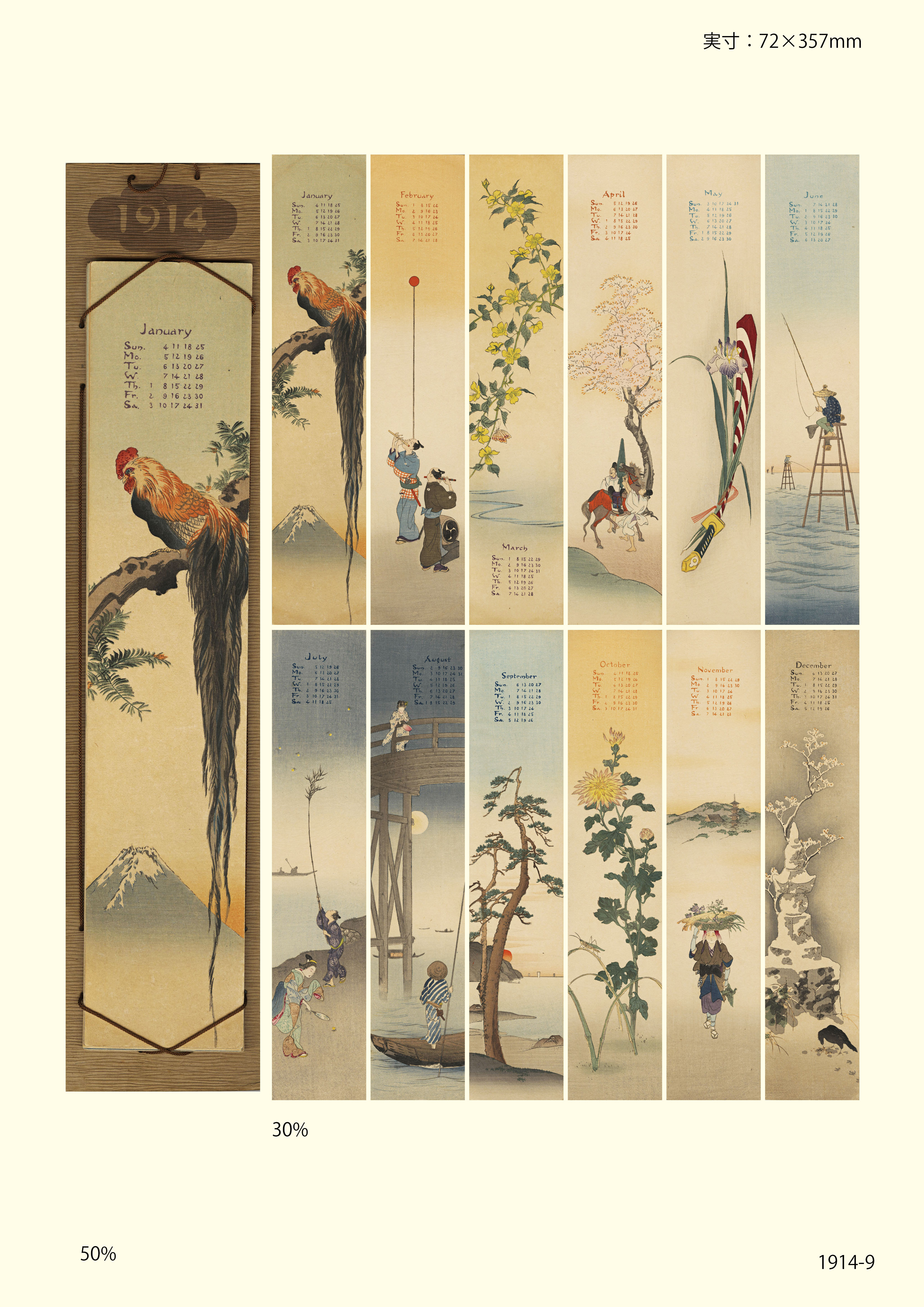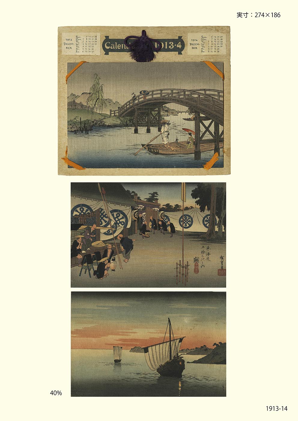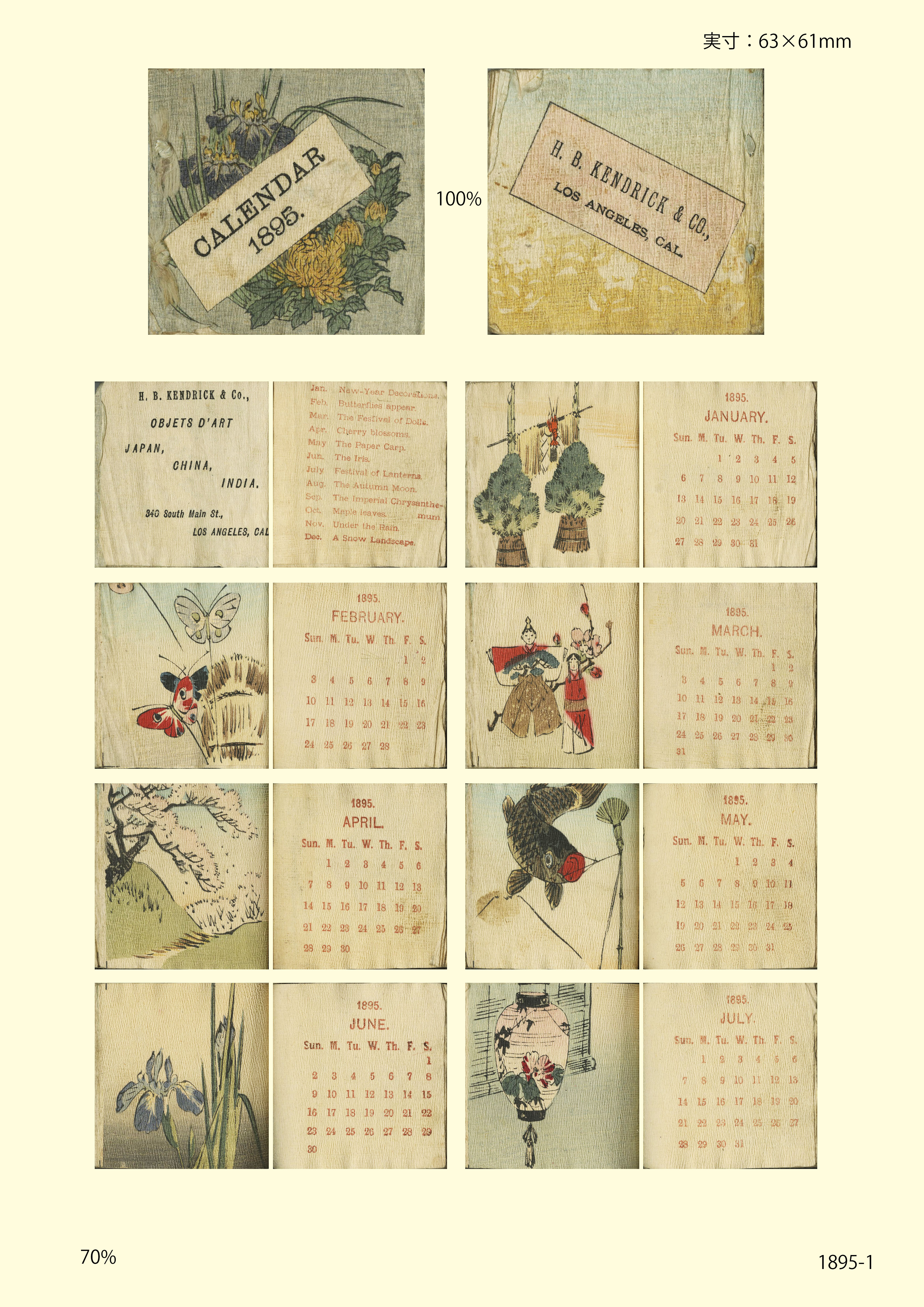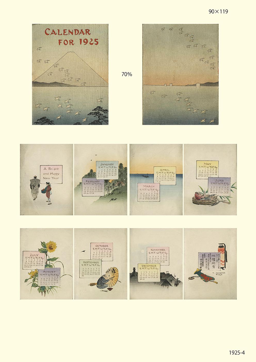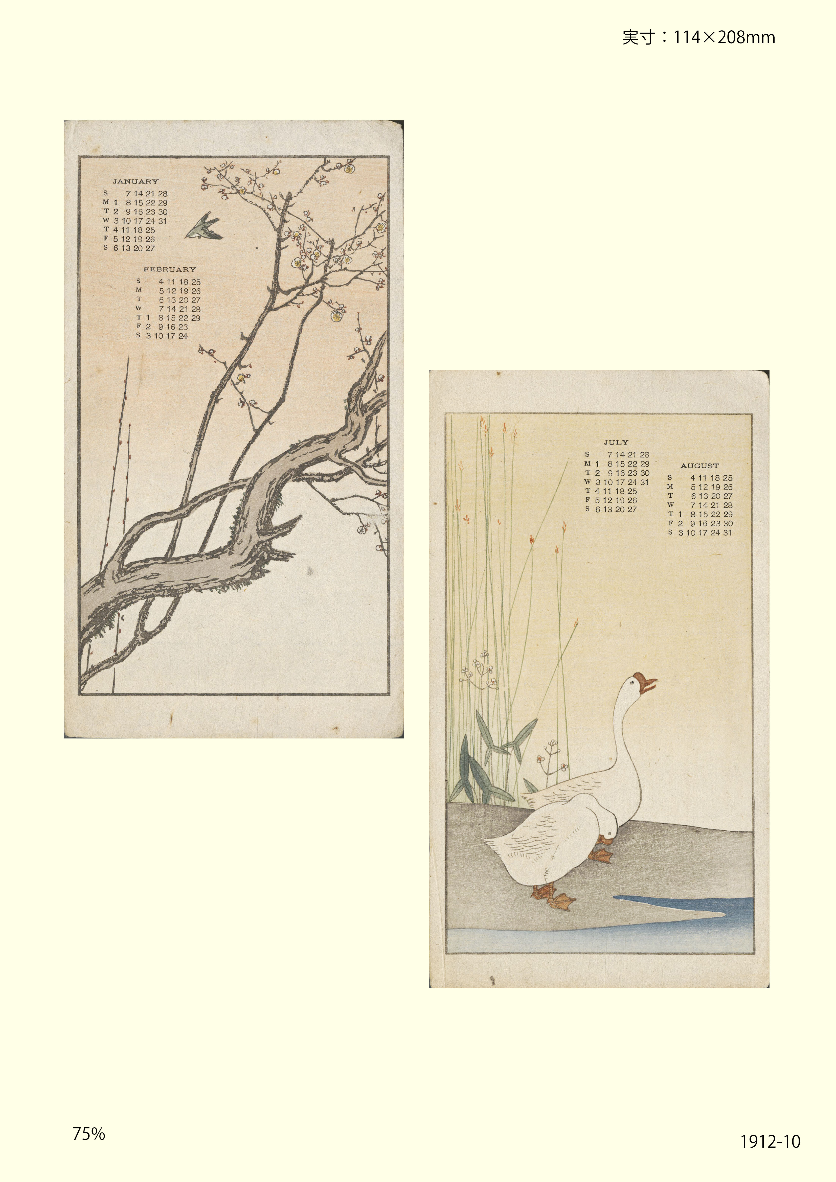 | 67 | 1908-2 | 明治41年 |  |  | Japanese Street Scenes Calendar for 1908 | | *Takejiro Hasegawa | | | | | | | | | | | 製本されておらずちりめん紙だがハードカバー、表紙なし