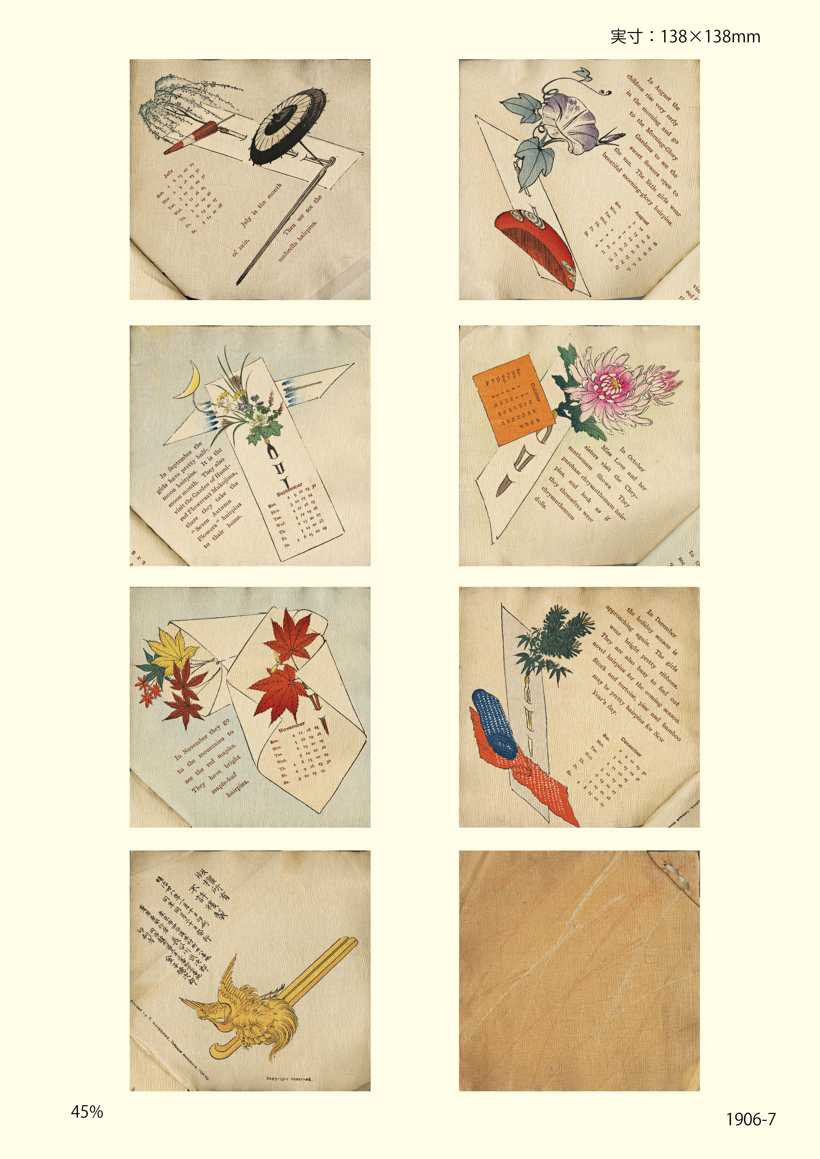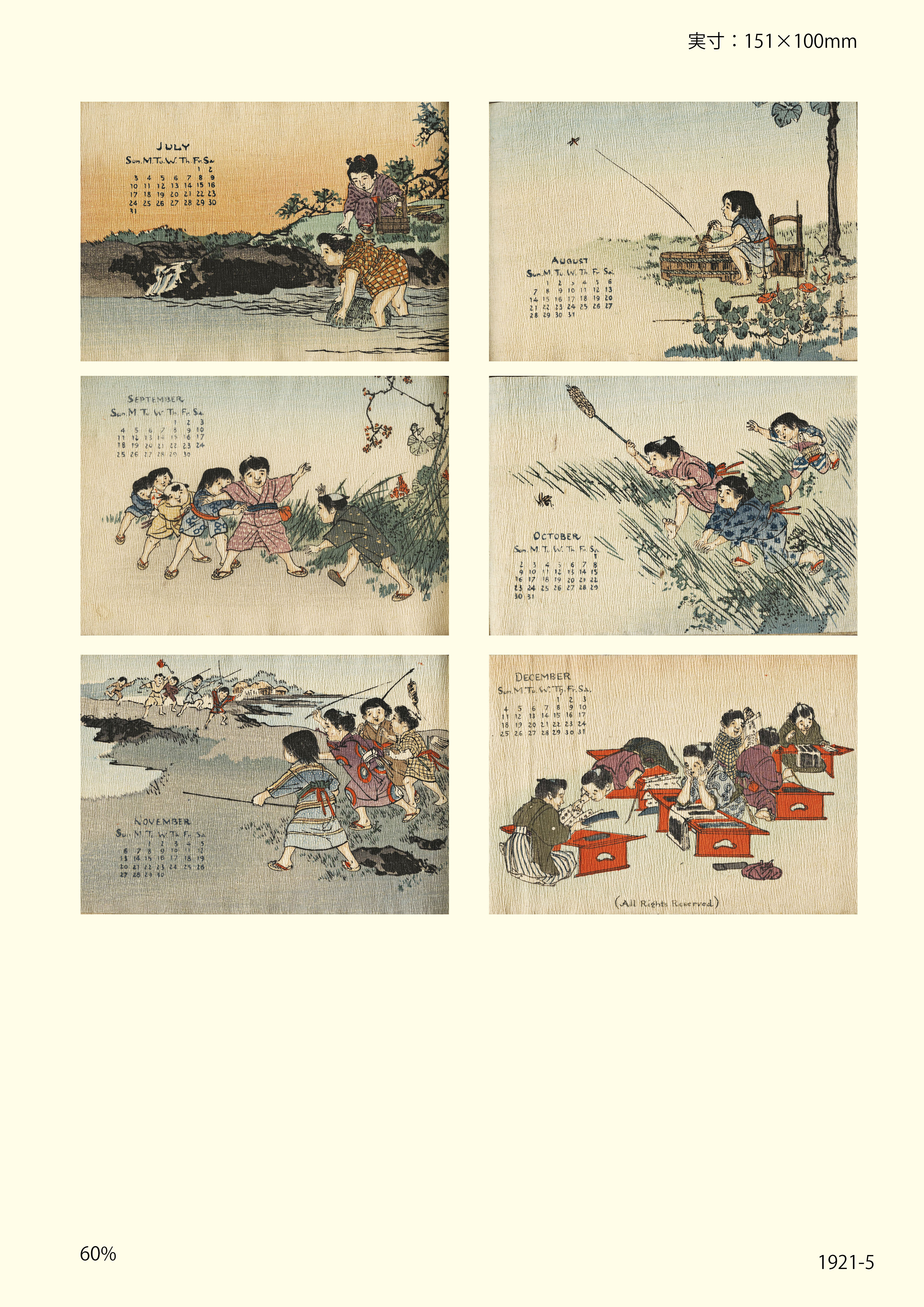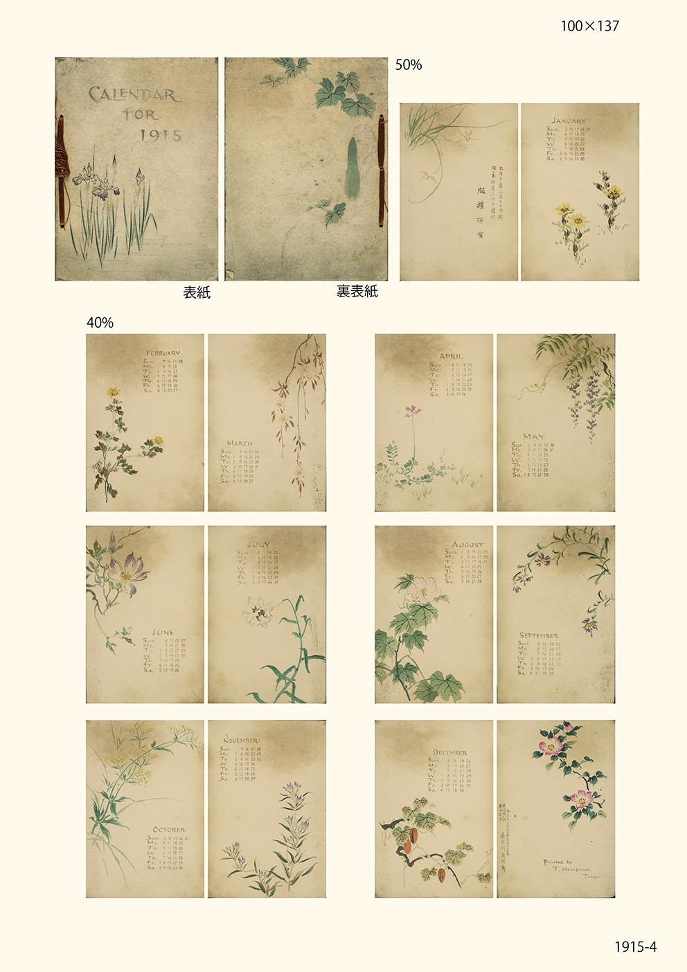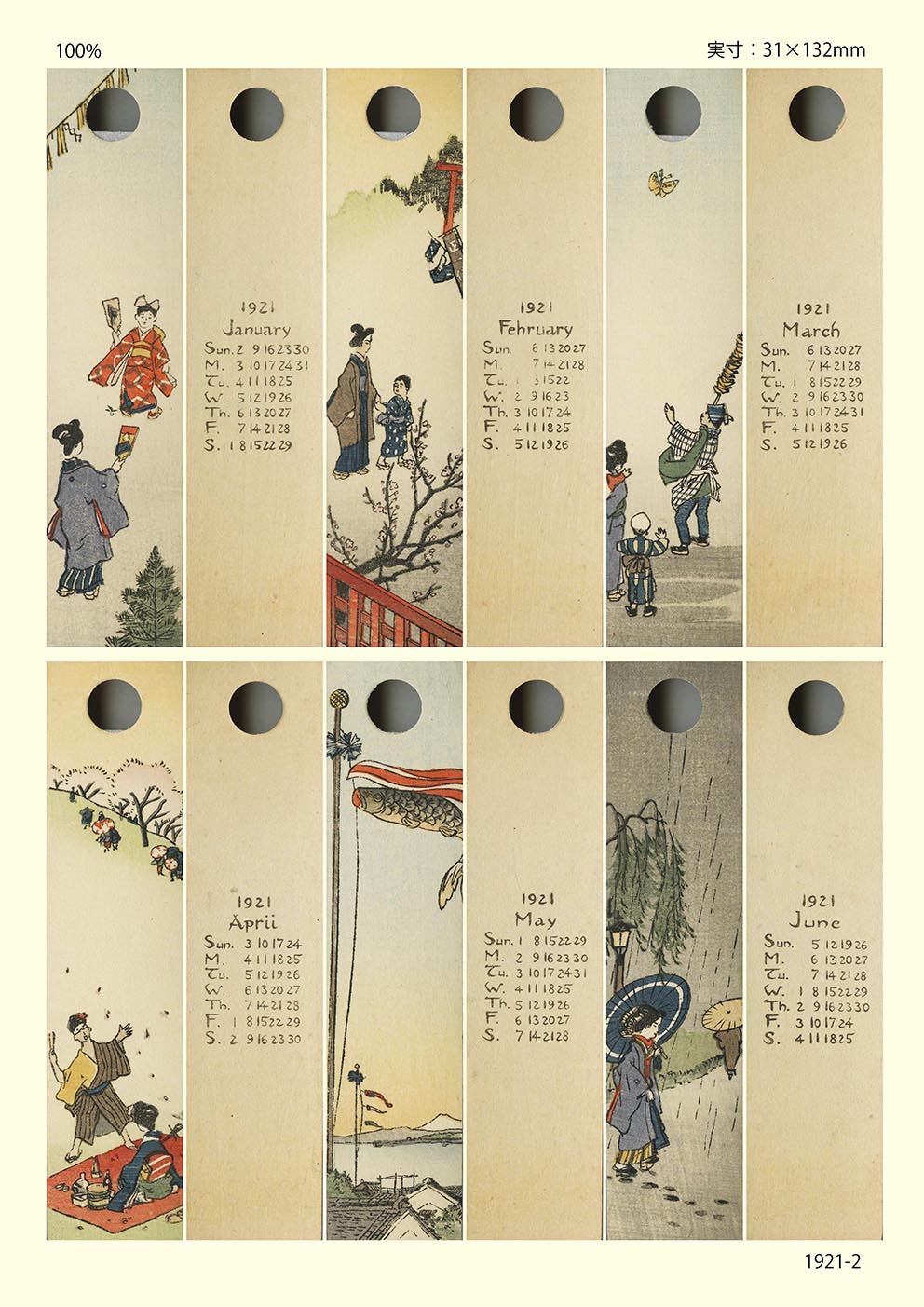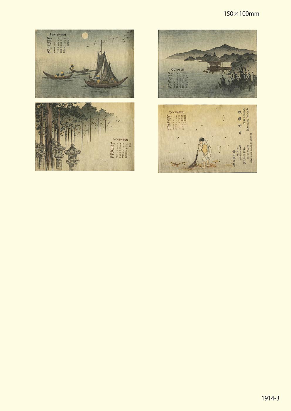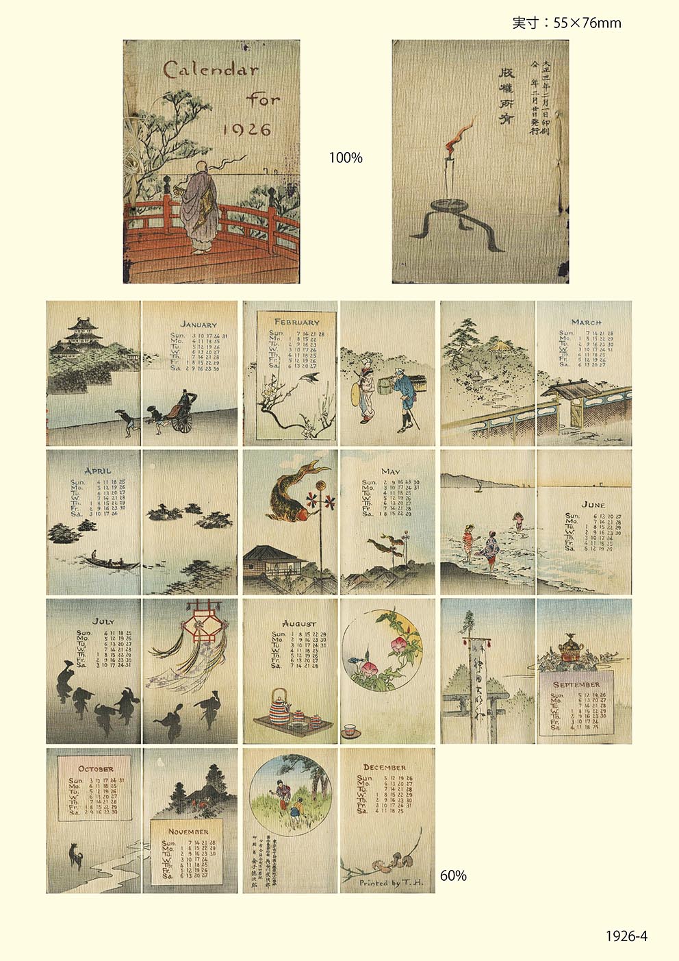 | 67 | 1908-2 | 明治41年 |  |  | Japanese Street Scenes Calendar for 1908 | | *Takejiro Hasegawa | | | | | | | | | | | 製本されておらずちりめん紙だがハードカバー、表紙なし