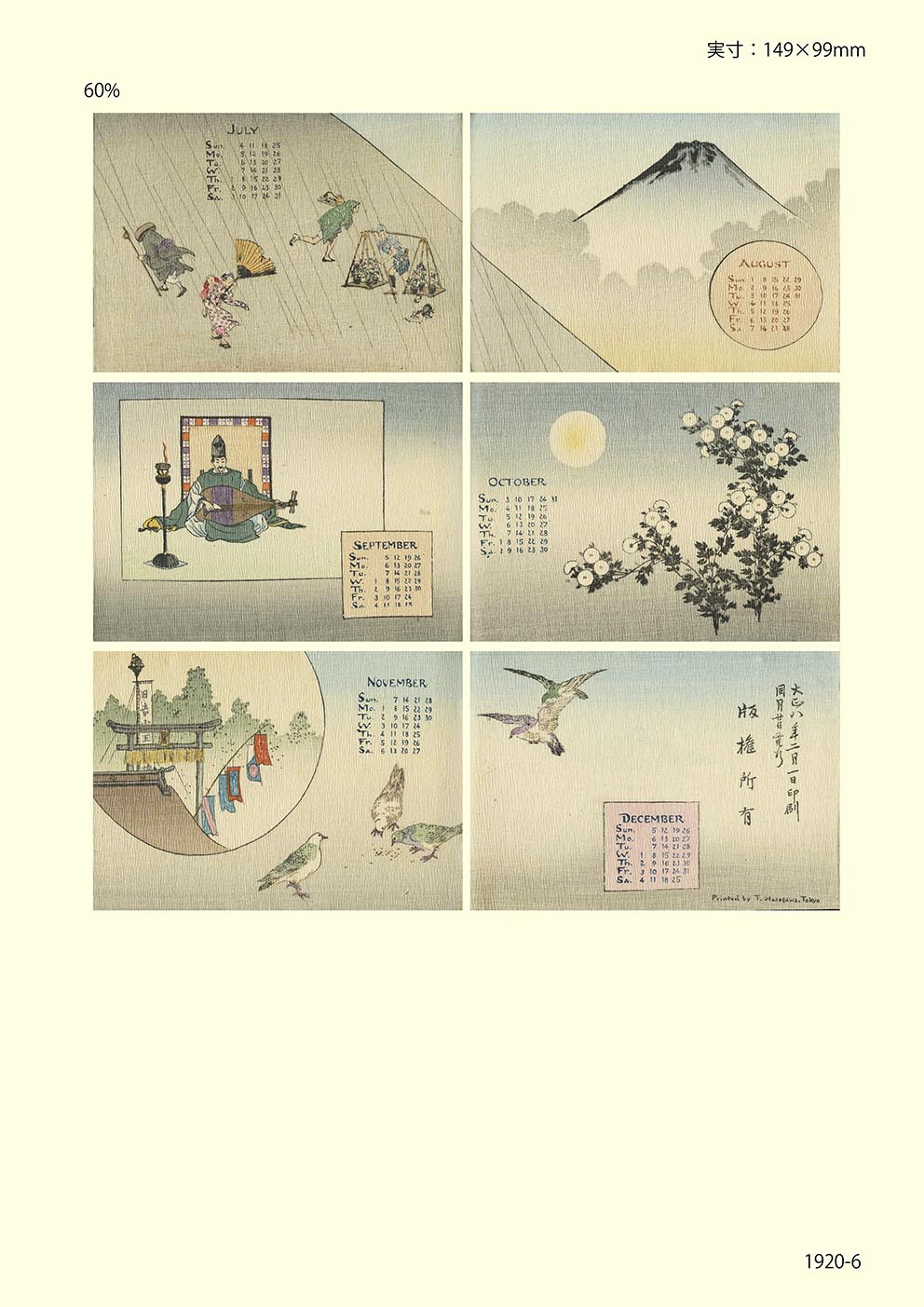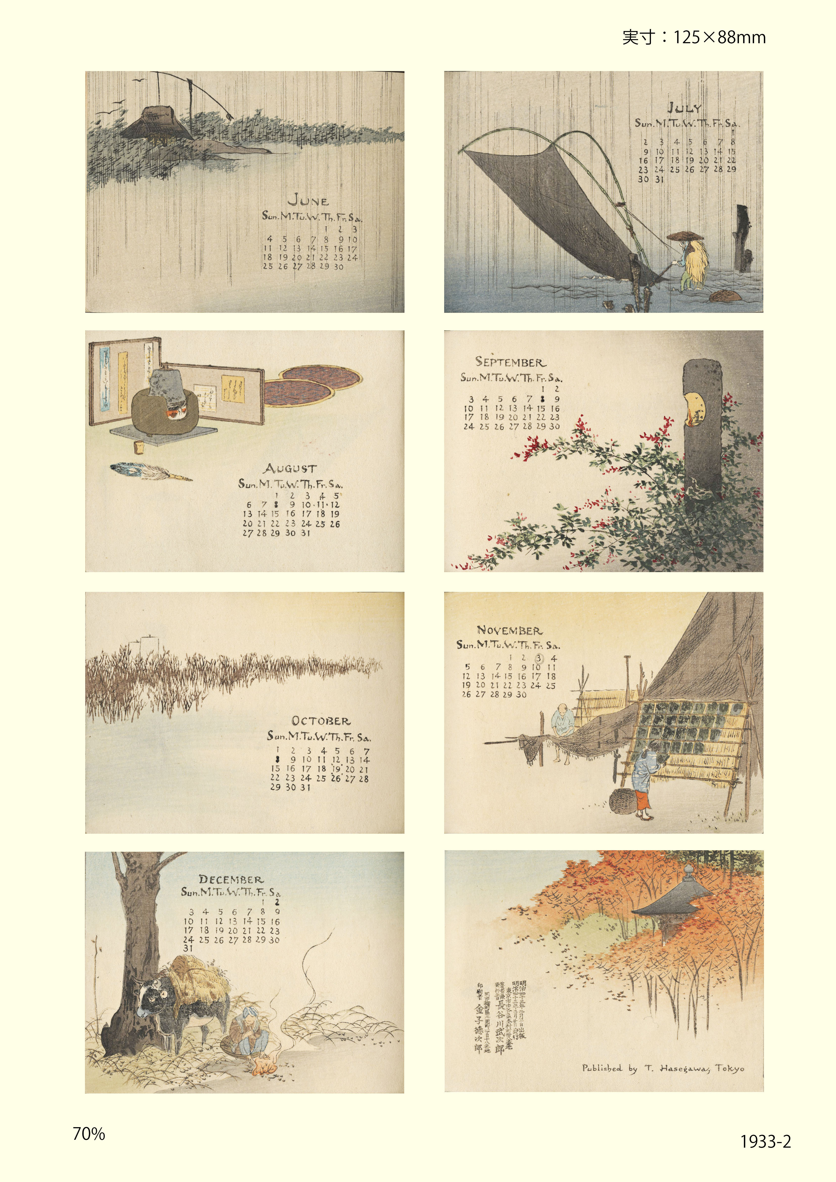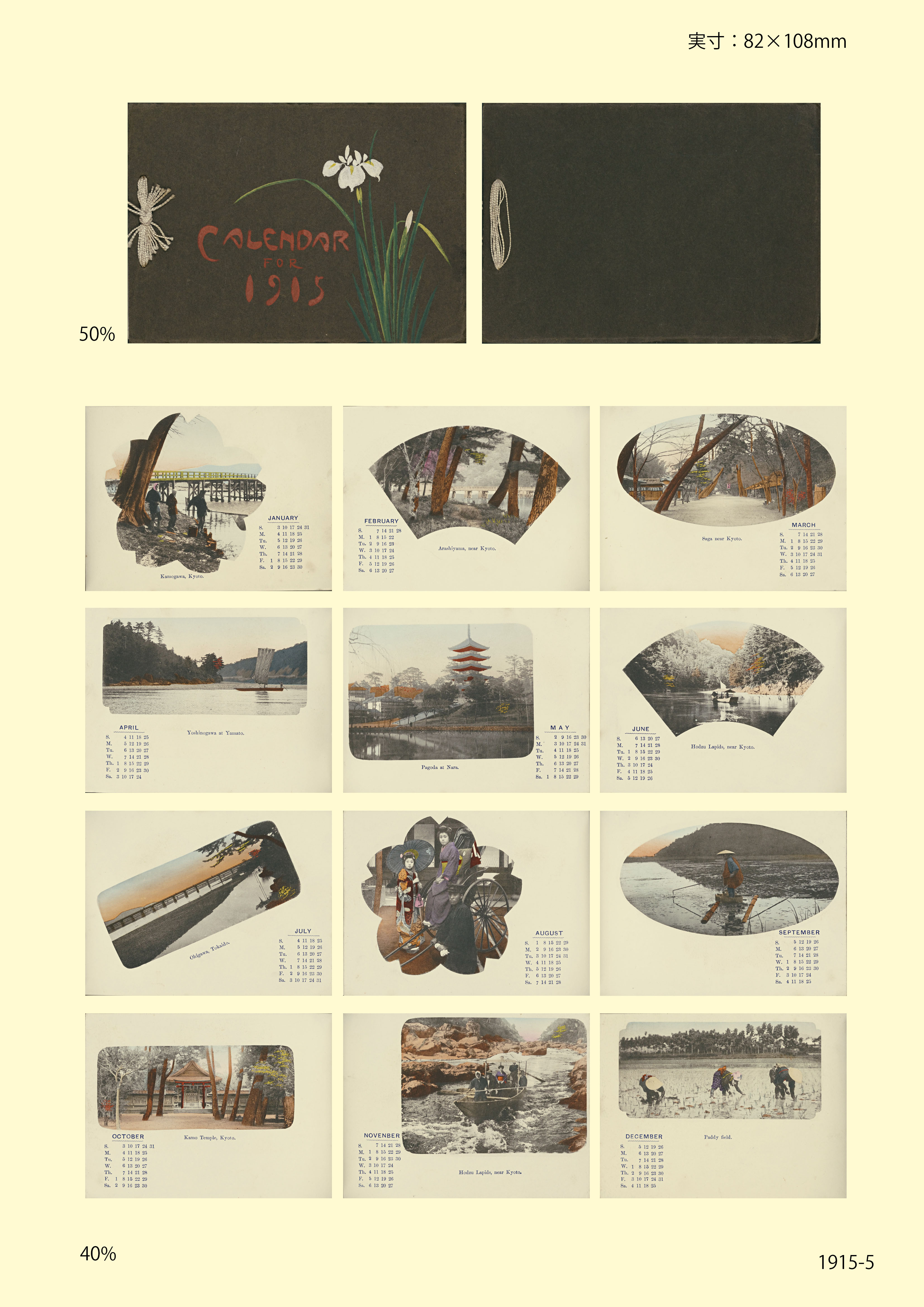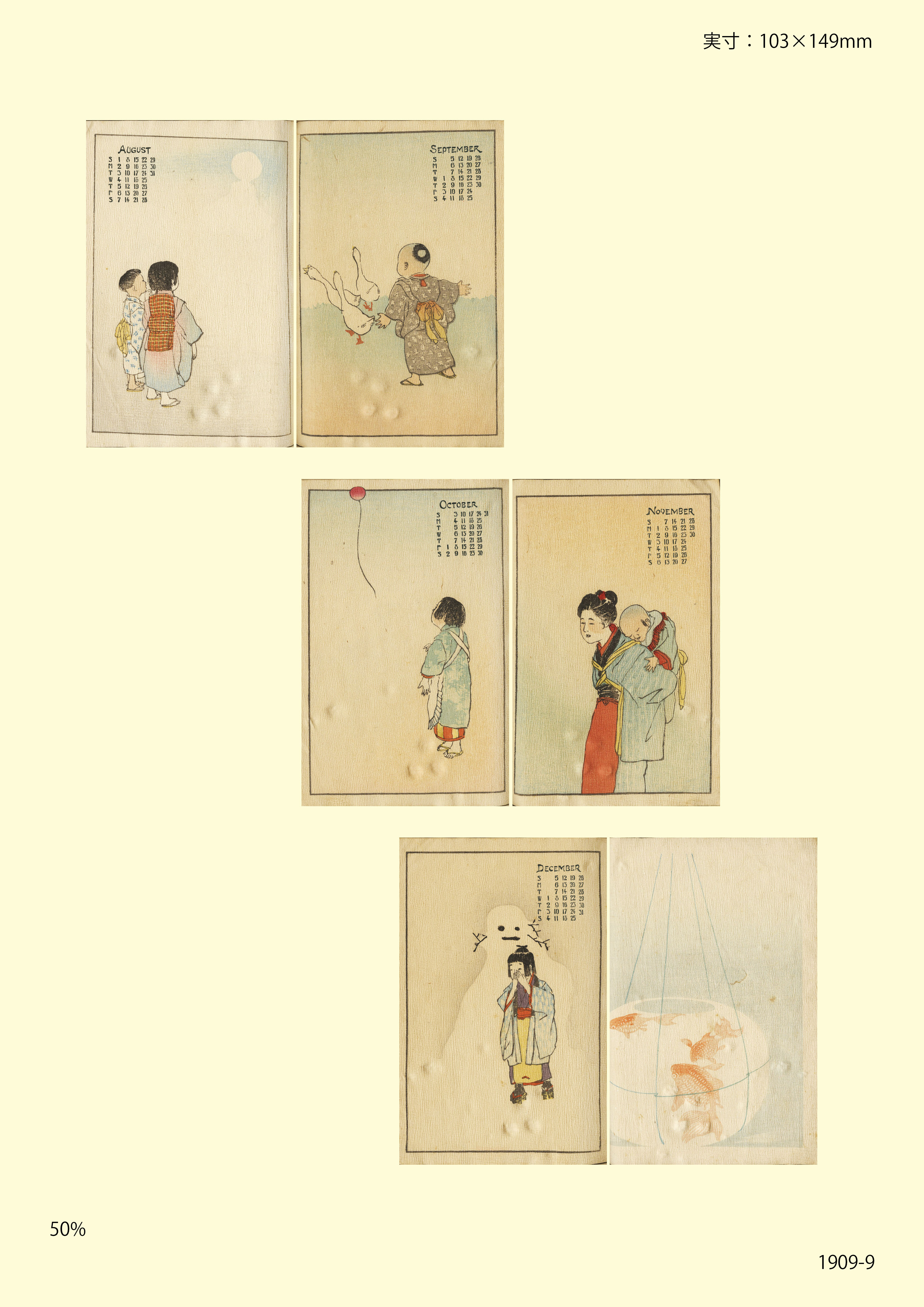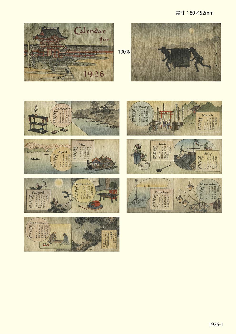 | 67 | 1908-2 | 明治41年 |  |  | Japanese Street Scenes Calendar for 1908 | | *Takejiro Hasegawa | | | | | | | | | | | 製本されておらずちりめん紙だがハードカバー、表紙なし