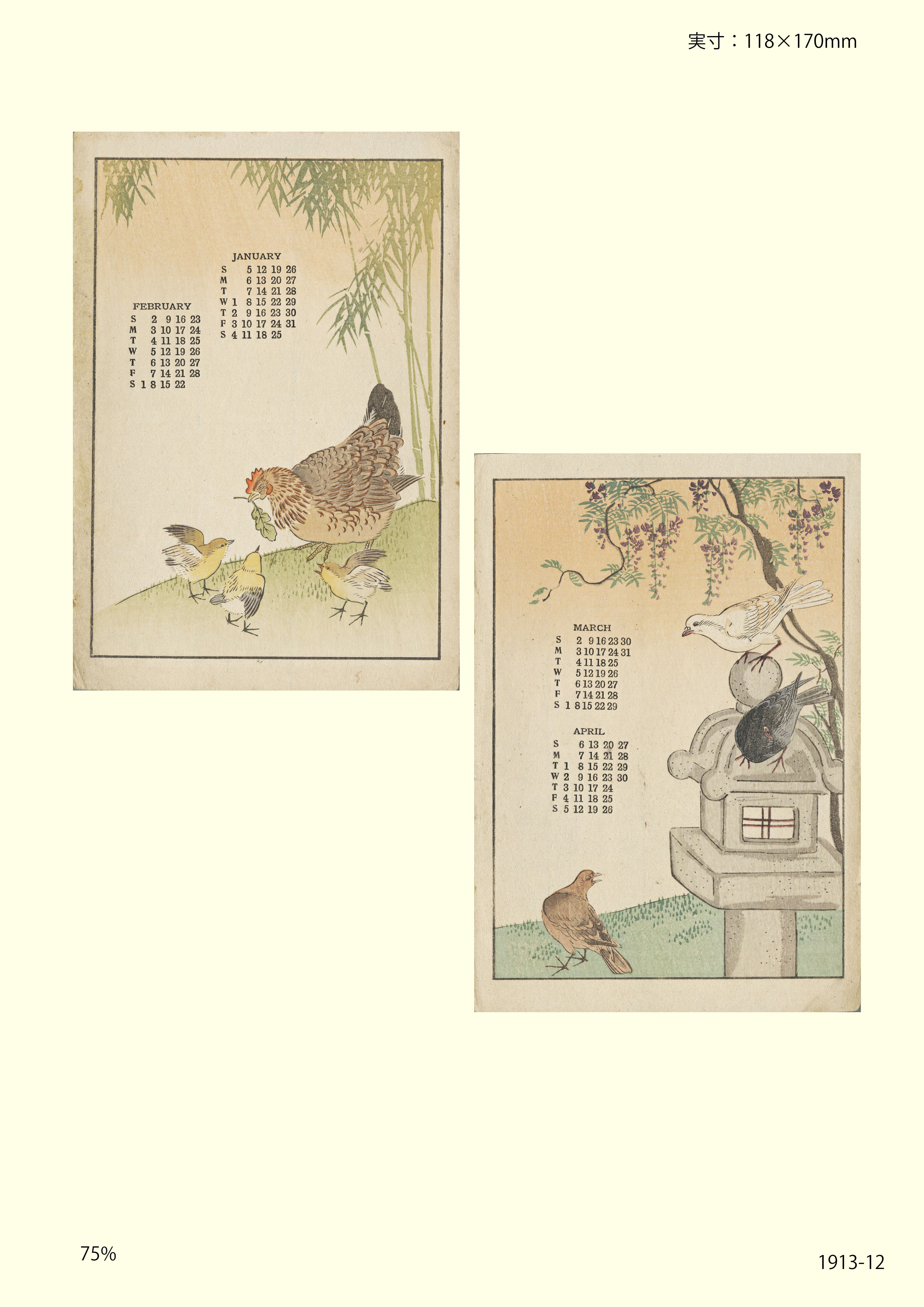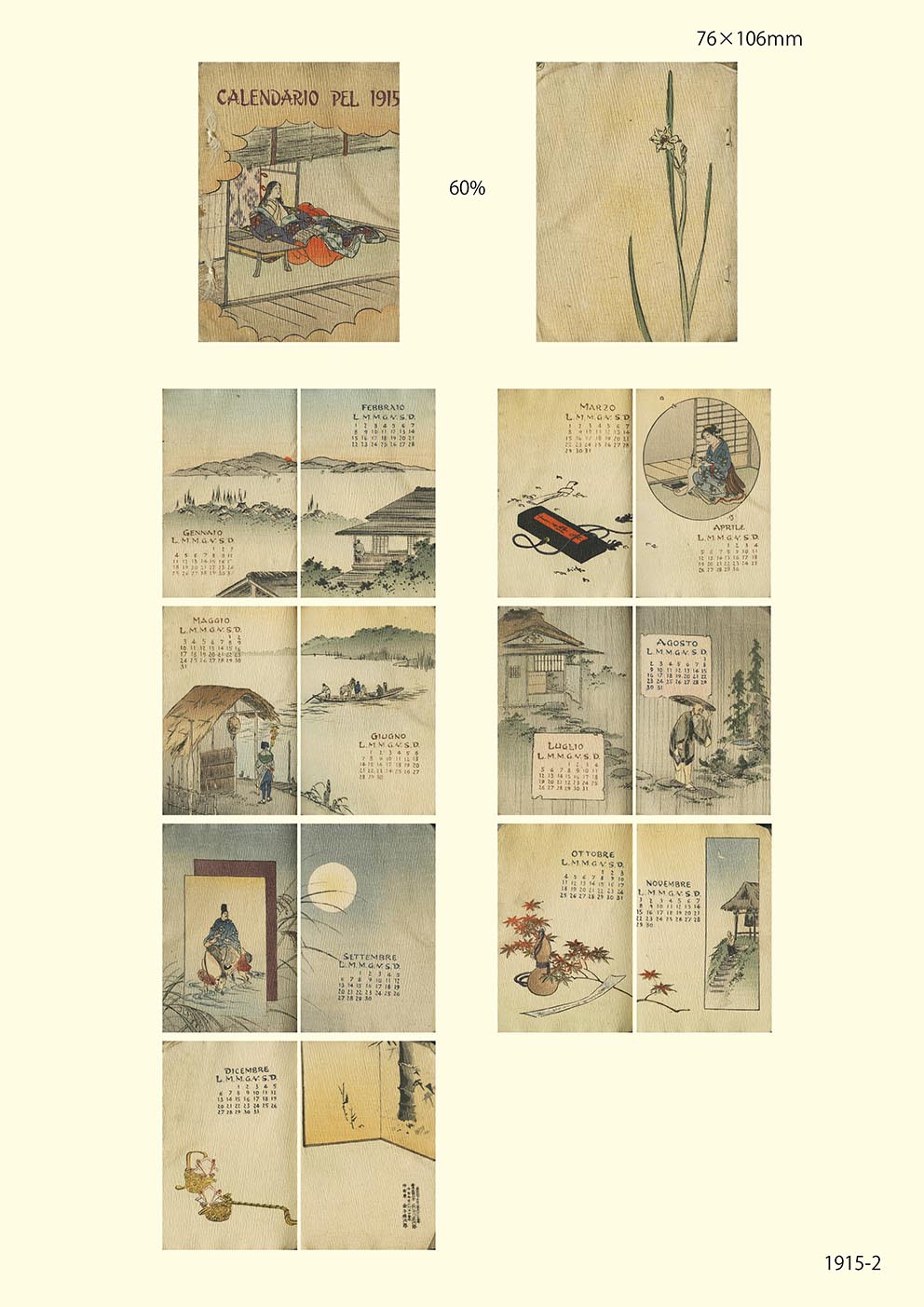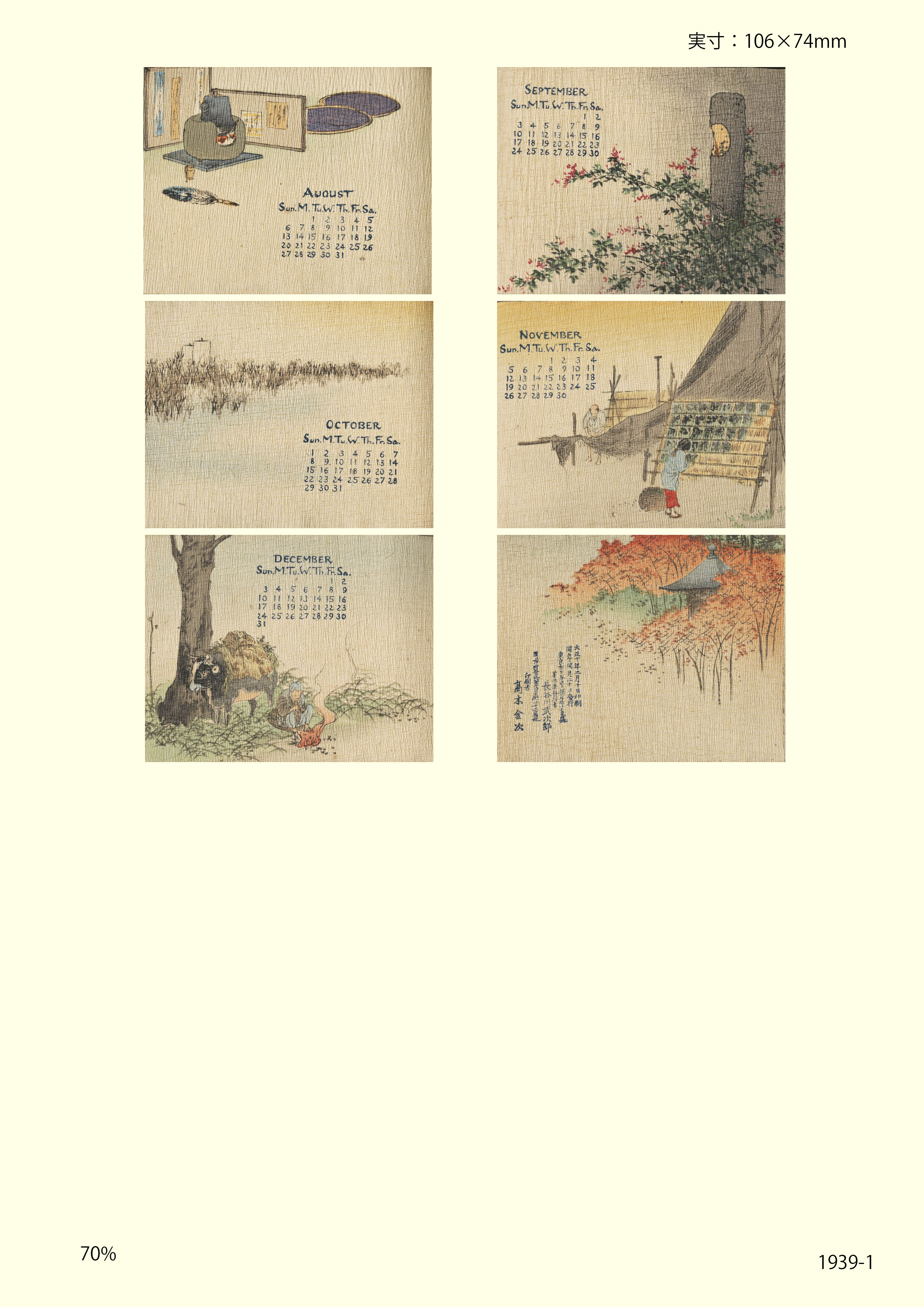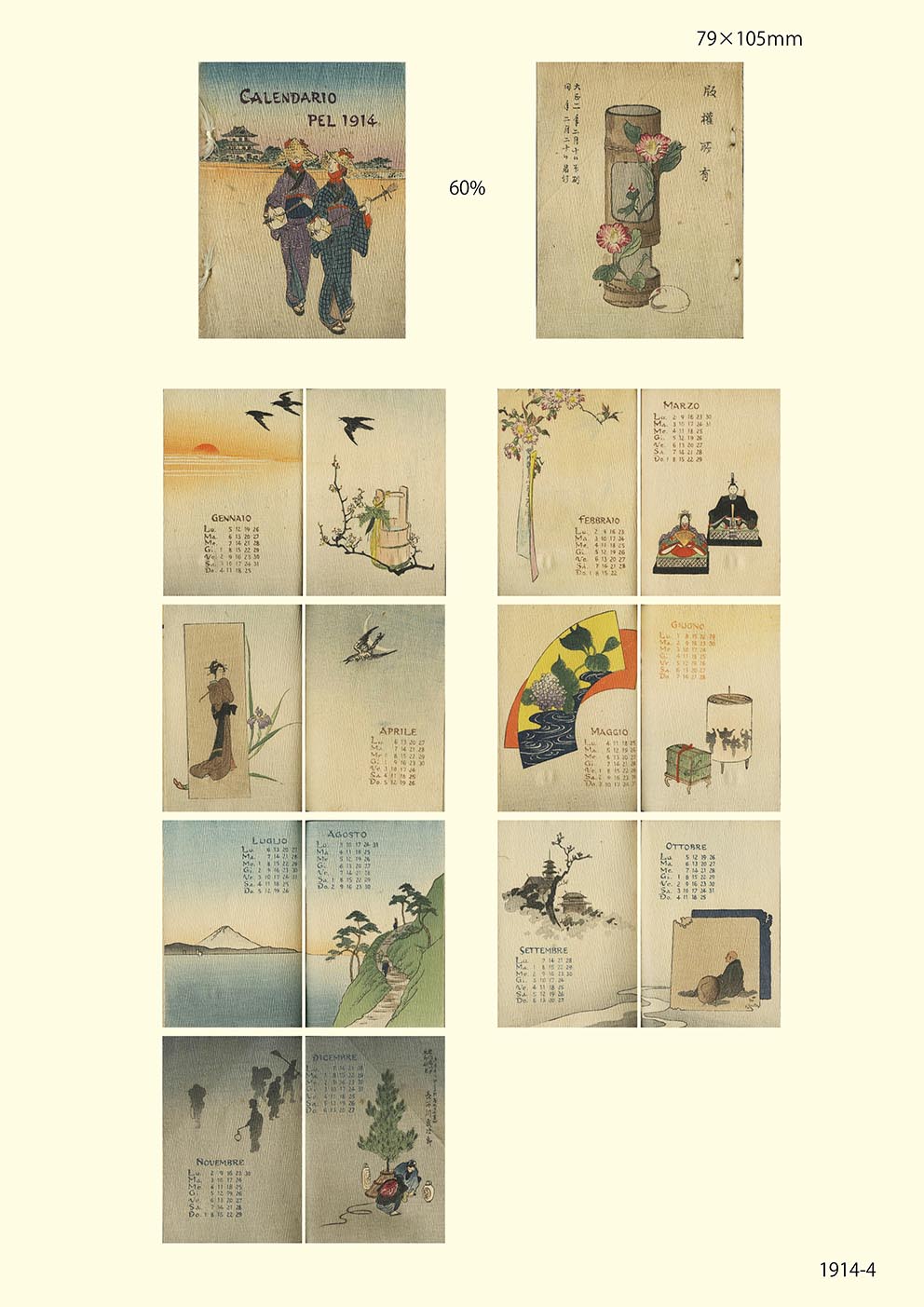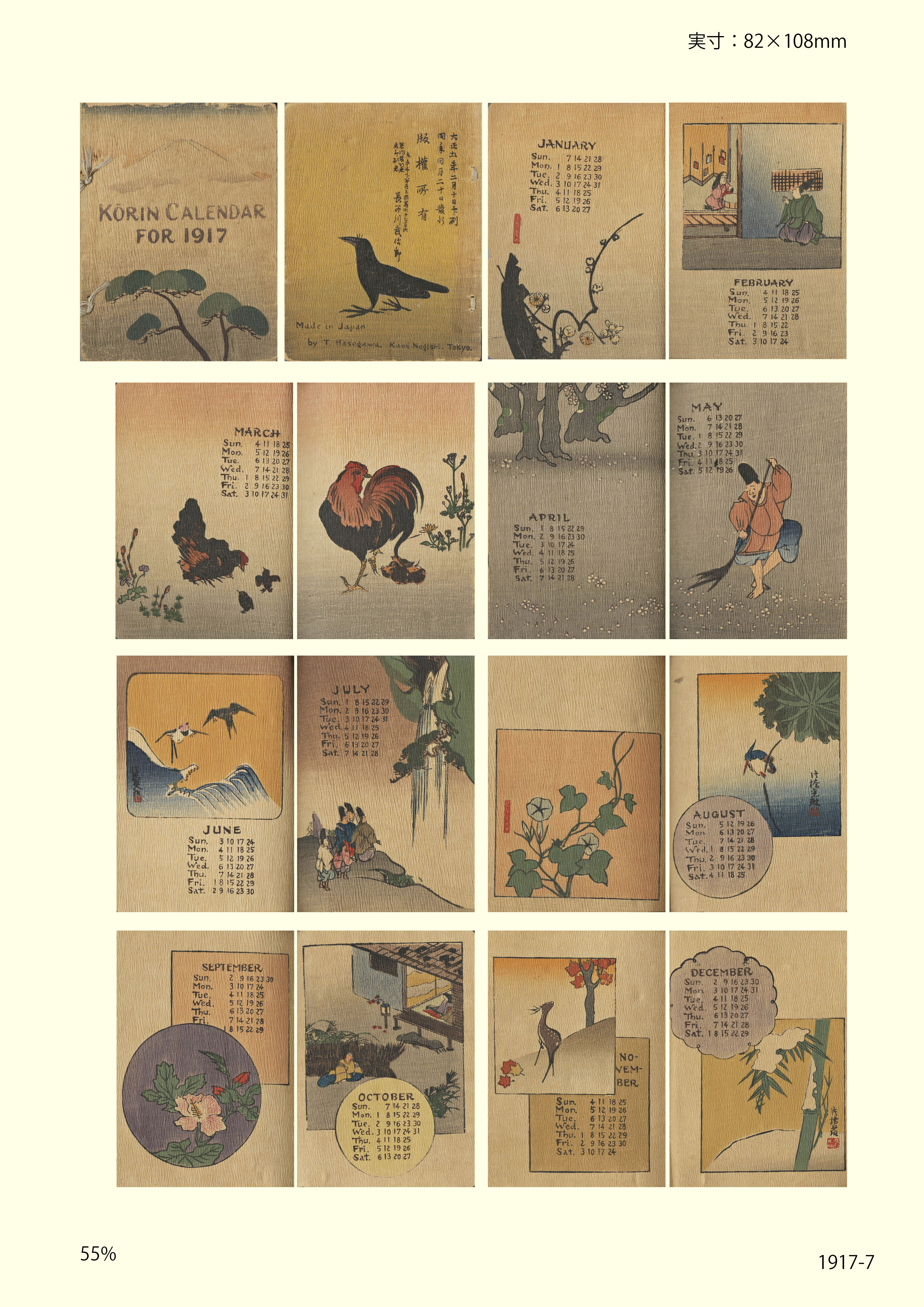 | 67 | 1908-2 | 明治41年 |  |  | Japanese Street Scenes Calendar for 1908 | | *Takejiro Hasegawa | | | | | | | | | | | 製本されておらずちりめん紙だがハードカバー、表紙なし