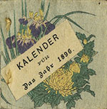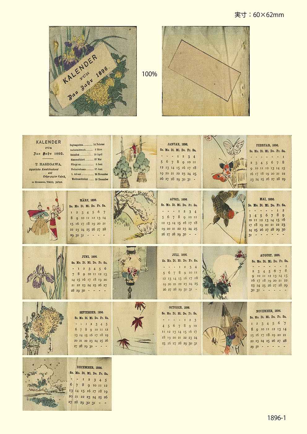 | 2 | 1896-1 | 明治29年 |  |  | KALENDER FUR Das Jahr 1896 | - | T.Hasegawa | 10 Hiyoshicho,Tokyo,Japan | - | - | - | - | - | | | | | ドイツ語 裏表紙は1895年になっている。記述1896 | 60 | 62 | 28 | 1 | 0 | 1 | 20190712 |
