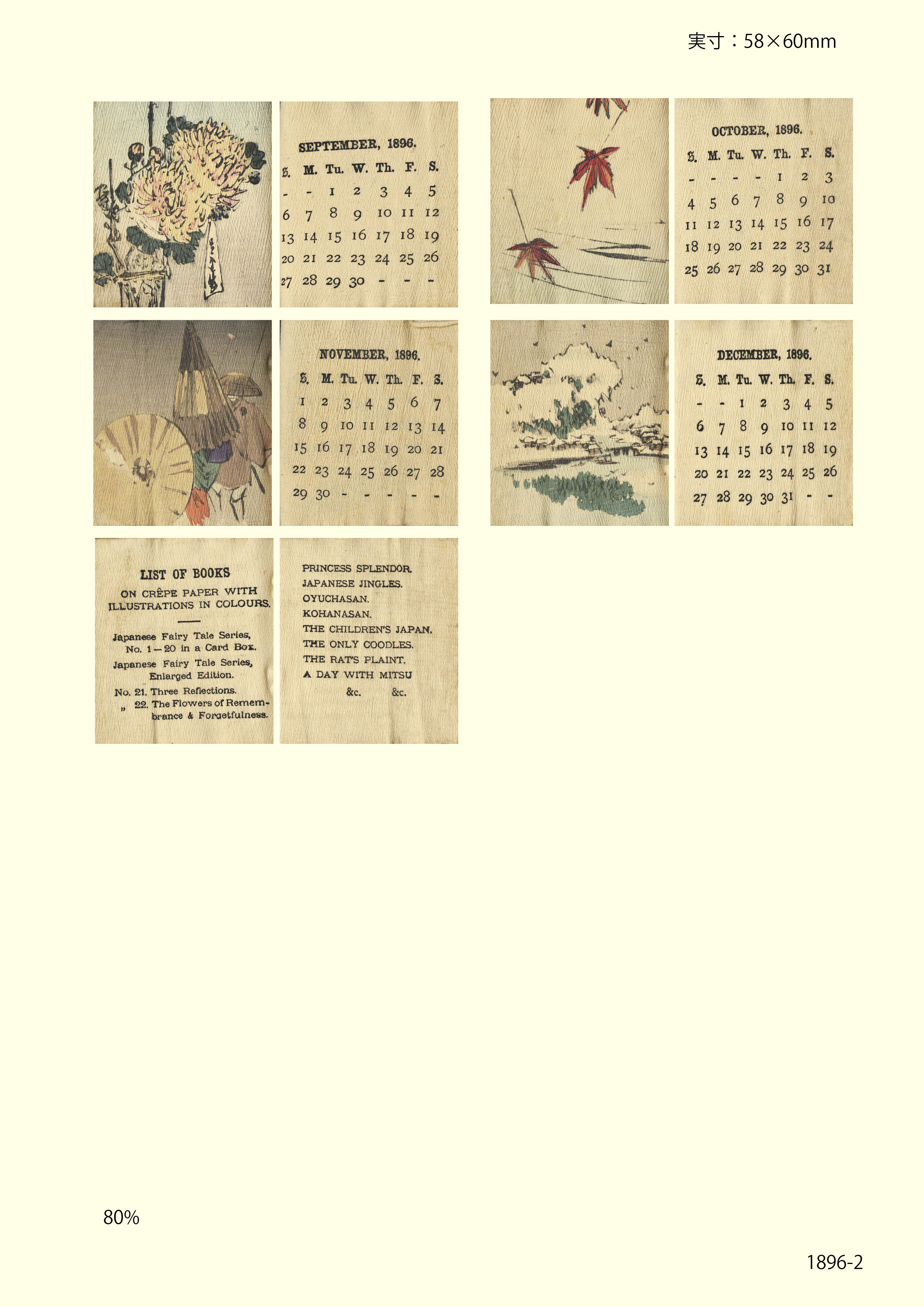 | 3 | 1896-2 | 明治29年 |  |  | CALENDAR 1896. | | | | | | | | | | | | | ALMY BIGELOW & WASHBURN, SALEM, MASS.