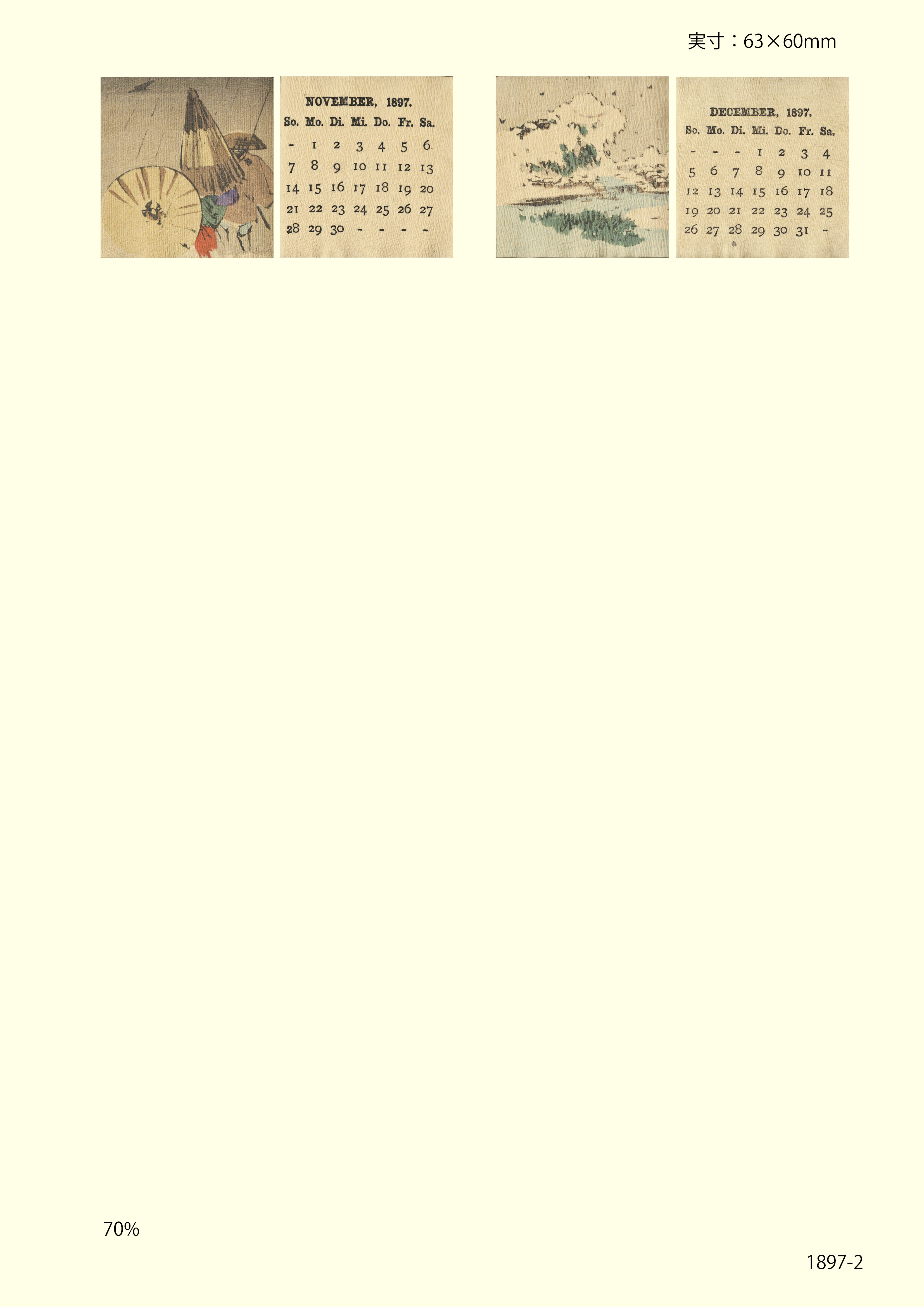 | 5 | 1897-2 | 明治30年 |  |  | KALENDER FUR Das Jahr 1897. | | | | | | | | | | | | | | 63 | 60 | 28 | 0 | 0 | 0 | 20230701 |