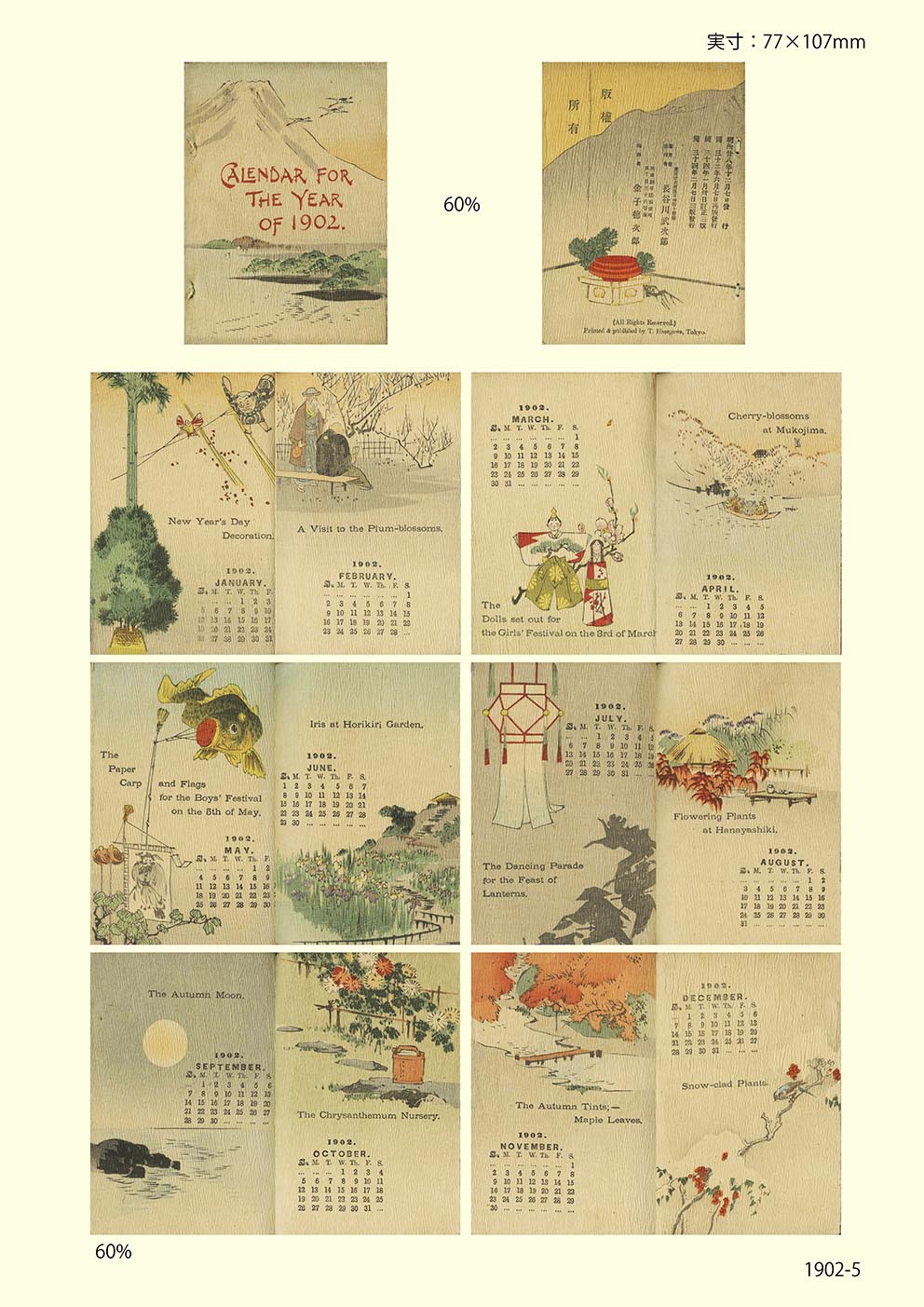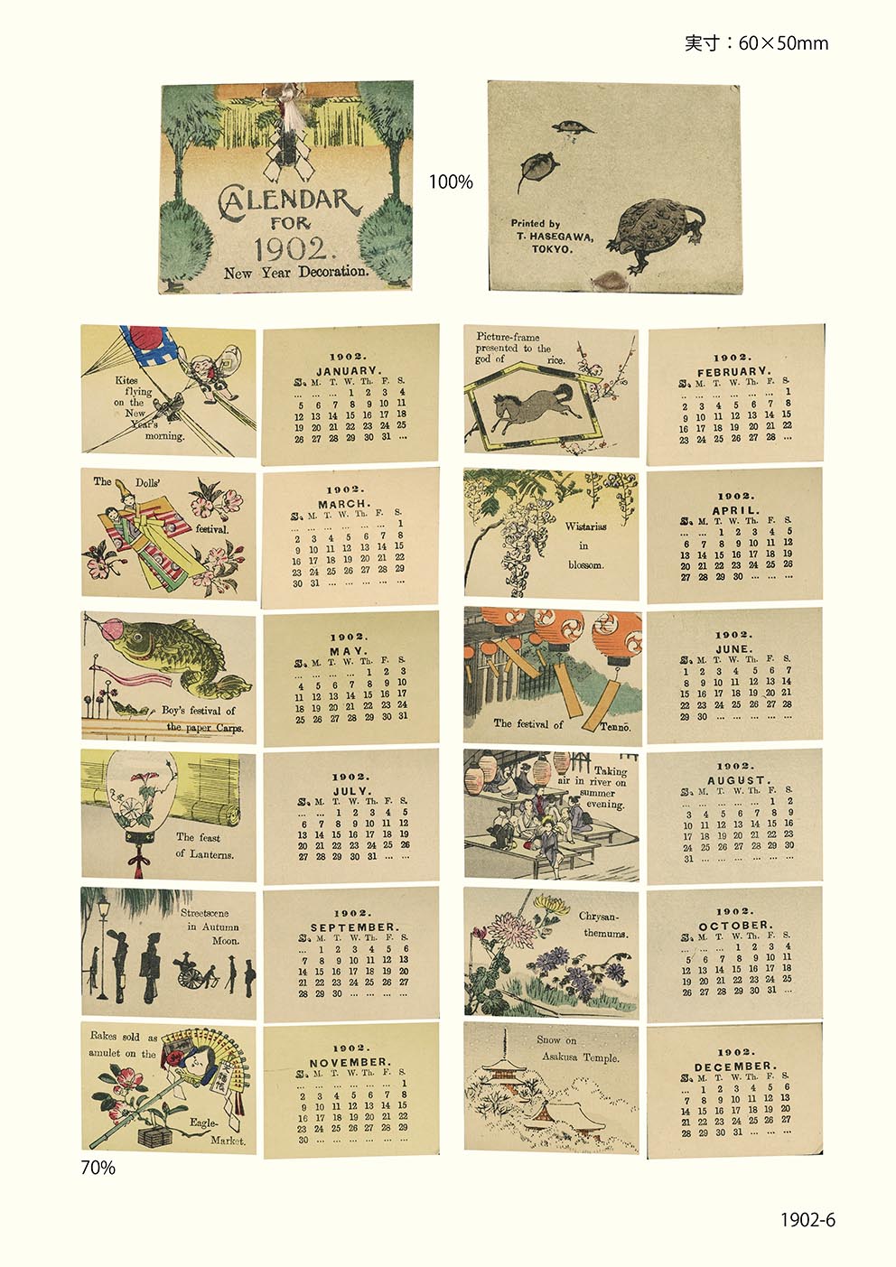 | 23 | 1902-6 | 明治35年 |  |  | CALENDAR FOR 1902 New Year Decoration | | T.Hasegawa Tokyo | | | | | | | | | | | 平紙本、縦綴じ | 60 | 50 | 26 | 1 | 0 | 1 | 20200411 |