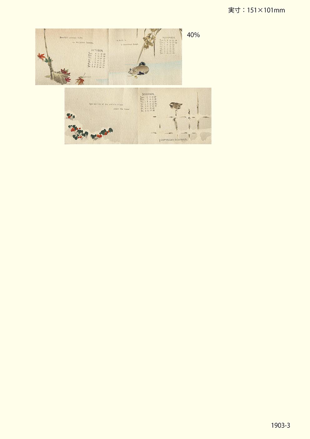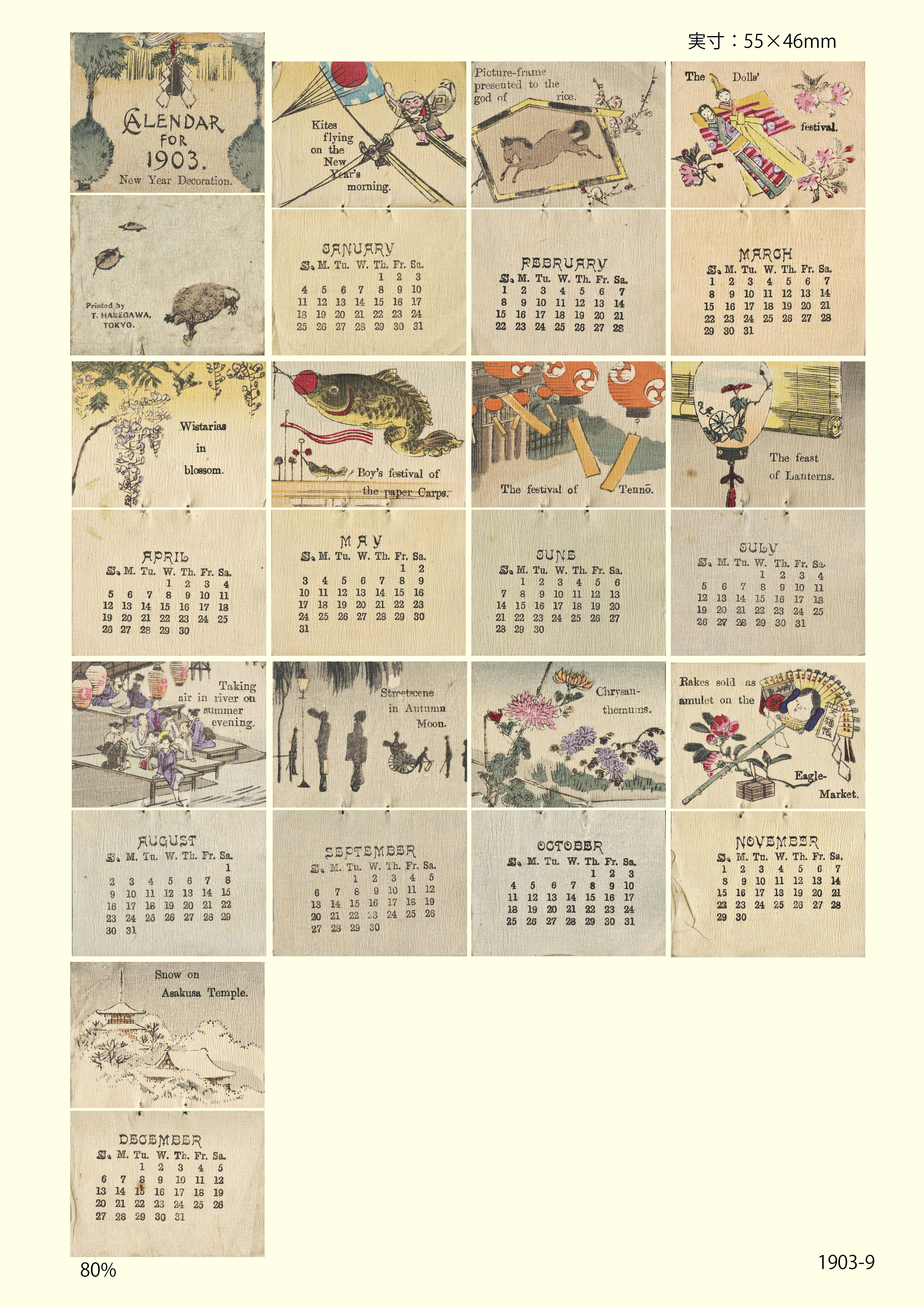 | 33 | 1903-9 | 明治36年 |  |  | CALENDAR FOR 1903 New Year Decoration | T.Hasegawa Tokyo | T.Hasegawa Tokyo | | | | | | | | | | | | 55 | 46 | 26 | 1 | 0 | 1 | 20241124 |