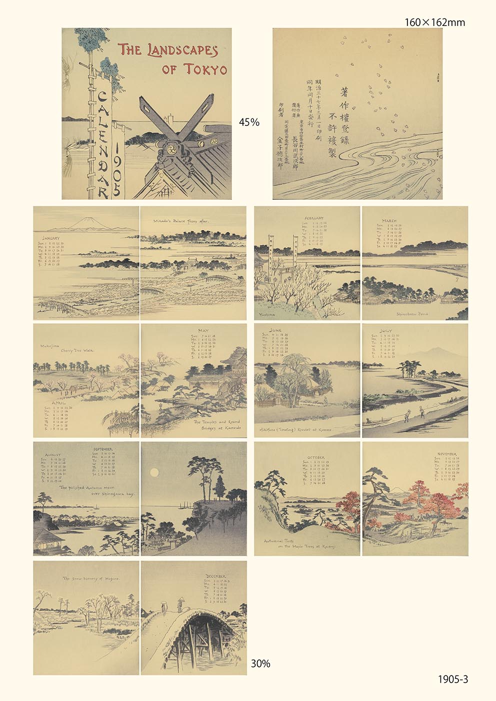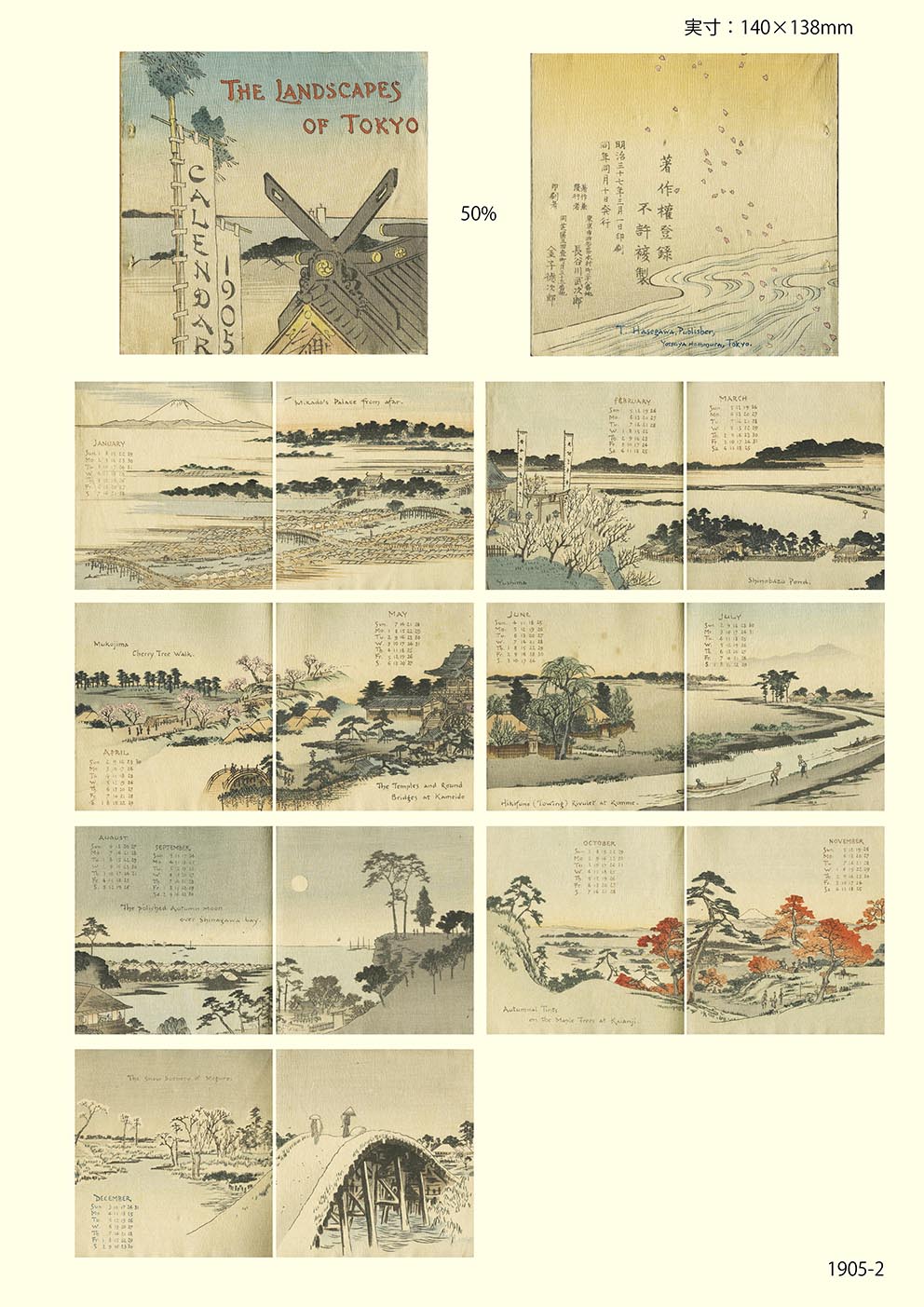 | 43 | 1905-3 | 明治38年 |  |  | THE LANDSCAPES OF TOKYO CALENDAR 1905(平紙) | 長谷川武次郎 | Takejiro Hasegawa | 東京市四谷区本村町 | 金子徳次郎 | Tokujiro Kaneko | 東京市芝区三田1丁目33番地 | | 明治37年3月1日 | 1904/3/1 | 明治37年3月10日 | | | 平紙本 | 160 | 162 | 16 | 1 | 0 | 1 | 20200411 |