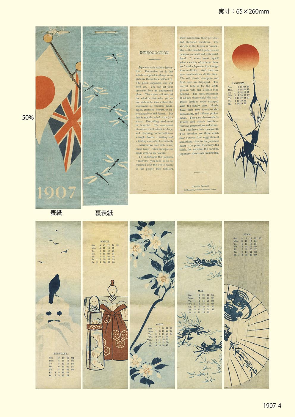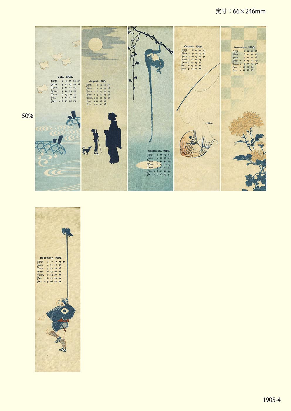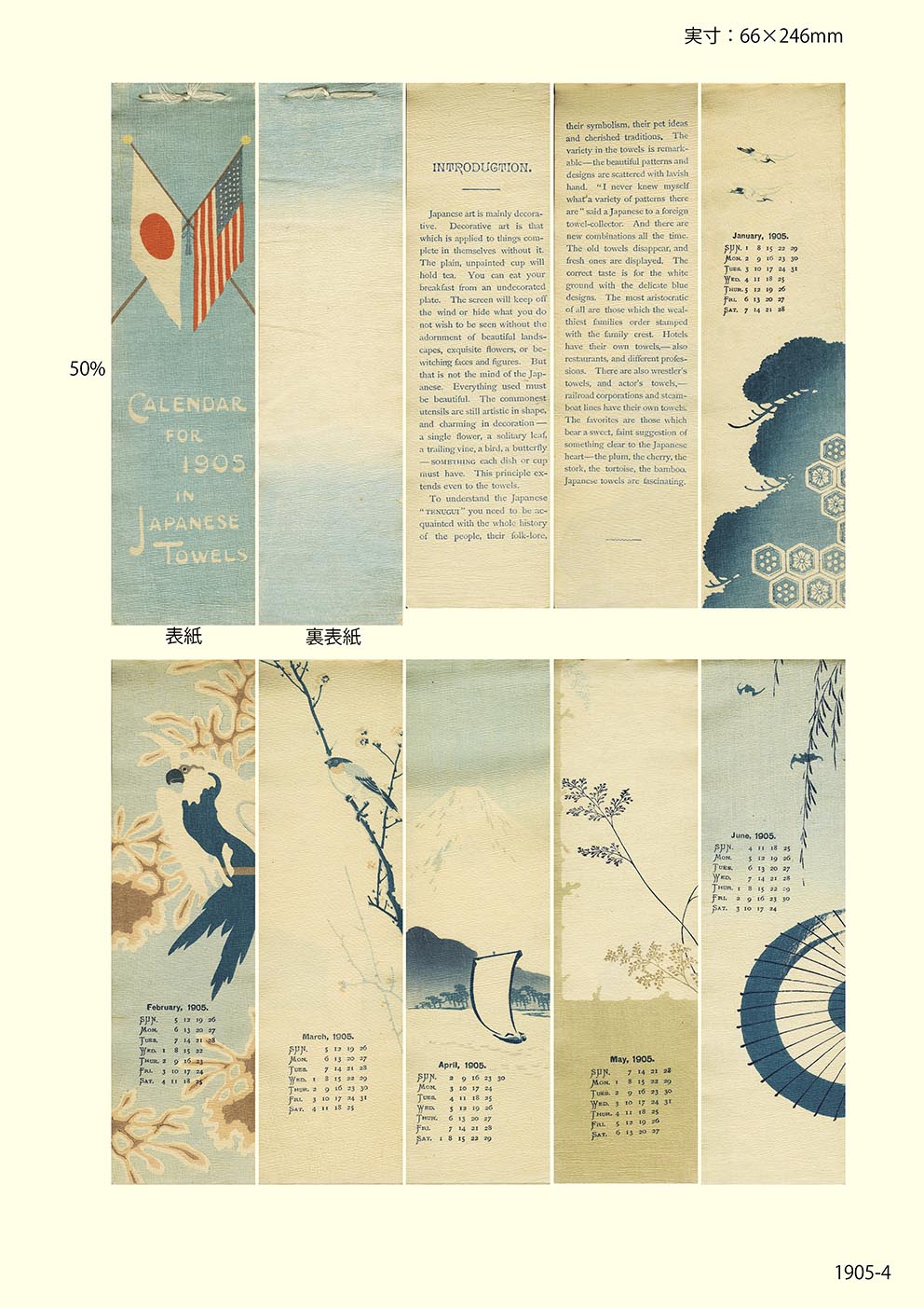 | 44 | 1905-4 | 明治38年 |  |  | CALENDAR FOR 1905 IN JAPANESE TOWELS | | *Takejiro Hasegawa | | | | | | | | | | | 短冊型 | 66 | 246 | 16 | 1 | 0 | 1 | 20191117 |