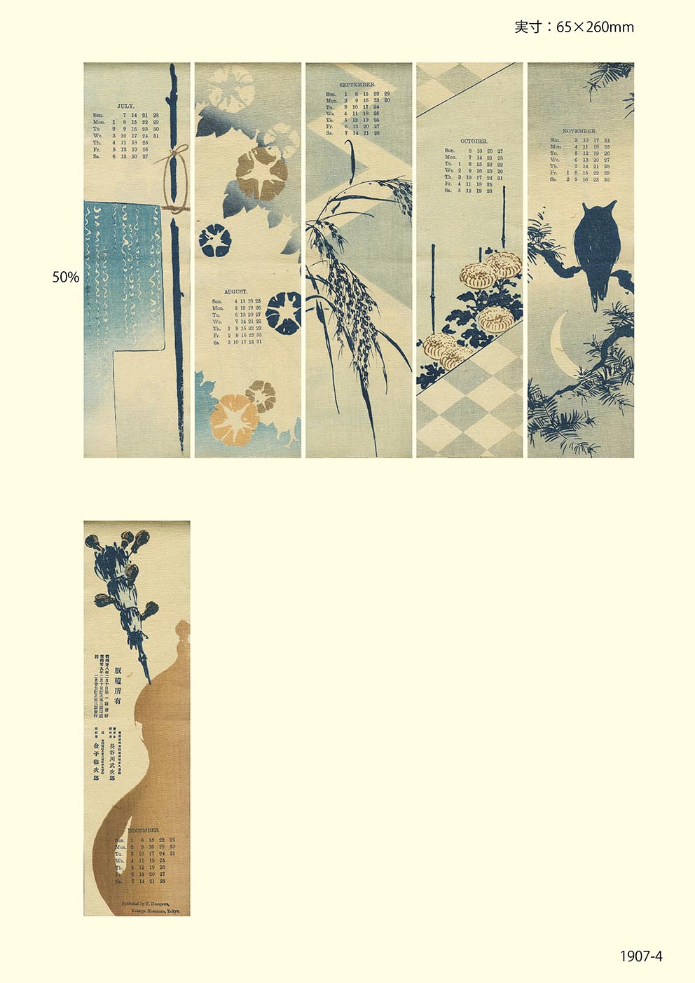 | 64 | 1907-8 | 明治40年 |  |  | 1907 | Published by T. Hasagawa | Takejiro Hasegawa | Yotsuya Hommura,Tokyo | | | | | | | | | | 簾状カレンダー | 165 | 404 | 12 | 1 | 0 | 1 | 20230218 |
