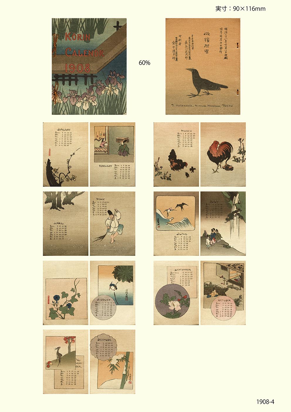 | 69 | 1908-4 | 明治41年 |  |  | KORIN CALENDAR 1908(平紙) | 長谷川武次郎 | Takejiro Hasegawa | 東京市四谷区本村町38 | 金子徳次郎 | Tokujiro Kaneko | 東京市麹町区土手三番町27 | ー | 明治38年12月1日 | 1905/12/1 | 明治39年12月10日 | | | 平紙本 | 90 | 116 | 16 | 1 | 0 | 1 | 20191130 |