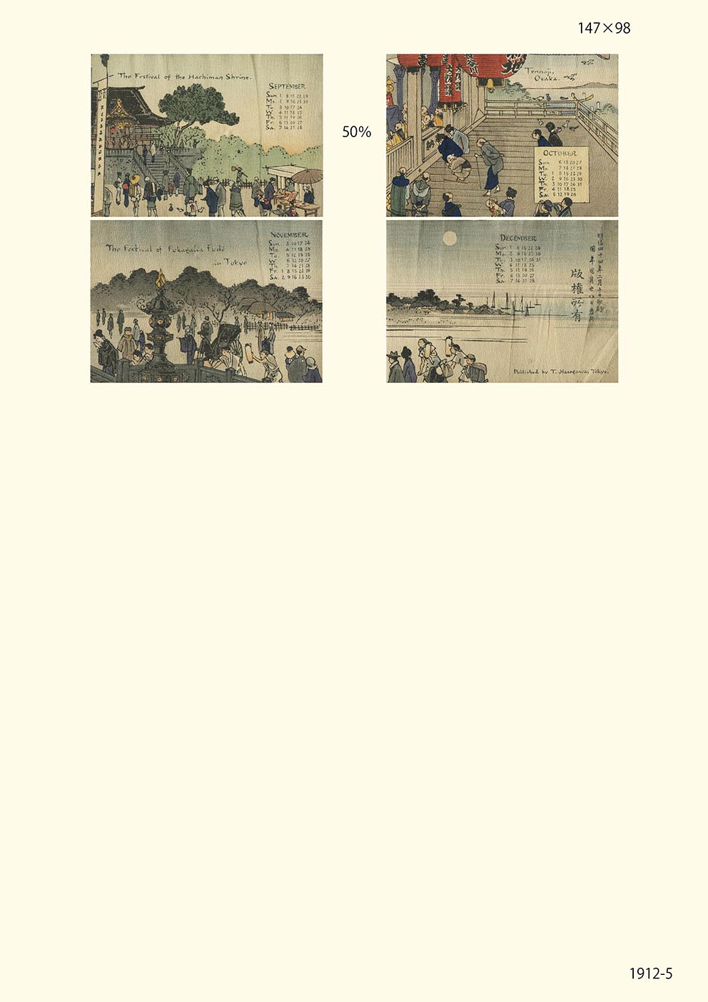 | 85 | 1910-02 | 明治43年 |  |  | Street Scenes of Old Japan Calendar 1910 | - | T.Hasegawa | Publisher,Tokyo | | | | | | | | | | | 139 | 193 | 26 | 1 | 0 | 1 | 20191130 |