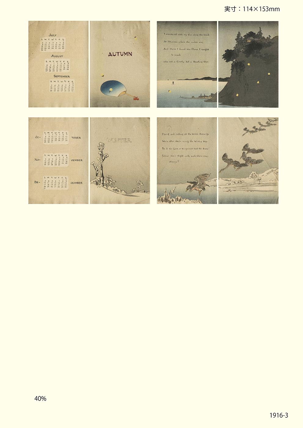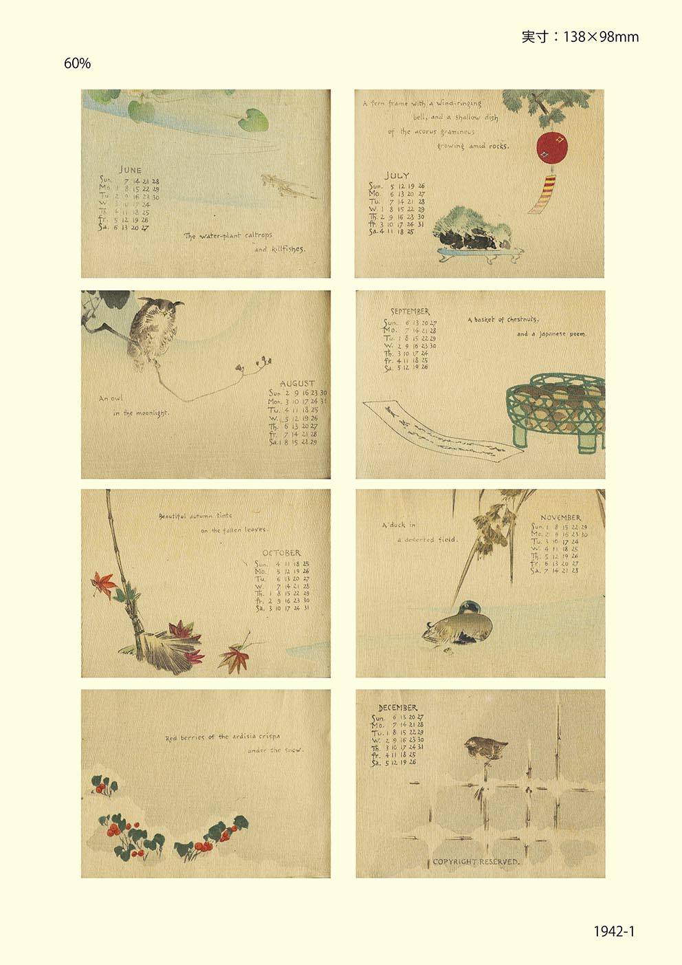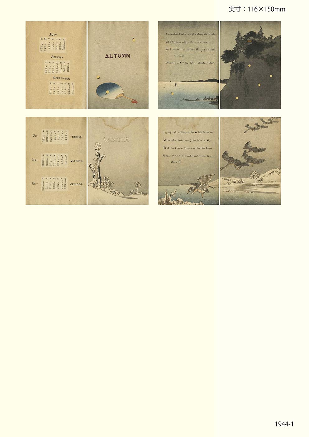 | 261 | 1941-2 | 昭和16年 |  |  | With Best Wishes 1941 | | Published by Nishinomiya, Tokyo | | | | | | | | | | | 表紙裏表紙と絵はちりめん、カレンダーが平紙 | 102 | 137 | 8 | 0 | 1 | 1 | 20200527 |