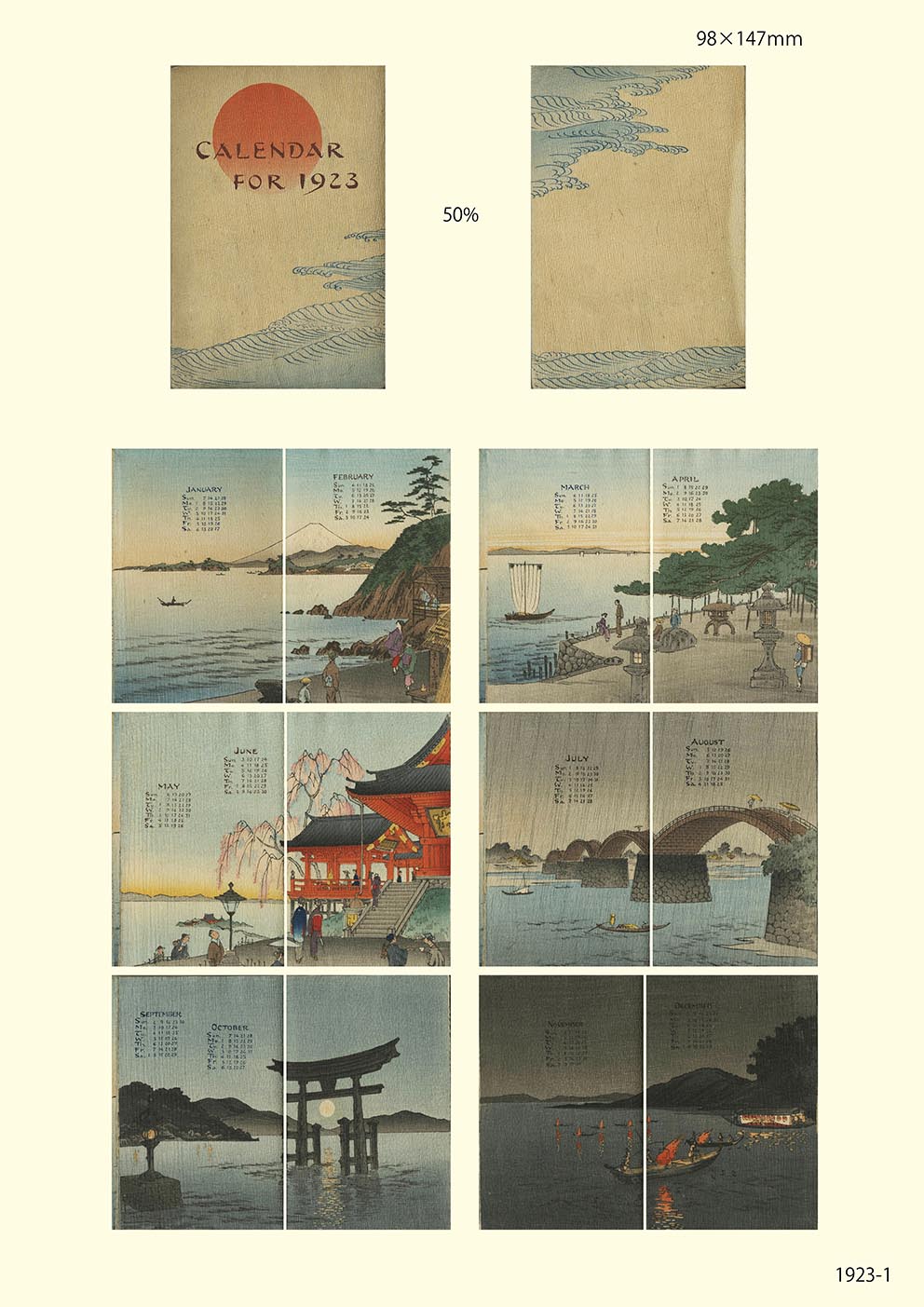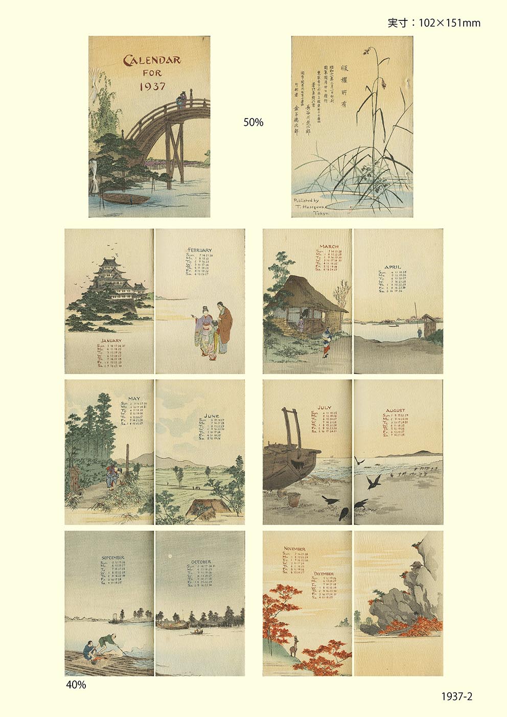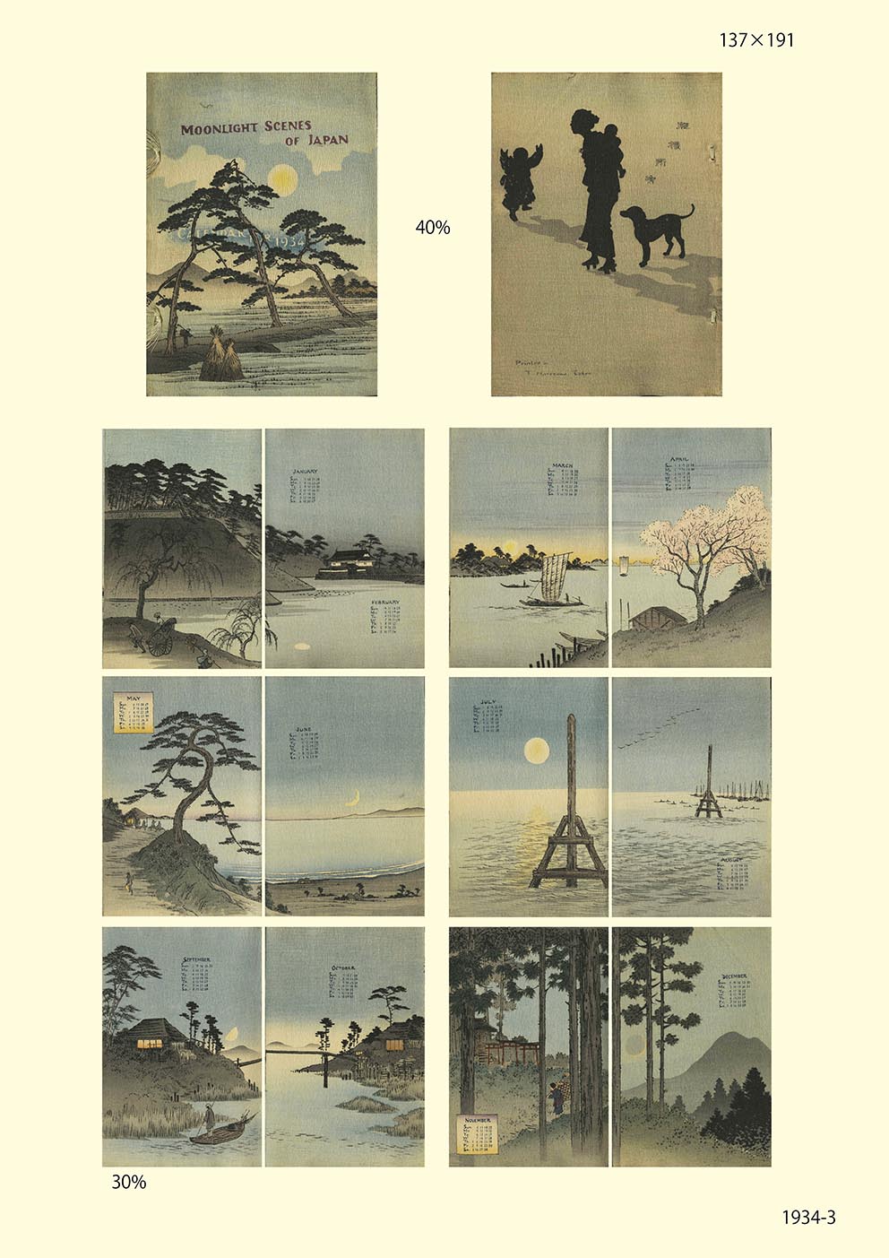 | 238 | 1934-3 | 昭和9年 |  |  | MOONLIGHT SCENES OF JAPAN CALENDAR FOR 1934 | | | | | T.Hasegawa,Tokyo | | | | | | | | | 137 | 192 | 14 | 1 | 0 | 1 | 20200527 |