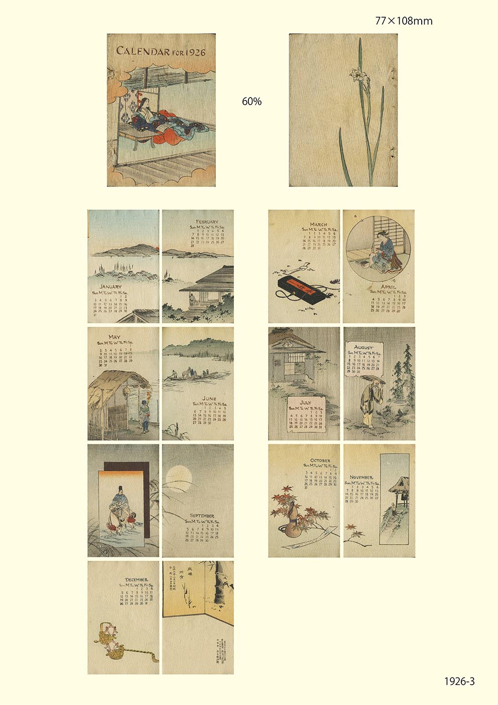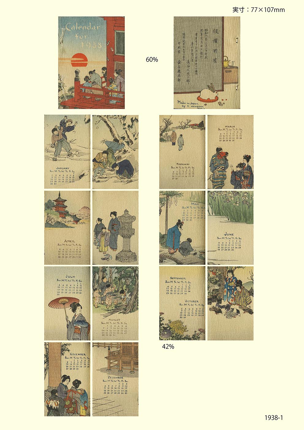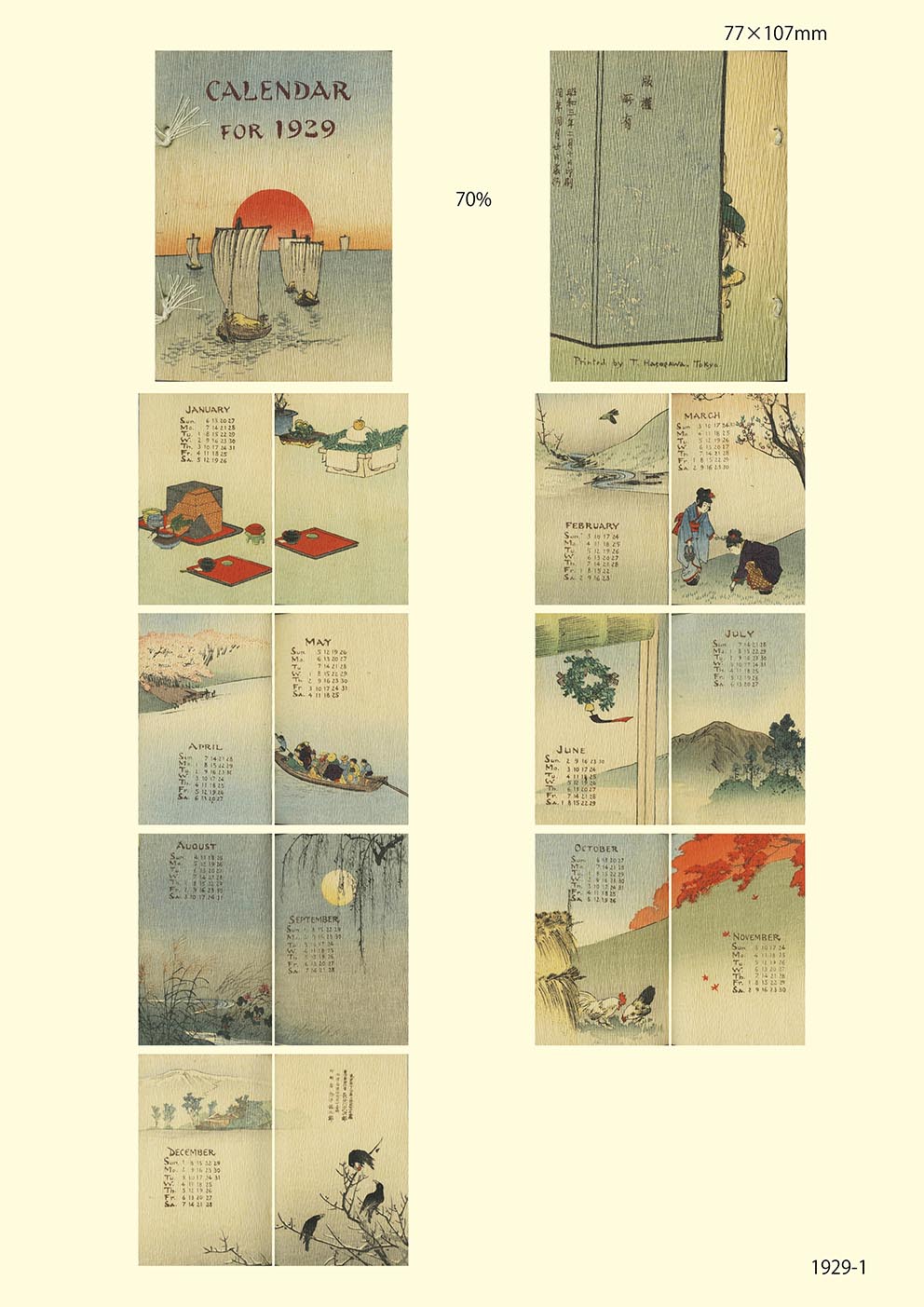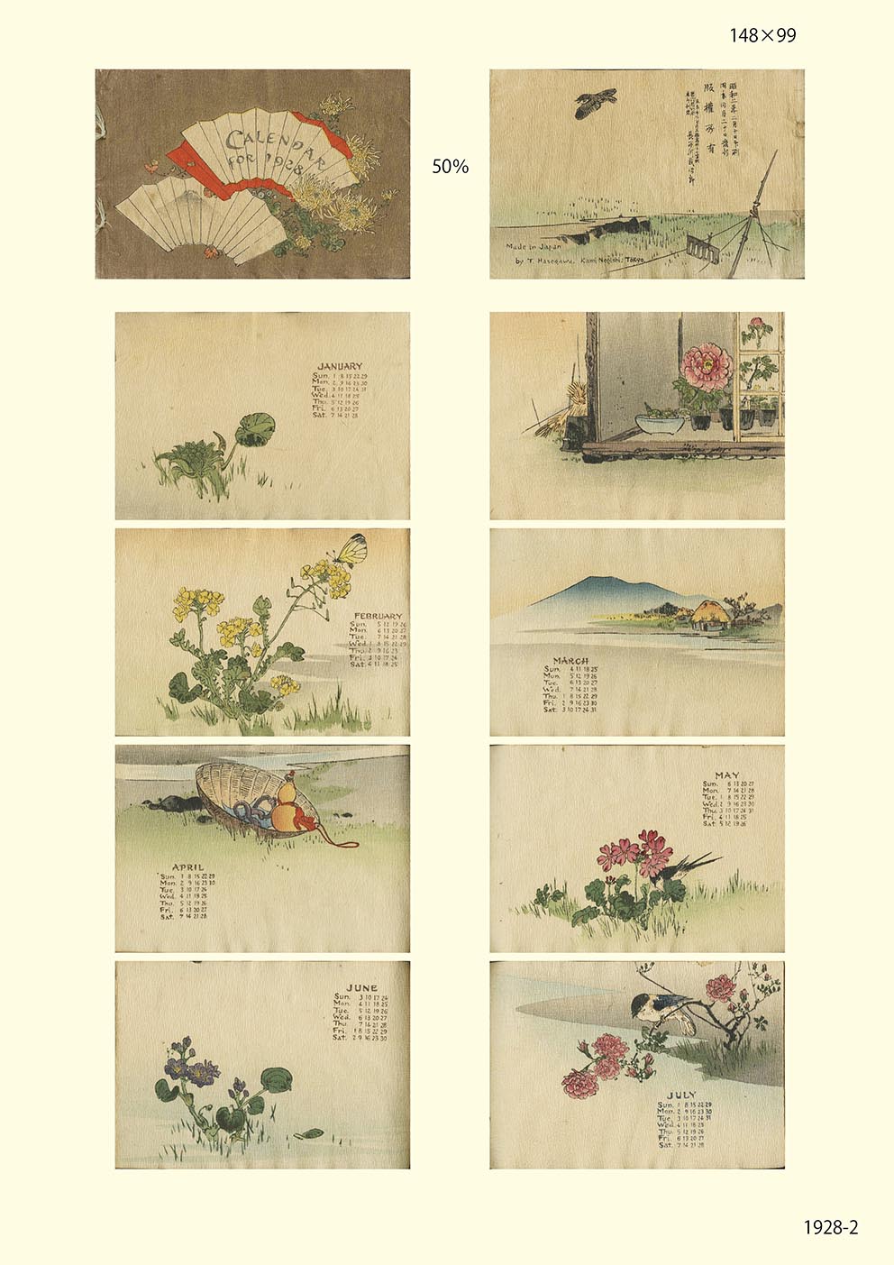 | 228 | 1931-3 | 昭和6年 |  |  | CALENDAR FOR 1931 | | Takejiro Hasegawa? | | | | | | | | | | | 表紙裏表紙のみちりめん | 90 | 144 | 8 | 1 | 0 | 1 | 20200512 |