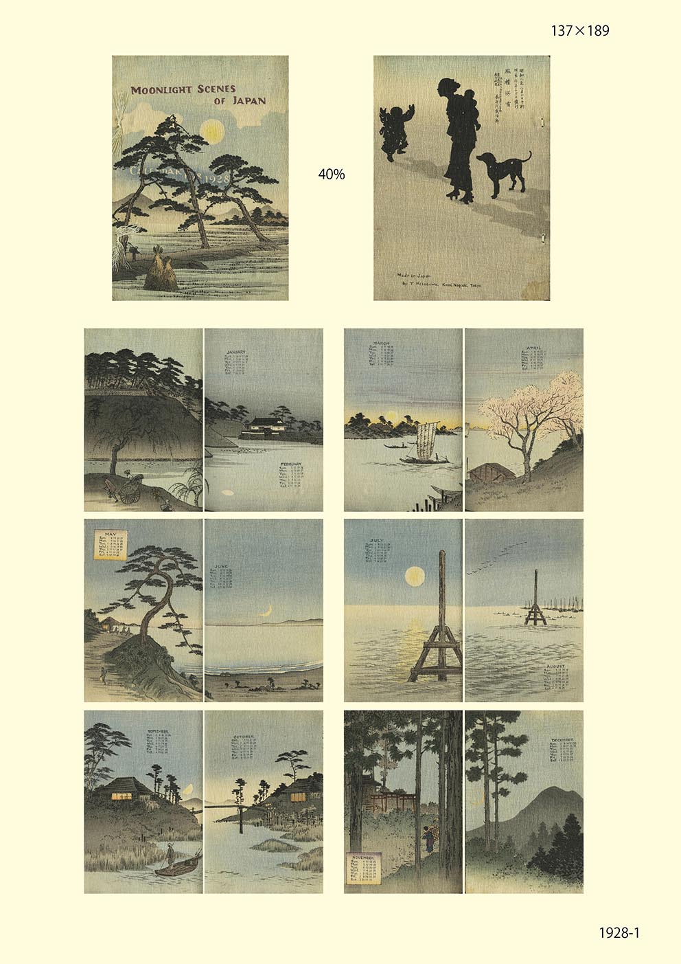 | 217 | 1928-1 | 昭和3年 |  |  | MOON LIGHT SCENES of JAPAN CALENDAR FOR 1928 | 長谷川武次郎 | Takejiro Hasegawa | 東京市下谷区上根岸町17 | | | | | 昭和2年2月10日 | 1927/2/10 | 昭和2年2月20日 | | | | 137 | 189 | 14 | 1 | 0 | 1 | 20200106 |
