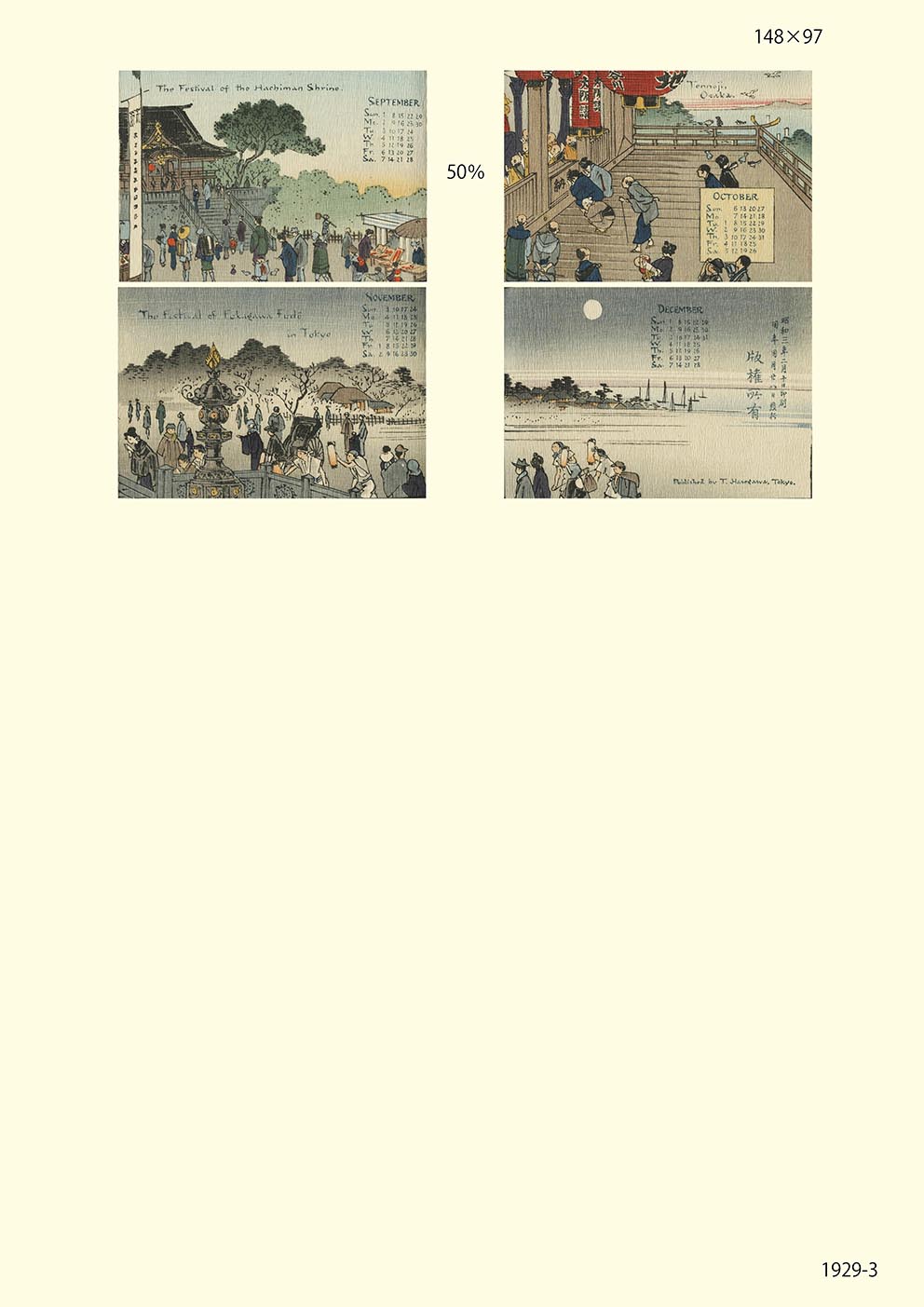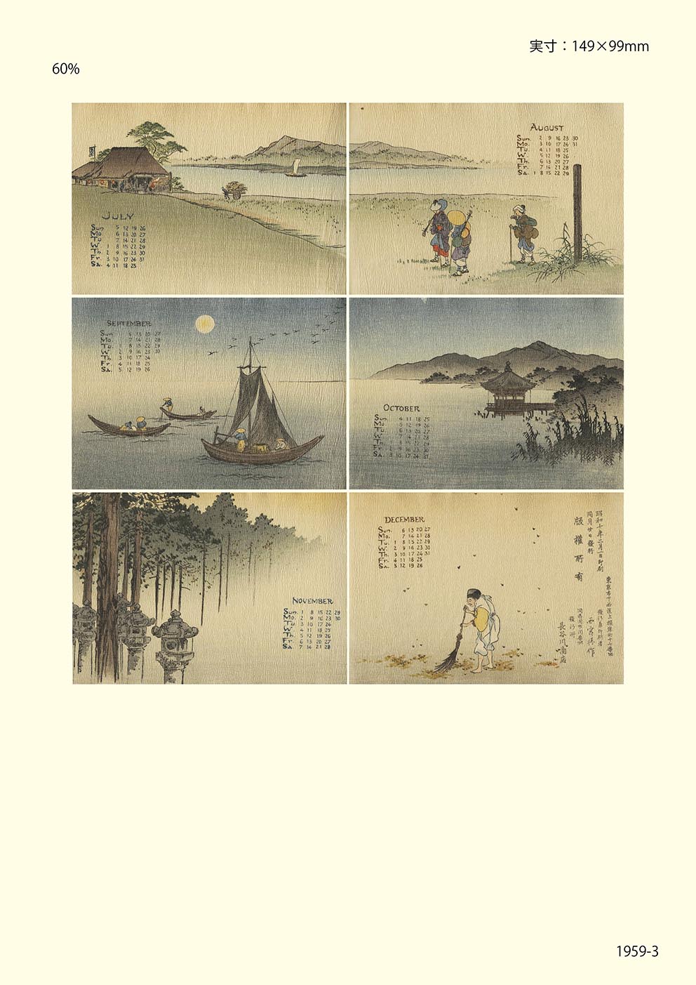 | 284 | 1959-3 | 昭和34年 |  |  | Street Scenes of Japan Calendar for 1959 | 長谷川武次郎 | Takejiro Hasegawa | 東京市下谷区上根岸町17 | 西宮興作 | Nishinomiya Kosaku | 東京市下谷区上根岸町17 | | 昭和10年2月1日 | 1935/2/1 | 昭和10年2月20日 | | | | 149 | 99 | 14 | 1 | 1 | 2 | 20200627 |