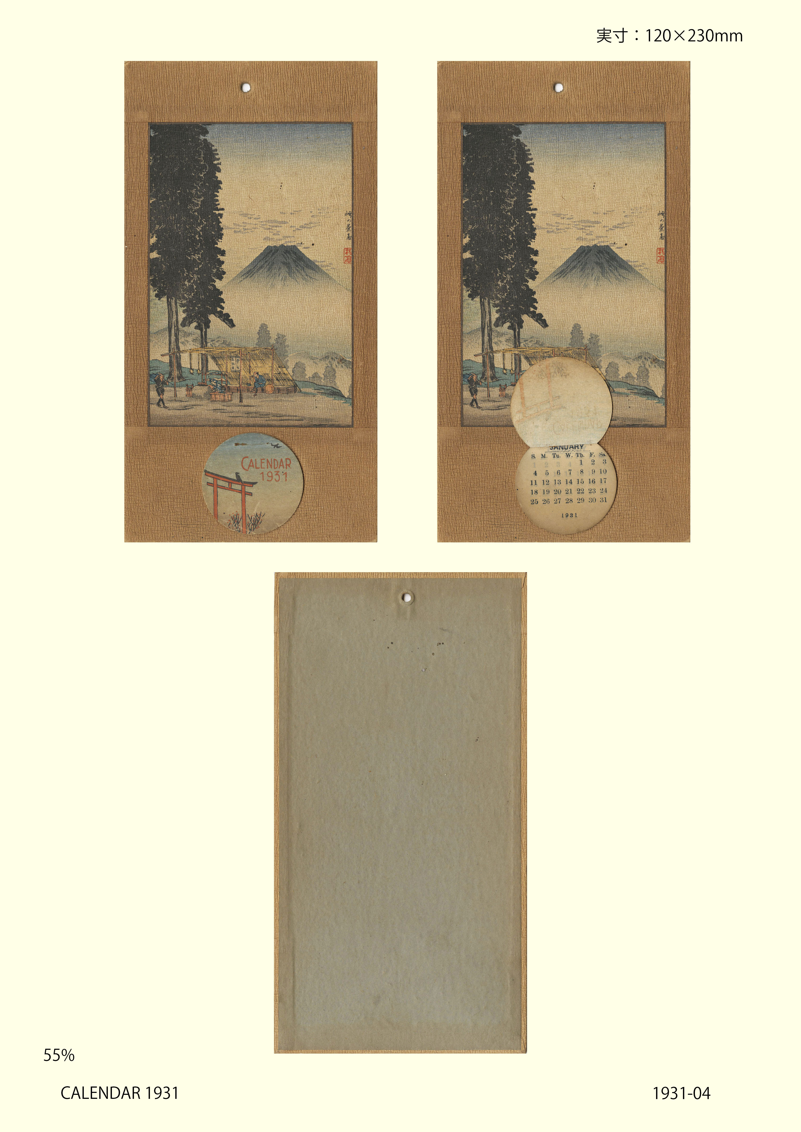 | 231 | 1932-2 | 昭和7年 |  |  | CALENDAR FOR 1932 | | | | | | | 広重 | | | | | | 平紙壁掛け月めくり