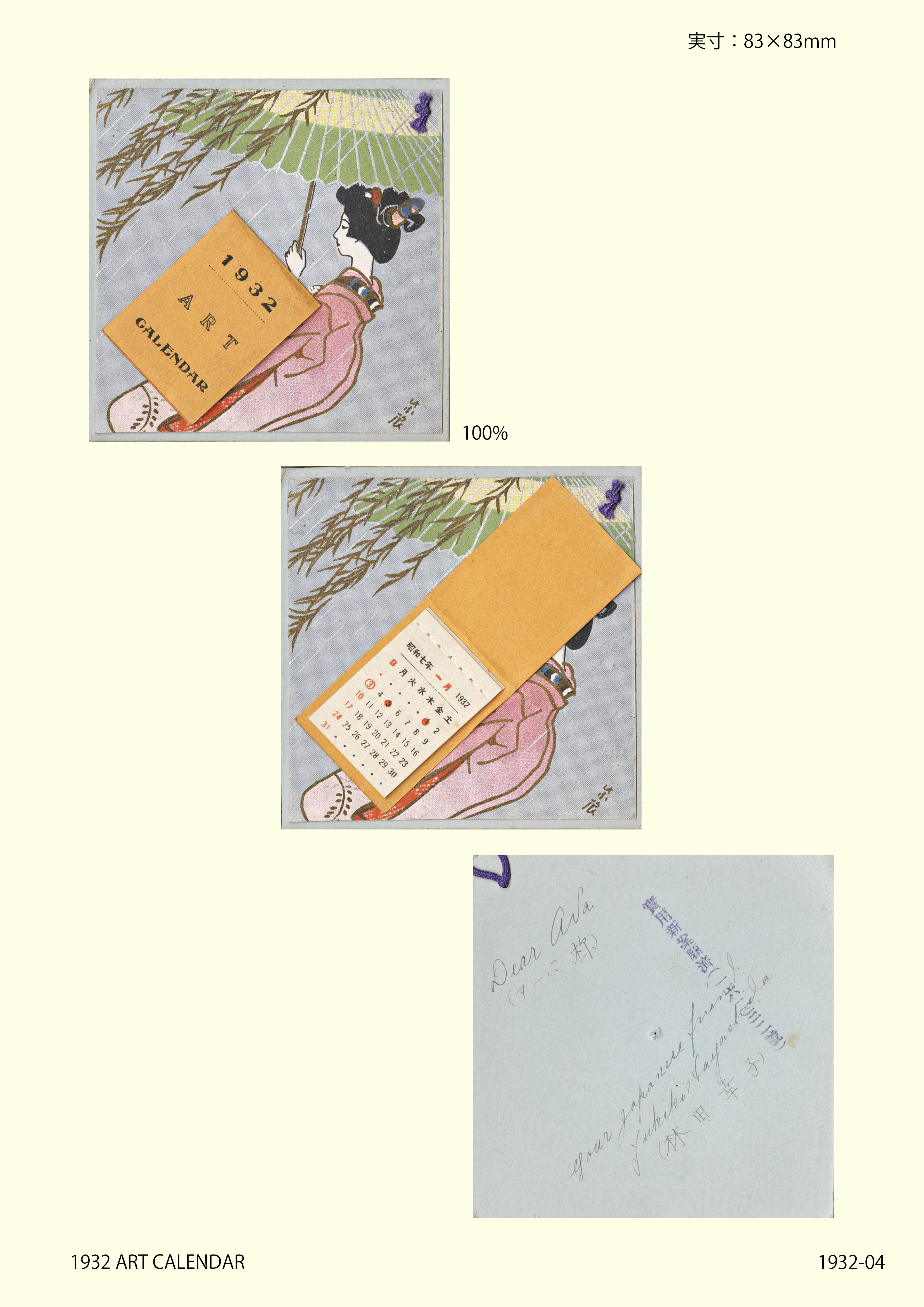 | 233 | 1932-4 | 昭和7年 |  |  | 1932 ART CALENDAR | | | | | | | | | | | | | 月めくり実用新案願済16232号 | 83 | 83 | 12 | 0 | 0 | 0 | 20240111 |