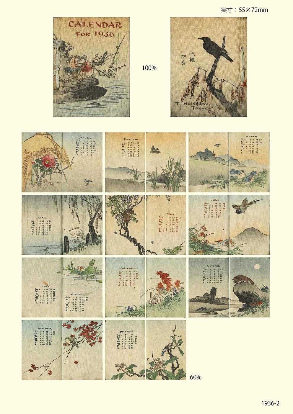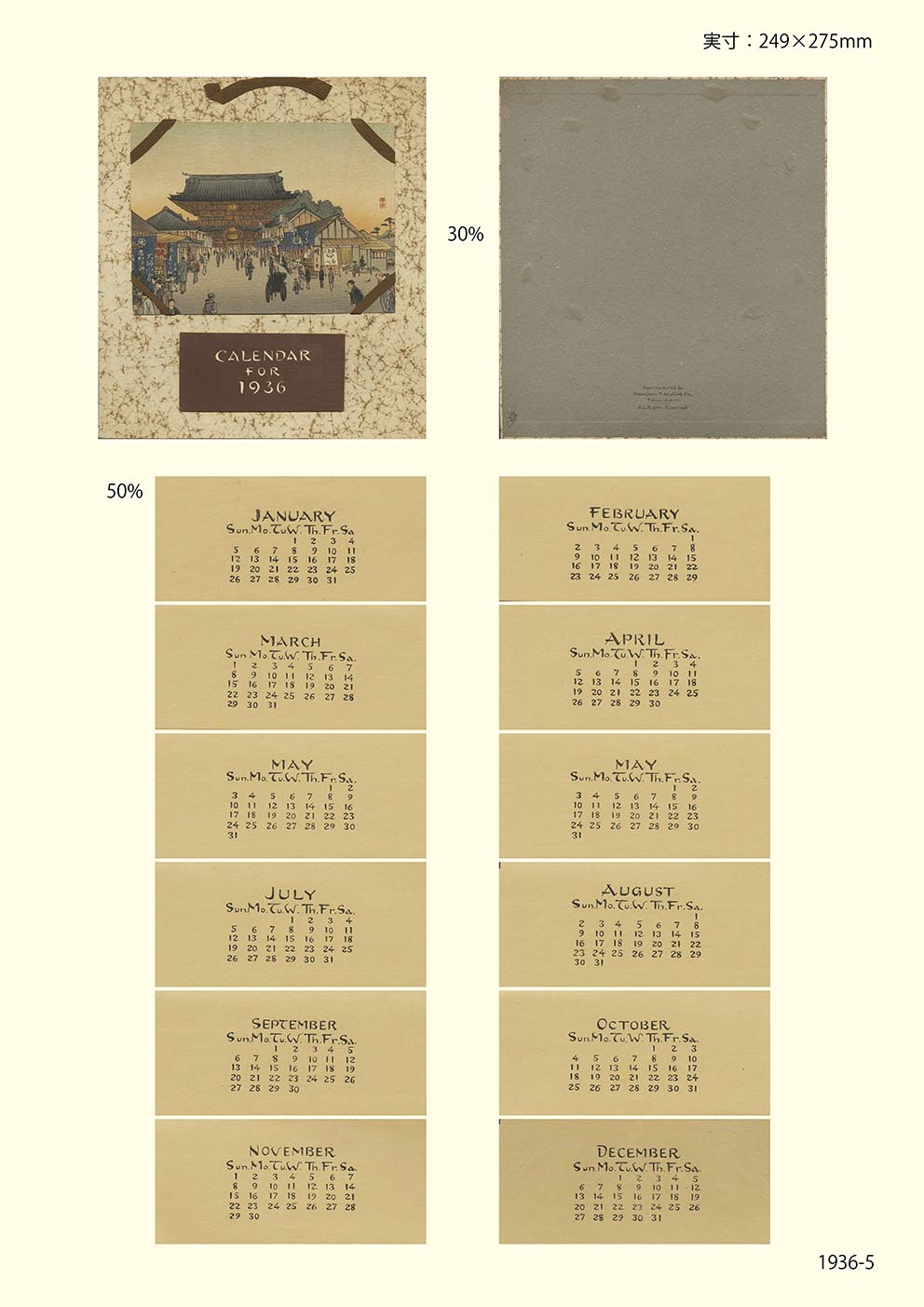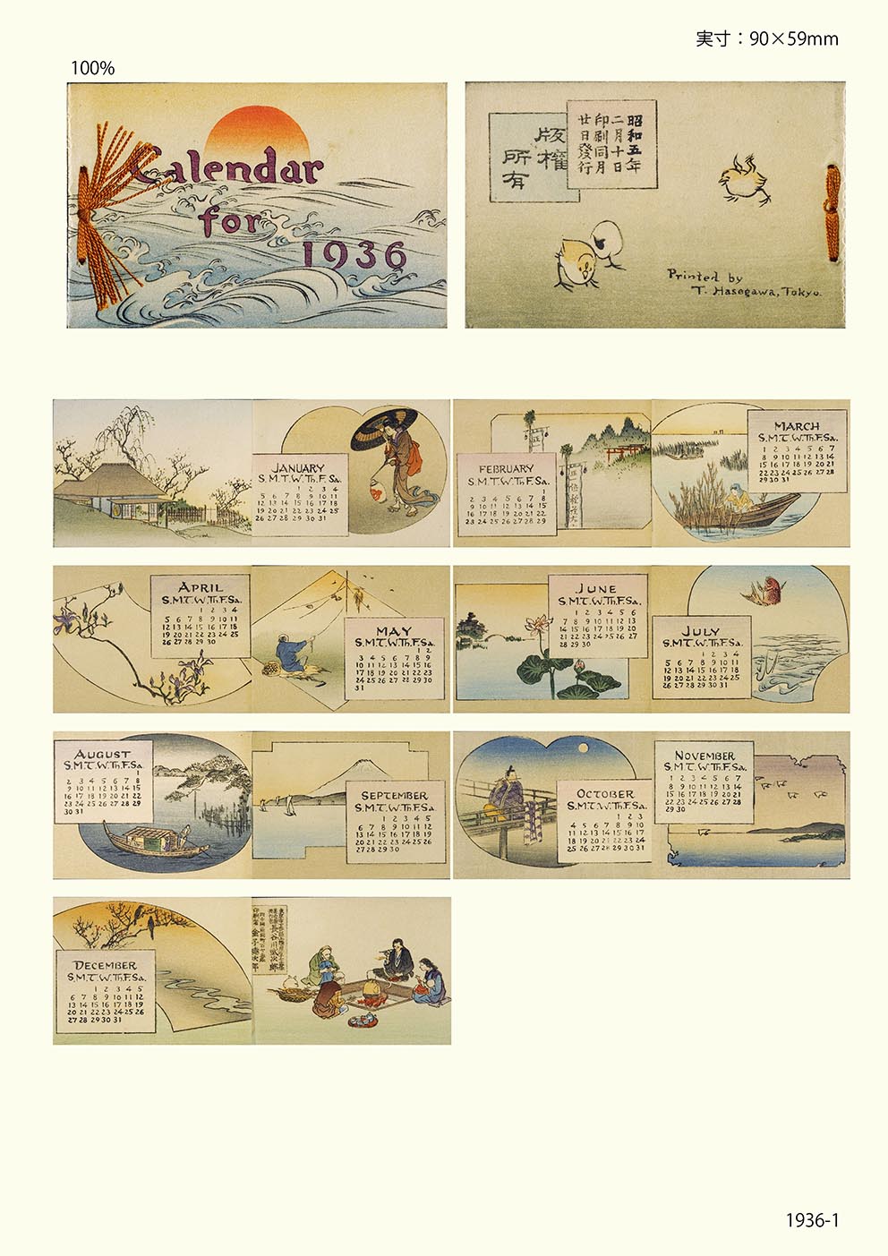 | 246 | 1936-5 | 昭和11年 |  |  | CALENDAR FOR 1936 | | Hasegawa publishing Co.,Tokyo, Japan | | | | | 芳宗 | | | | | | 壁掛けカレンダー、月めくり、平紙 | 249 | 275 | 14 | 1 | 0 | 1 | 20200627 |
