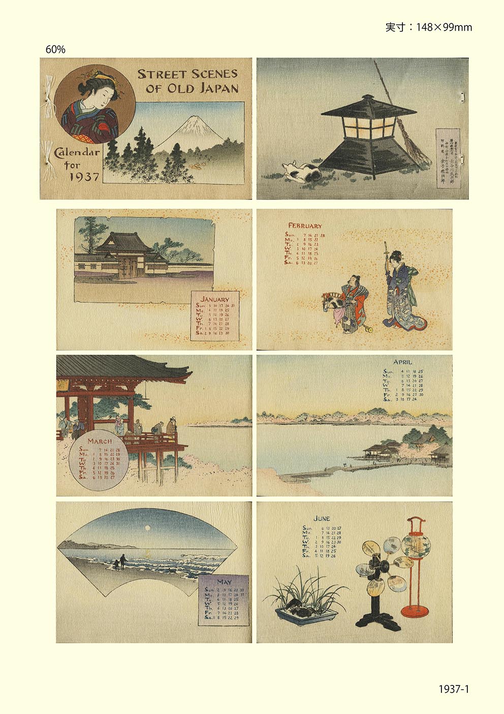 | 247 | 1937-1 | 昭和12年 |  |  | STREET SCENES OF OLD JAPAN Calendar for 1937 | 長谷川武次郎 | Takejiro Hasegawa | 東京市下谷区上根岸町17 | 金子徳次郎 | Tokujiro Kaneko | 東京市下谷区根岸町104 | | 昭和11年2月1日 | 1936/2/1 | 昭和11年2月20日 | | | | 148 | 99 | 14 | 1 | 0 | 1 | 20200201 |
