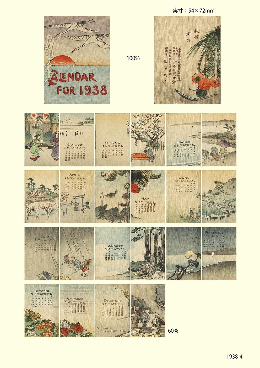 | 254 | 1938-2 | 昭和13年 |  |  | Monthly Scenes Calendar for 1938 | 長谷川武次郎 | Takejiro Hasegawa | 東京市下谷区上根岸町17 | 長谷川武次郎 | Takejiro Hasegawa | 東京市下谷区上根岸町17 | | 大正9年2月1日 | 1920/2/1 | 大正9年2月10日 | | 斜め綴じ | | 141 | 136 | 12 | 2 | 0 | 2 | 20200201 |