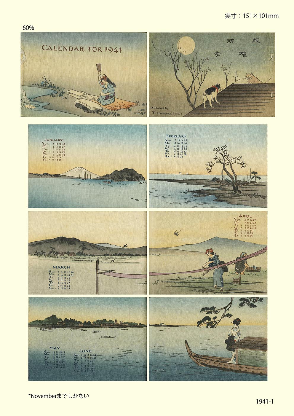 | 260 | 1941-1 | 昭和16年 |  |  | CALENDAR FOR 1941 | | T.Hasegawa Tokyo | | | | | | | | | | | Decemberが無い | 151 | 101 | 14 | 1 | 0 | 1 | 20200201 |