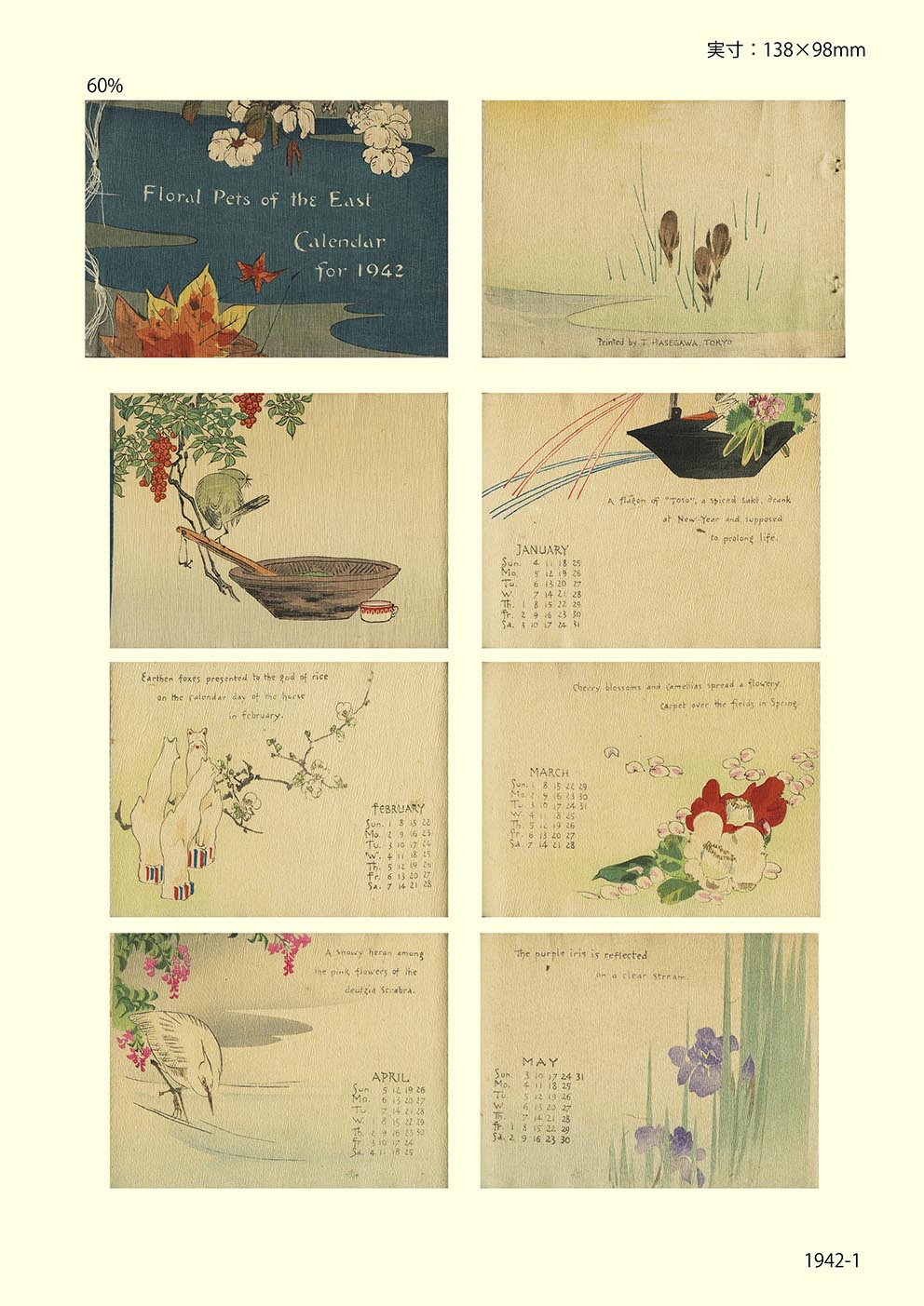 | 263 | 1942-1 | 昭和17年 |  |  | Floral Pets of the East. Calendar for 1942 | | | | | T.HASEGAWA,TOKYO | | | | | | | | | 138 | 98 | 16 | 1 | 0 | 1 | 20200201 |