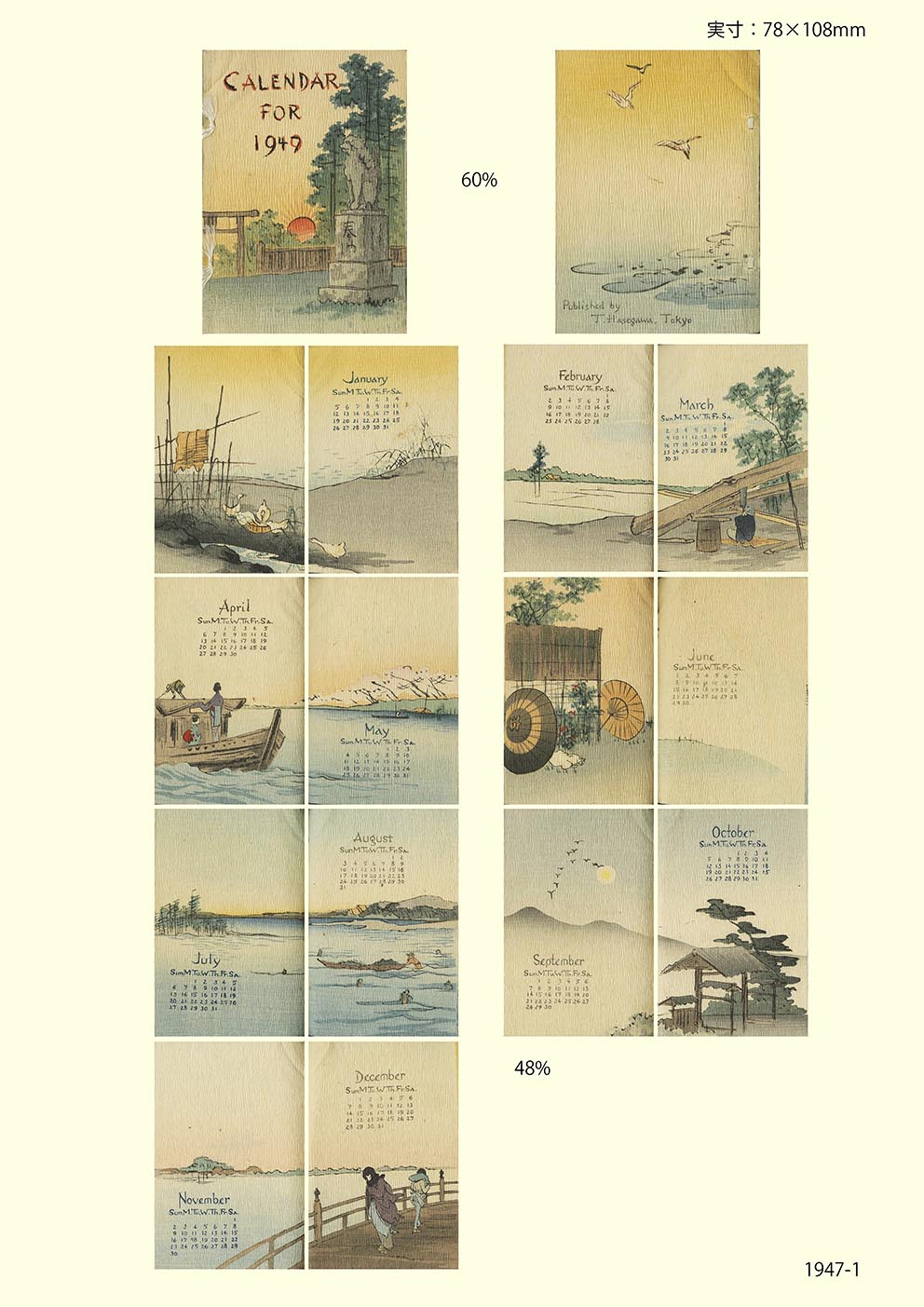 | 265 | 1947-1 | 昭和22年 |  |  | CALENDAR FOR 1947 | | T.Hasegawa,Tokyo | | | | | | | | | | | | 78 | 108 | 16 | 1 | 0 | 1 | 20200201 |