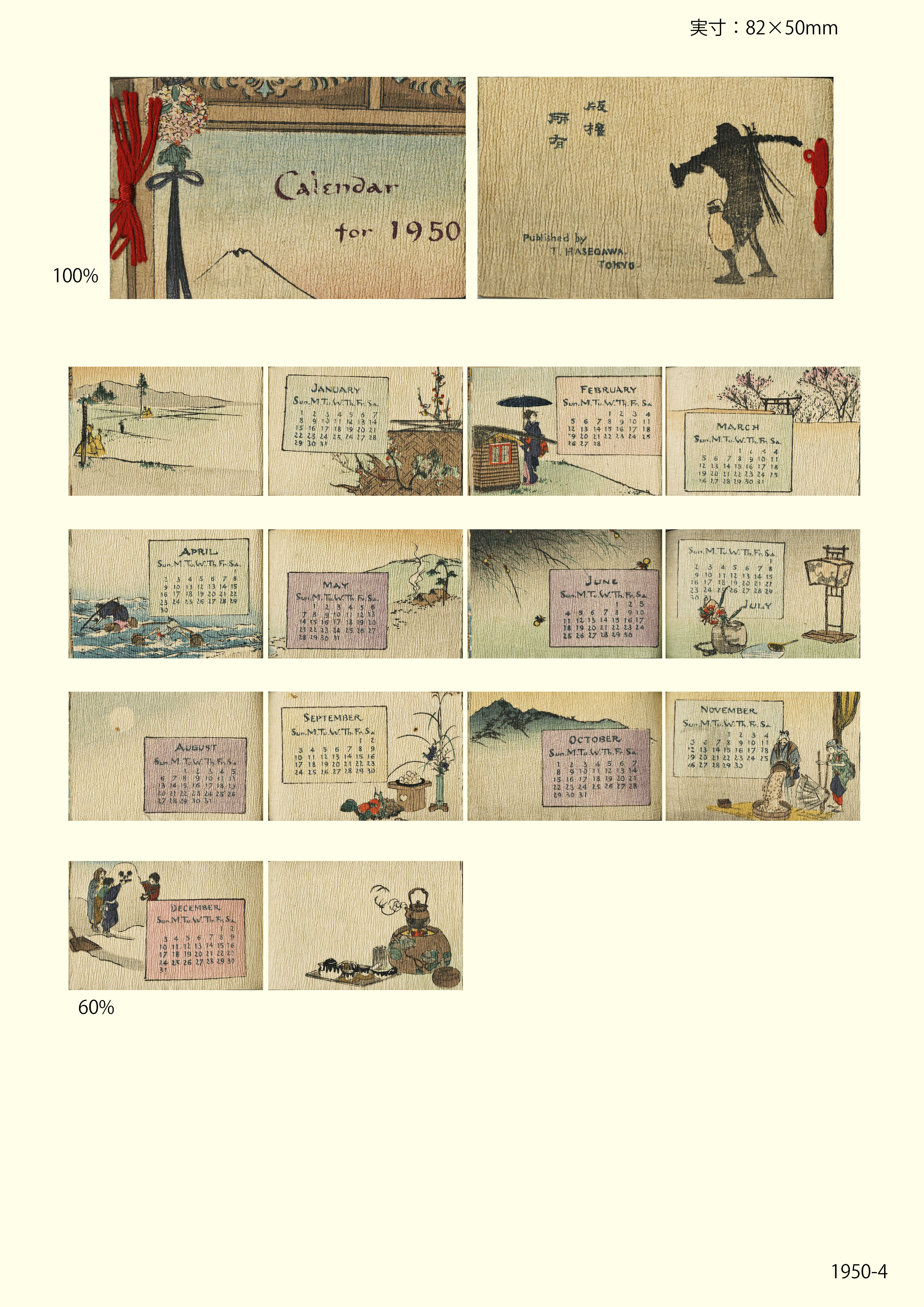 | 271 | 1950-4 | 昭和25年 |  |  | Calemdar for 1950 | | T.HASEGAWA TOKYO | | | | | | | | | | | | 82 | 50 | 16 | 1 | 0 | 1 | 20250730 |
