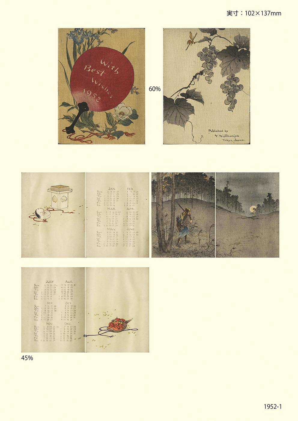 | 272 | 1952-1 | 昭和27年 |  |  | With Best Wishes 1952 | | Published by Y.Nishinomiya, Tokyo, Japan | | | | | | | | | | | 表紙裏表紙と絵2面はちりめん、カレンダー他4面は平紙 | 102 | 137 | 8 | 0 | 1 | 1 | 20200627 |