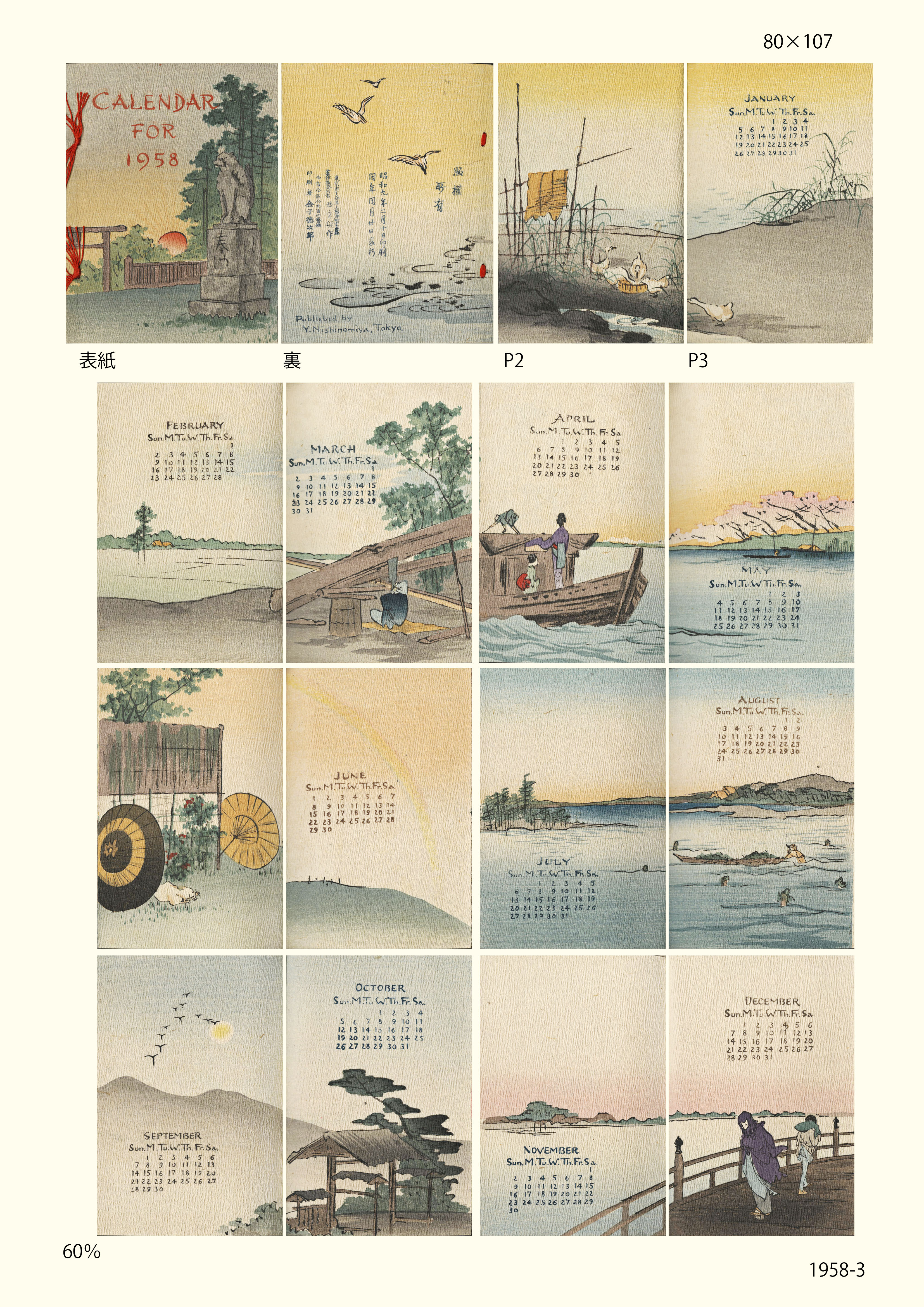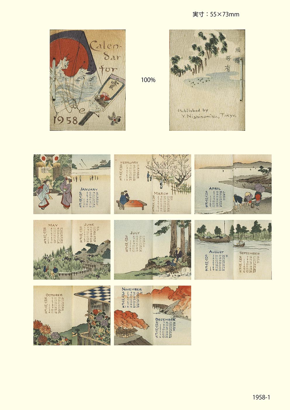 | 279 | 1958-1 | 昭和33年 |  |  | Calendar for 1958 | - | Published by Y.Nishinomiya | Tokyo | - | - | - | - | - | - | | | | 背表紙にY.Nishinomiya Tokyoの記載 | 55 | 73 | 18 | 0 | 1 | 1 | 20190712 |