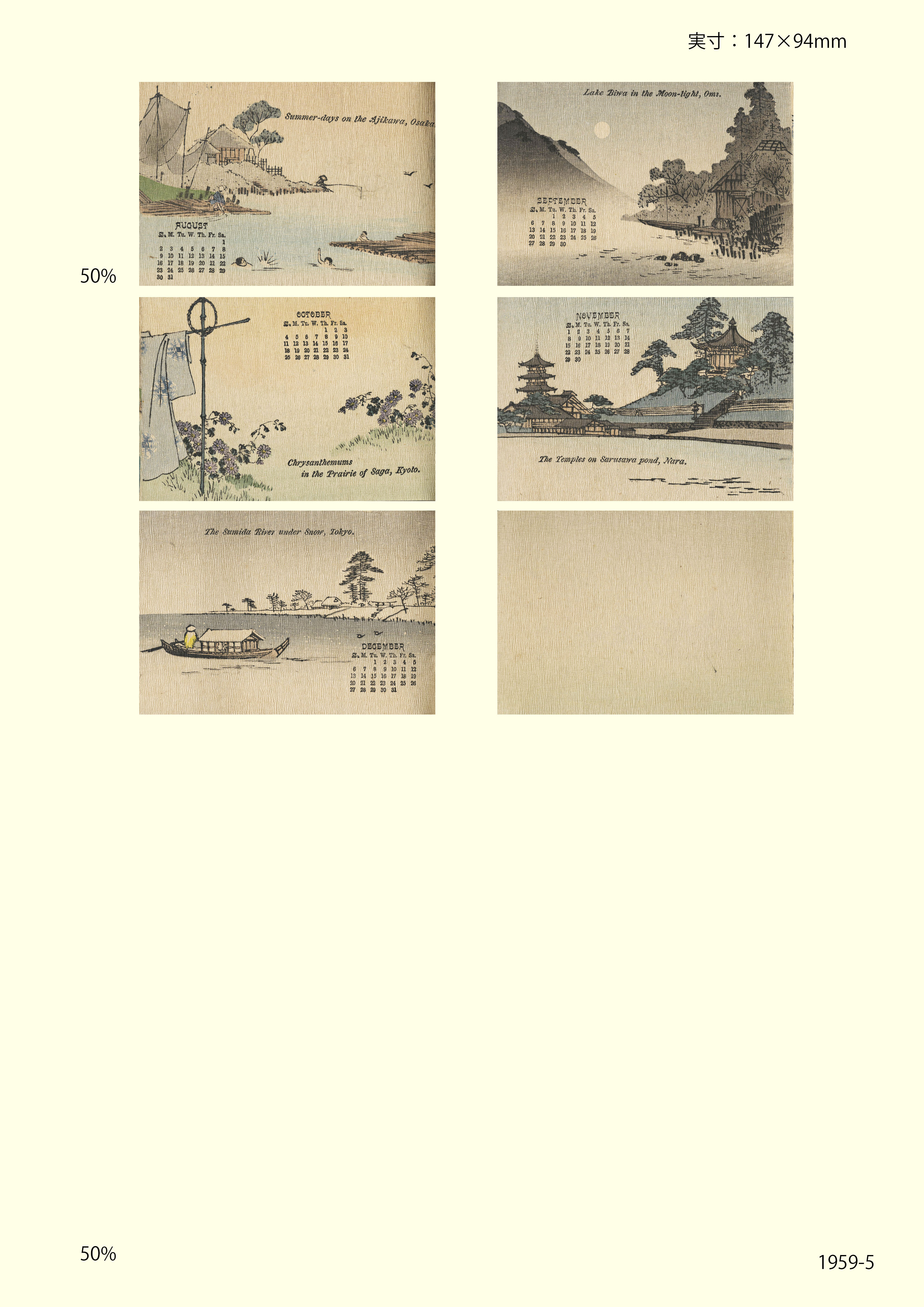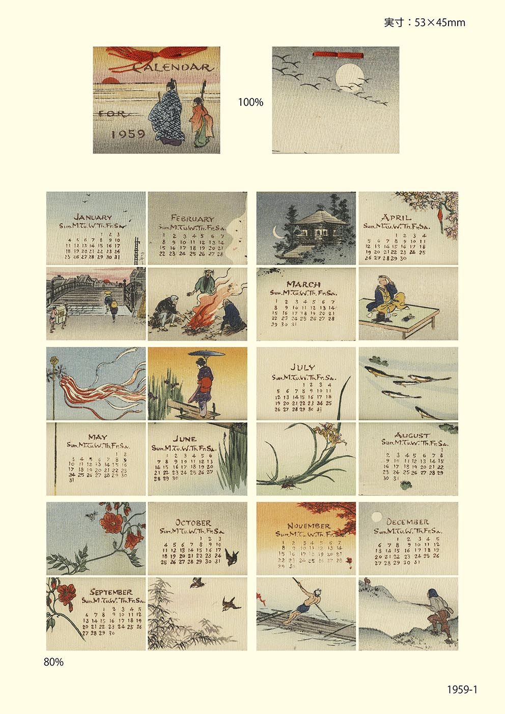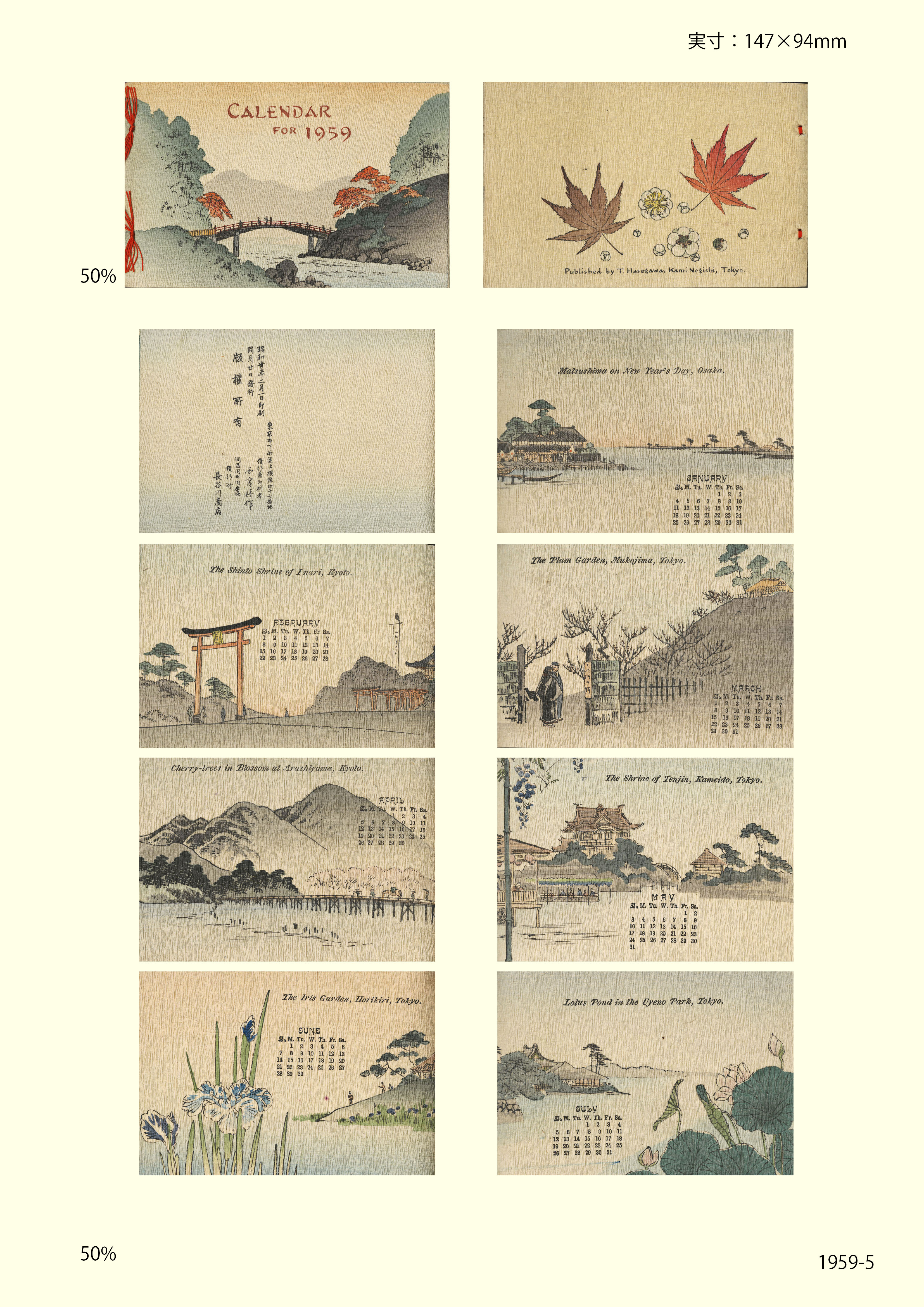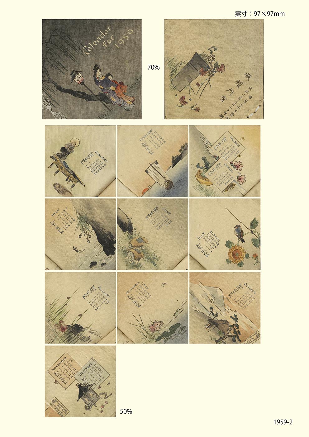 | 286 | 1959-5 | 昭和34年 |  |  | CALENDAR FOR 1959 | 長谷川商店 | Hasegawa Shoten | 東京市下谷区上根岸町17 | 西宮興作 | Kosaku Nishinomiya | 東京市下谷区上根岸町17 | | 昭和30年2月1日印刷 | 1955/2/1 | 昭和30年2月20日発行 | | | | 147 | 94 | 16 | 1 | 1 | 2 | 20221202 |