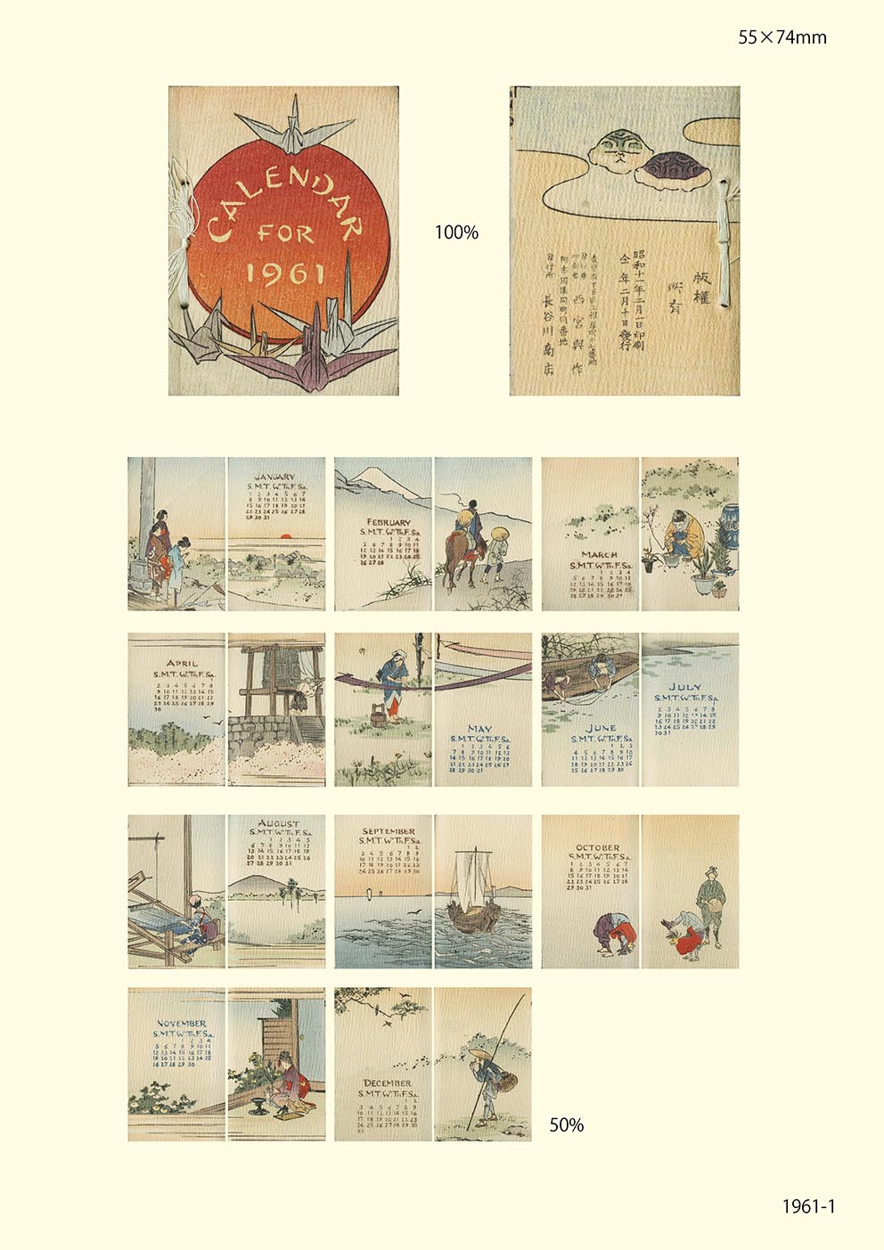 | 290 | 1961-1 | 昭和36年 |  |  | CALENDAR FOR 1961 | 長谷川商店 | Hasegawa Shoten | 東京市下谷区上根岸町17 | 西宮興作 | Kosaku Nishinomiya | 東京市下谷区上根岸町17 | | 昭和11年2月1日 | 1936/2/1 | 昭和11年2月10日 | | | | 55 | 74 | 24 | 1 | 1 | 2 | 20200527 |